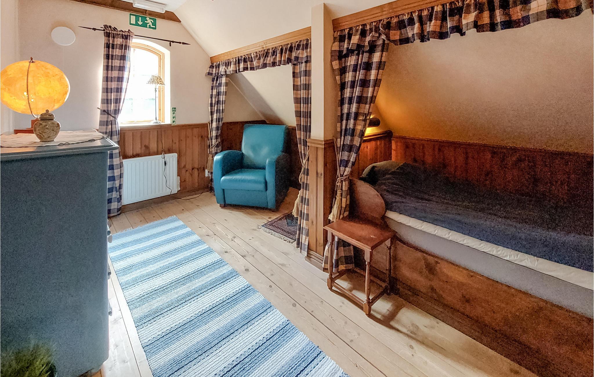 Her kan I rigtig nyde roen og den friske luft. Landstedet med historisk charme byder velkommen med en smuk beliggenhed, omgivet af store træer og i kort afstand til søen Vittsjön og en golfbane. Kombinationen af moderne og rustikt, lyst og mørkt samt de bevarede, gamle elementer som træbjælker, antikke møbler og alkover skaber en varm følelse i dette rummelige hus i to plan. Læg skærmene væk og tilbring en vidunderlig tid med nærvær i dette hus sammen med dem, I holder af. Stedet er perfekt til en stor familiesammenkomst. Arrangér spilleeftermiddage eller slap af i saunaen og nyd hyggelige aftener med lækker mad. Alle familiemedlemmer vil sikkert blive glade for en grillaften på terrassen. På den fælles grund er der masser af plads til leg. Hop på jeres cykel, tag jeres vandrestøvler på eller snup jeres fiskestang eller golfkølle. Her er der mange aktivitetsmuligheder.