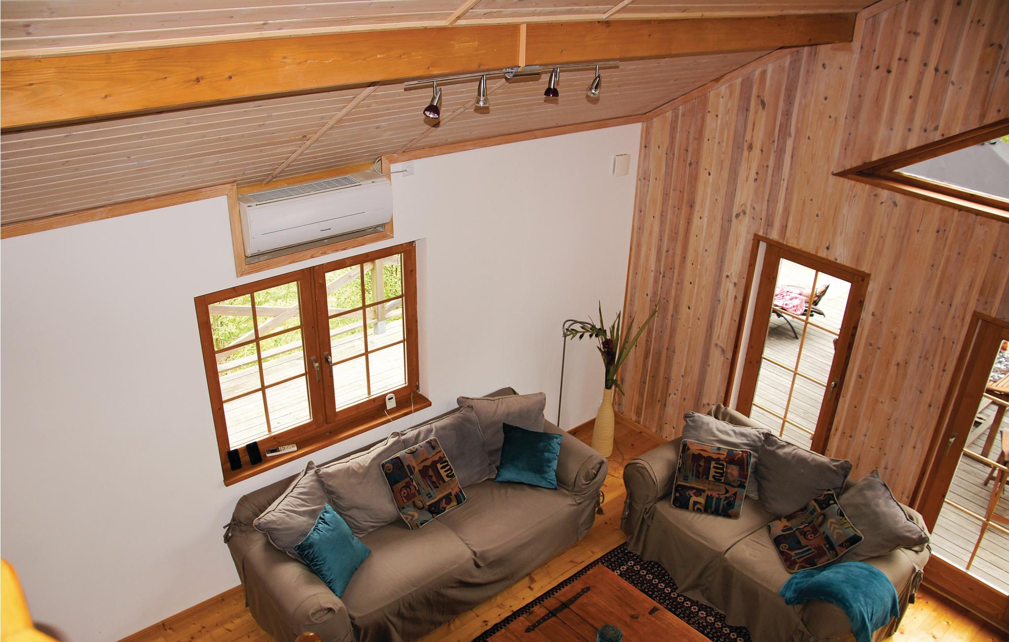 Skønt og rustikt træhus med et godt lysindfald og en dejlig åben planløsning.
