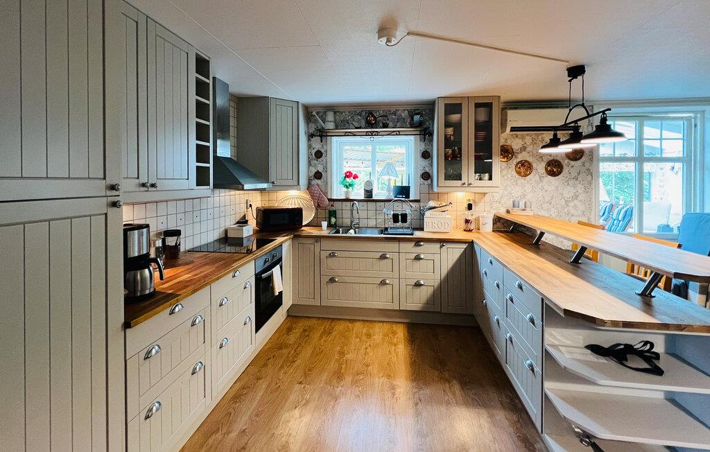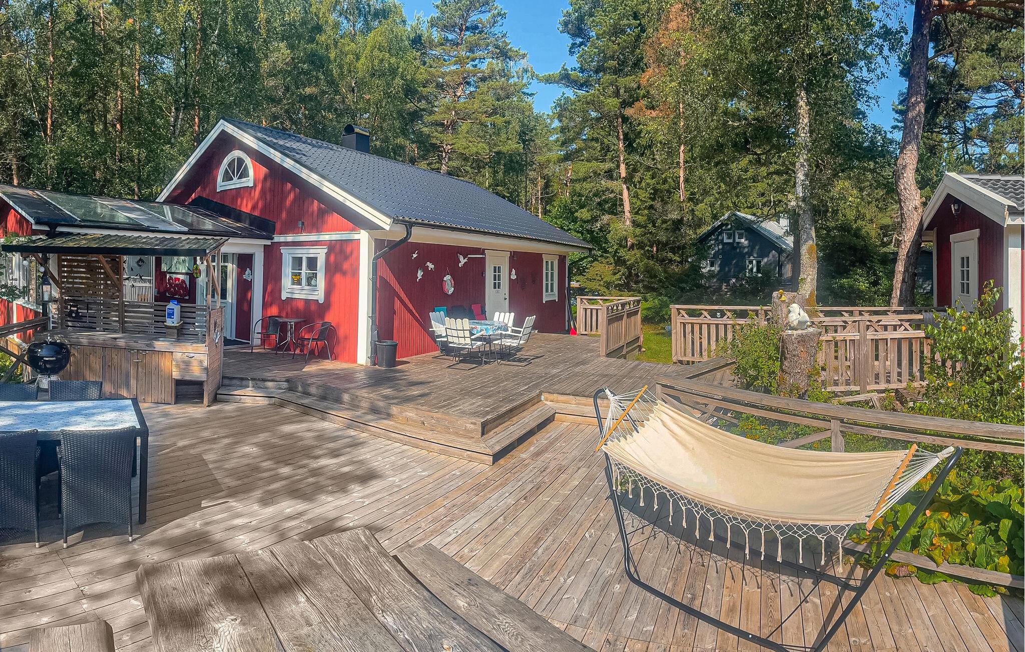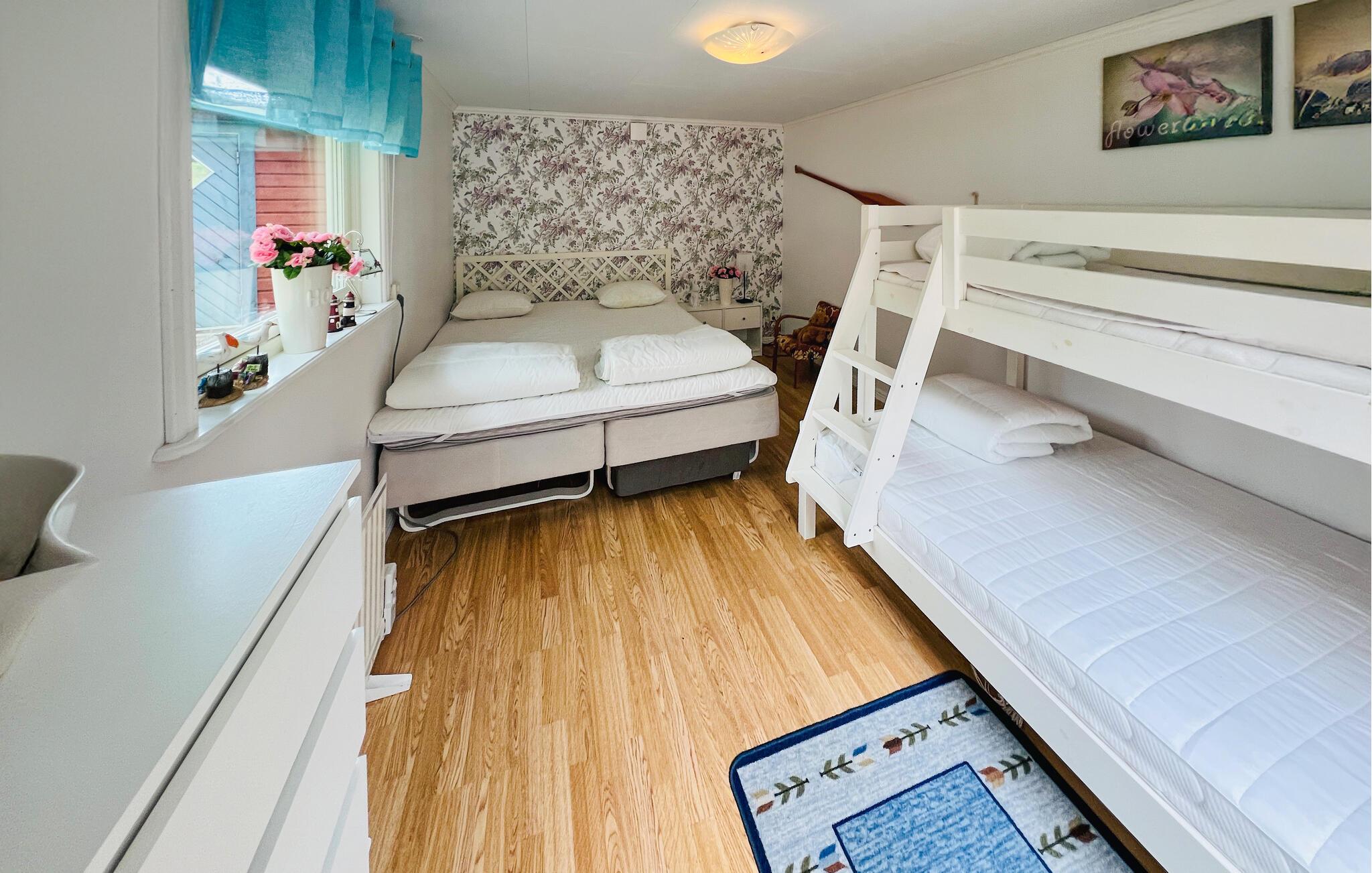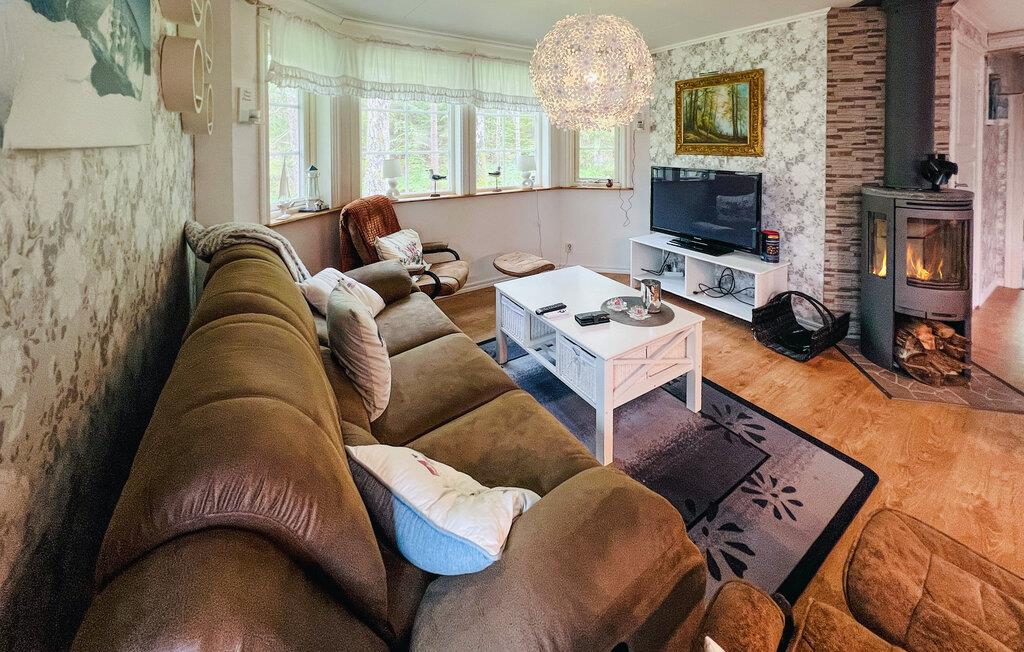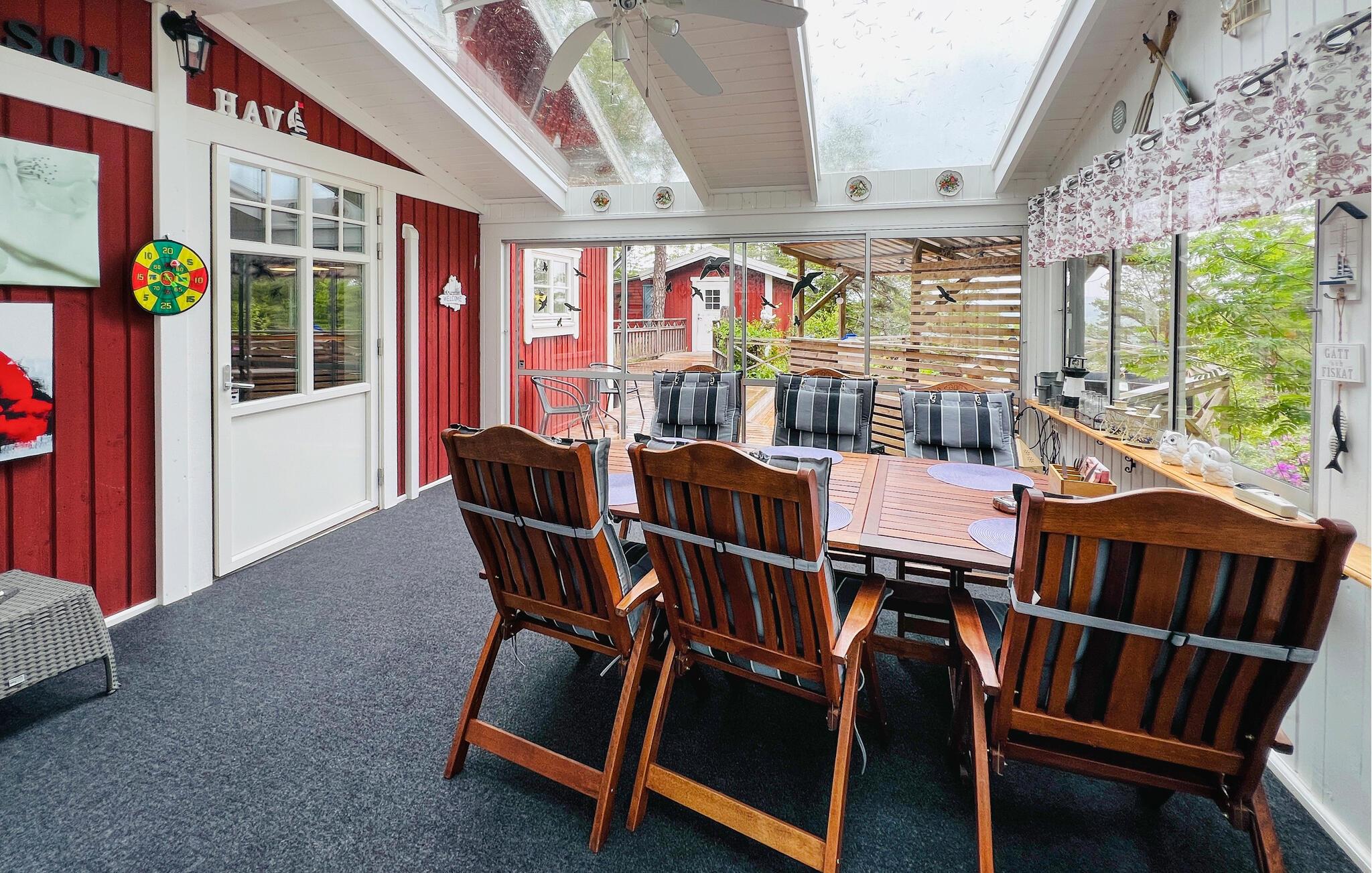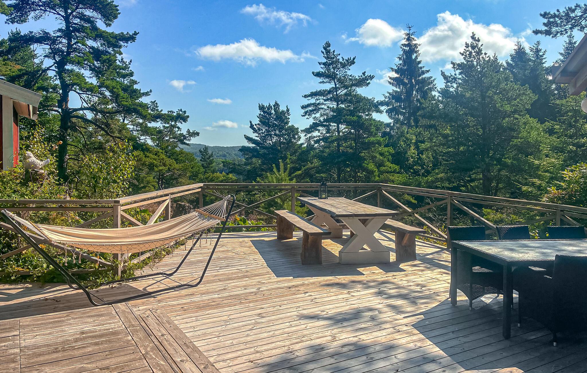Oplev afslappende dage i dette hyggelige feriehus og oplev den charmerende region. Dette smukke feriehus er omgivet af frodig skov og kun en kort gåtur fra fjorden. Tryll lækre måltider frem til en stor gruppe i det rummelige køkken, nyd jeres måltider ved det varmt oplyste spisebord eller i det overdækkede udendørs opholdsområde med udsigt over de grønne områder. Læg fødderne op i læsestolen, eller hold hyggelige spilleaftener i den indbydende sofa. Den store veranda er det ideelle sted til morgenmad under åben himmel på solrige dage. Indånd den forfriskende skovluft, lad jeres børn udforske naturen legende, og tænd op i grillen. Nyd den imponerende udsigt over skærgården på en vandretur langs Bohusleden. Tag en bådtur gennem fjorden, eller udforsk Tanum-helleristningerne – et UNESCO-verdensarvssted. Svøm på sandstrandene ved Gustafsberg, tag en tur til charmerende Lysekil, hvor I kan se sæler på safari, eller fordybe jer i undervandsverdenen på Havets Hus Marinecenter, eller forfølg jeres passion på golfbanen.