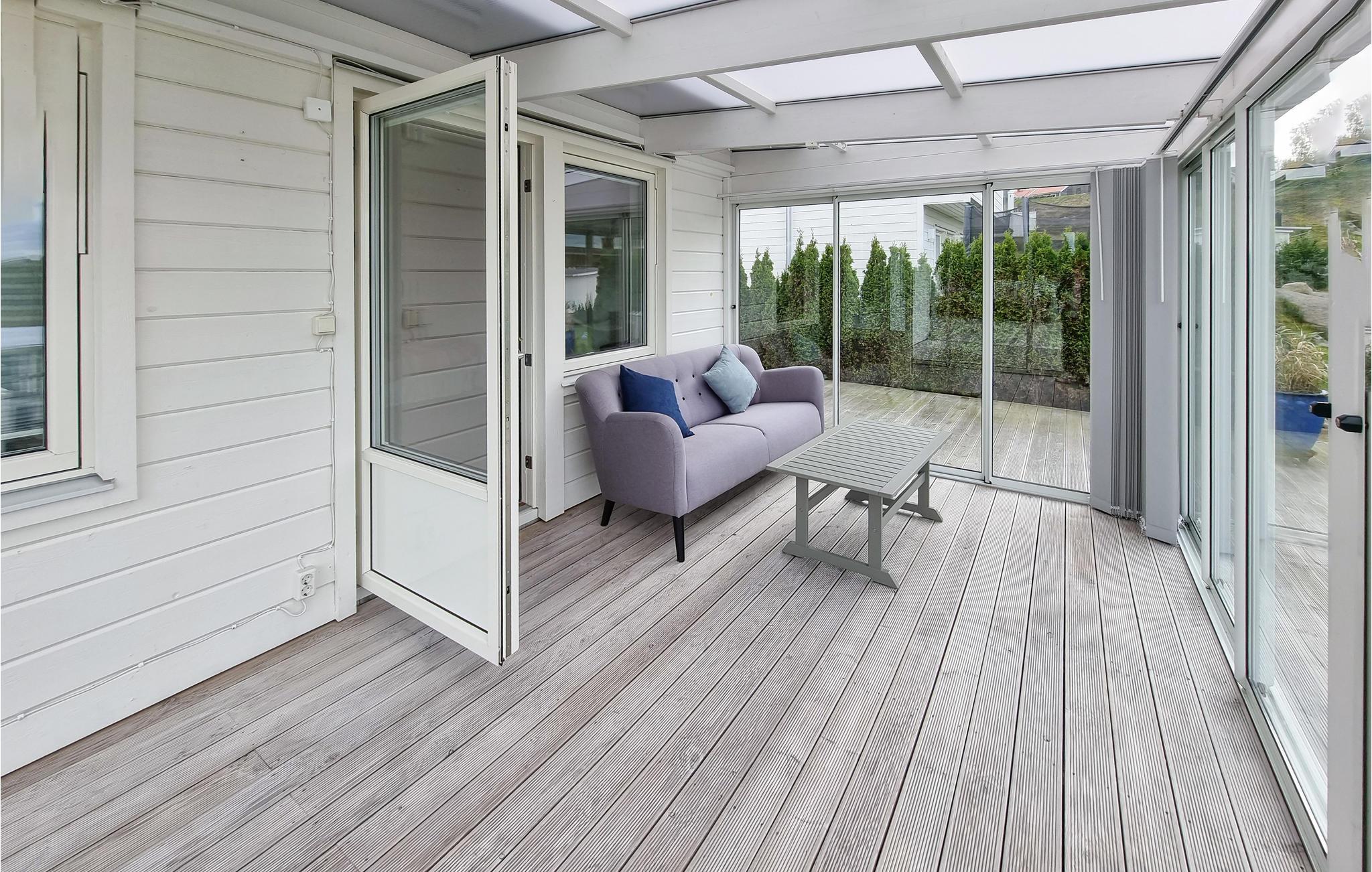 I en idyllisk beliggenhed uden for Uddevalla finder I dette indbydende feriehus. Indenfor kan I forvente et lyst, komfortabelt interiør og en rolig atmosfære, hvor I straks vil føle jer hjemme. Tilbring afslappende timer med jeres nærmeste i den lyse stue eller i den smukke udestue og nyd den dejlige udsigt over landskabet. Jeres børn og firbenede venner vil finde plads til at boltre sig i haven med flere hjørner, der inviterer jer til at slappe af og nyde roen.