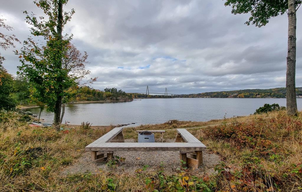 Kun få skridt adskiller jer fra fjorden med en smuk badeplads. Når I slentrer langs vandet, kan I være heldige at finde smukke muslingeskaller. Butikker og restauranter findes i Uddevalla, men Gøteborg er også inden for rækkevidde.
