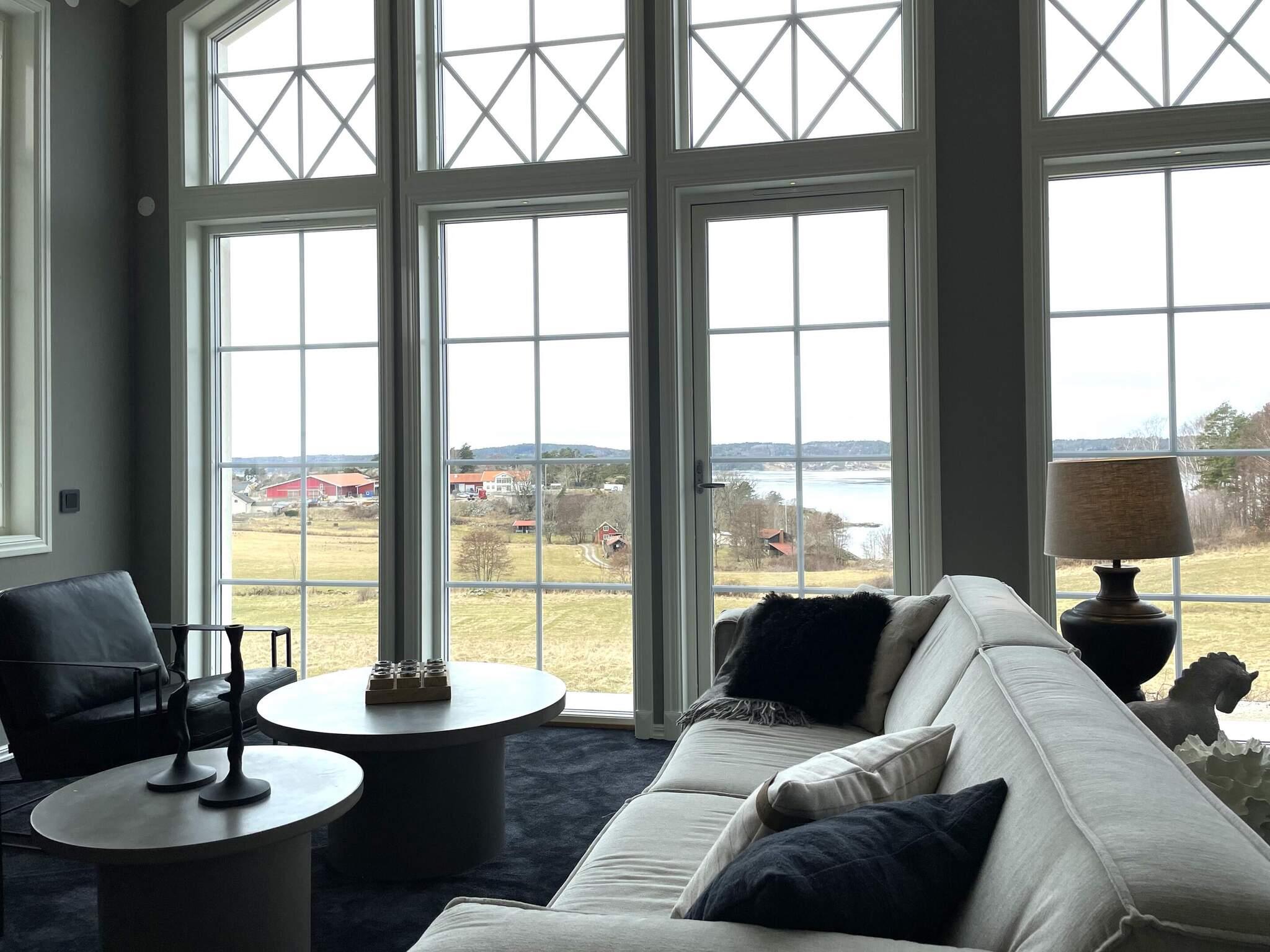 Du blickar ut över Gullmarsfjorden dit man kan gå enkelt för ett dopp. Huset ligger inbäddat i lantlig charm men panorama utsikt över hav och landskapet omkring. Detta hus bokas med fördel året runt oavsett årstid. Perfekt för större sällskap och större familjer som vill njuta av västkustens pärlor och bo gott.