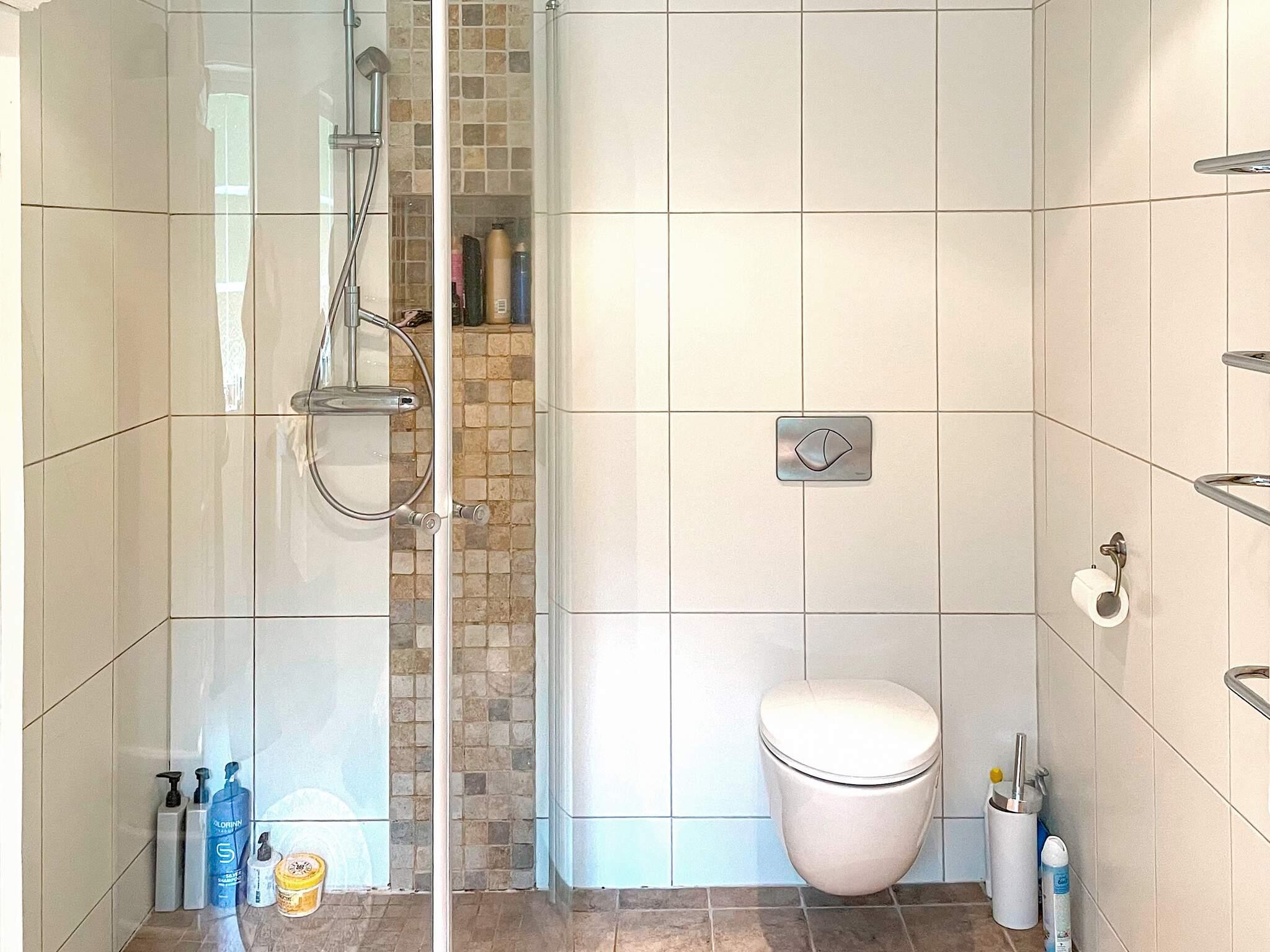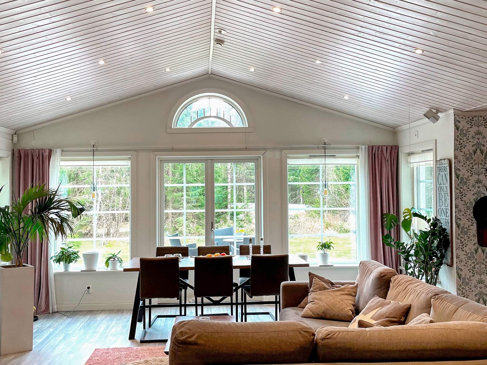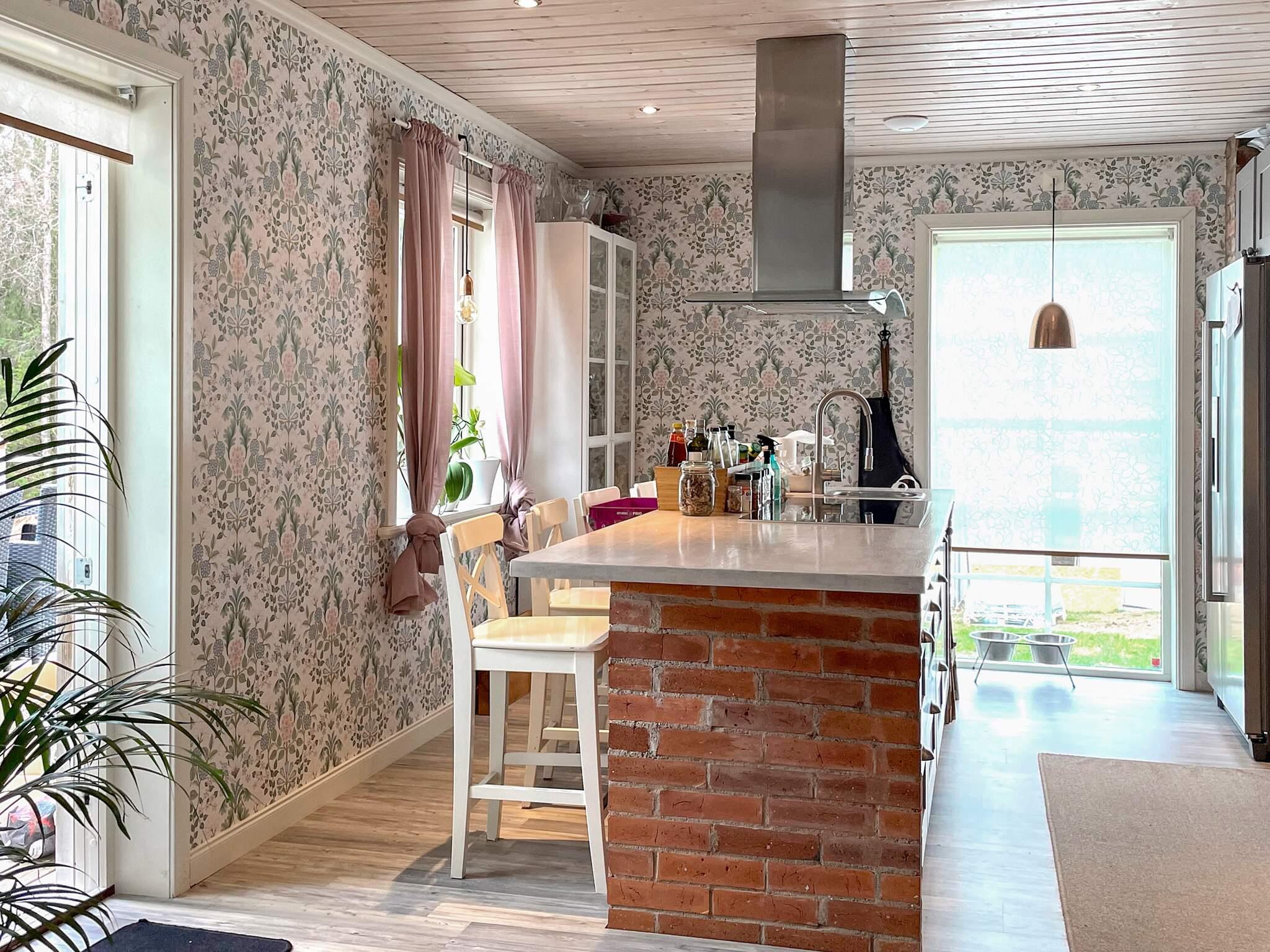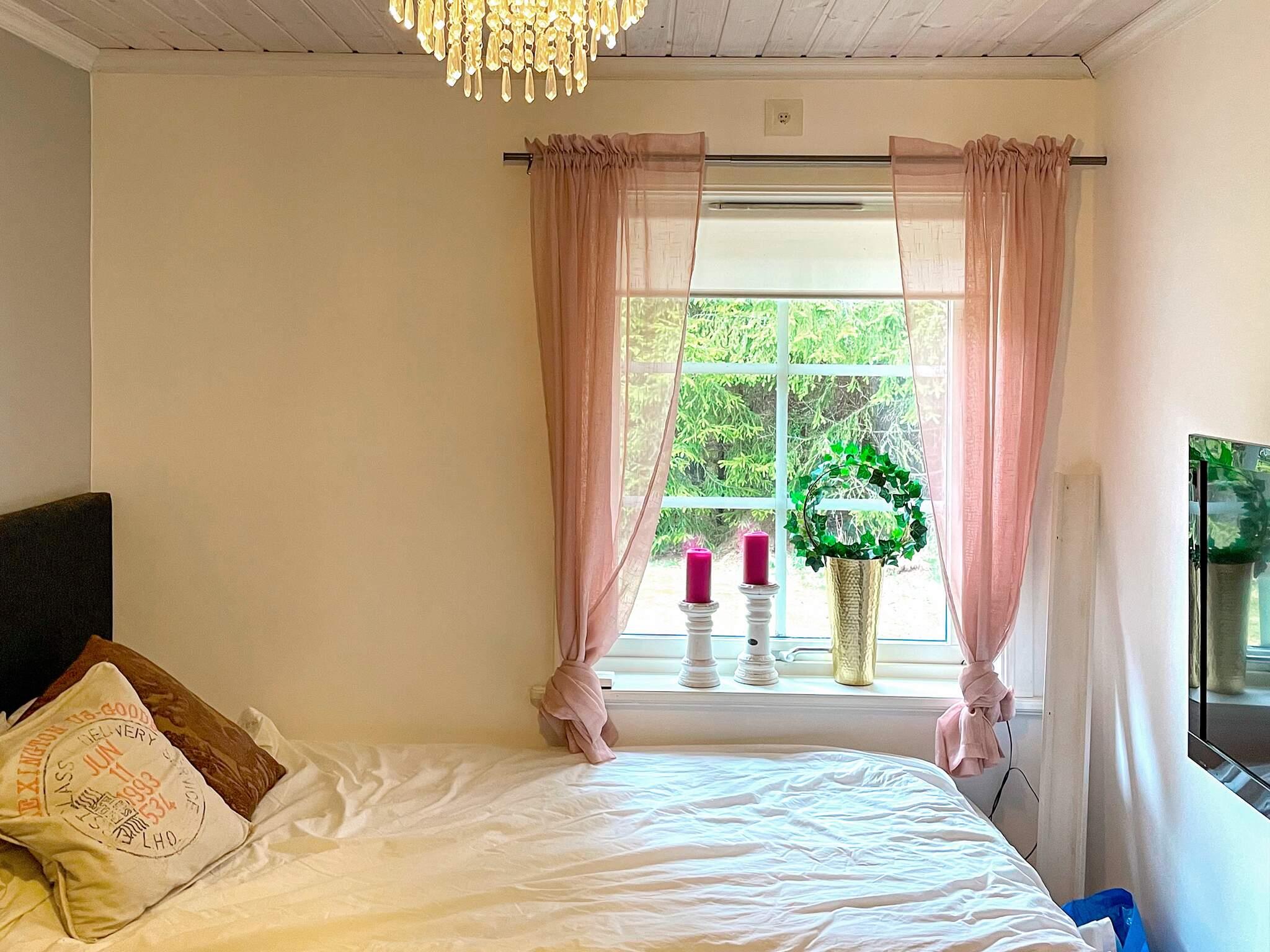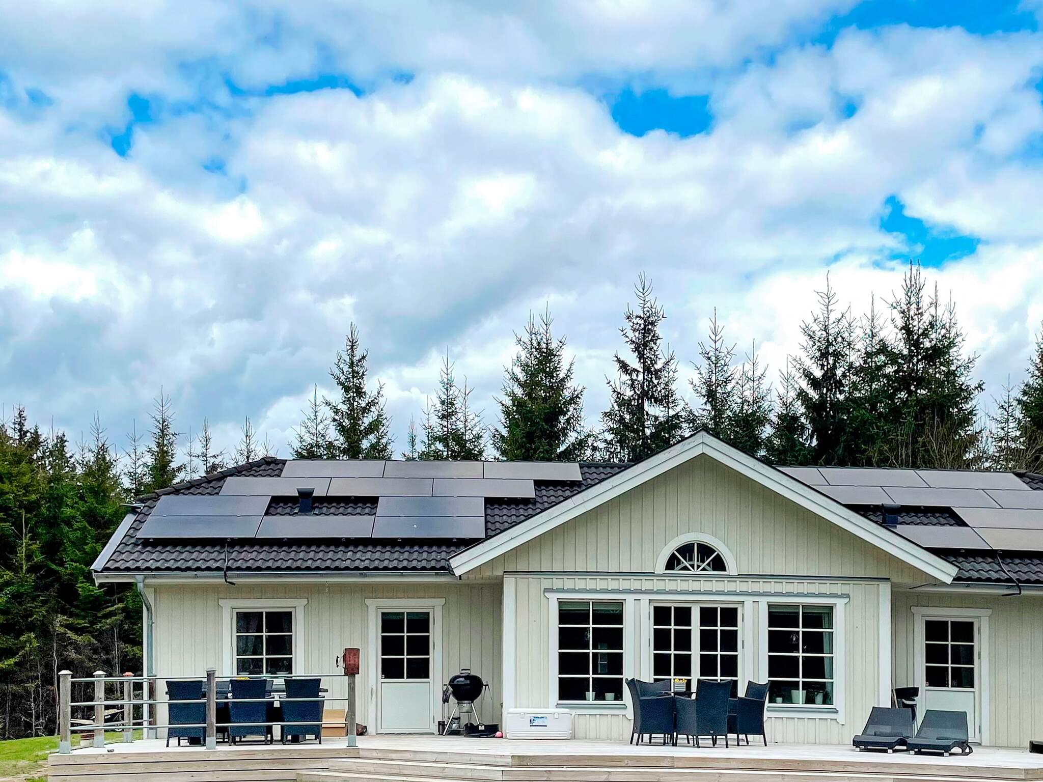 Här man bor man fint med stora ytor och vacker natur intill. Du har en inbjudande altan med soldäck utanför huset. Intill ligger en porlande bäck och en vacker trollskog. Huset är stort och allt är i ett plan. Öppen planlösning där vardagsrum och köket är integrerat i ett. Ett perfekt rum för samtal med vänner, familj och goda middagar. Huset är ljust och hemtrevligt. Du välkomnas in i en stor hall. Till vänster ligger det ena badrummet som är helkaklat med dusch/wc. Rakt fram breder allrummet och köket ut sig tillsammans med utgång till den stora altanen. Till vänster ligger två sovrum. Det ena med en dubbelsäng 180 cm och det andra med en säng 140cm. Till höger är det stora sovrummet med en dubbelsäng 180cm. Till detta sovrum är ett badrum till med dusch, wc och handfat. Allt är mycket välplanerat och hemtrevligt. Huset delar tomt med annan gäststuga som ligger intill garaget.