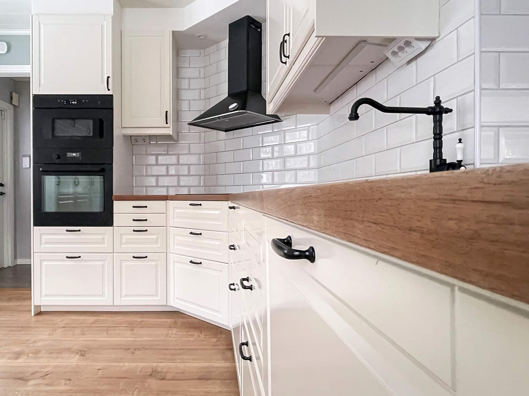 Køkken: El-komfur, ovn, køle-frys, mikroovn, kaffemaskine, opvaskemask.