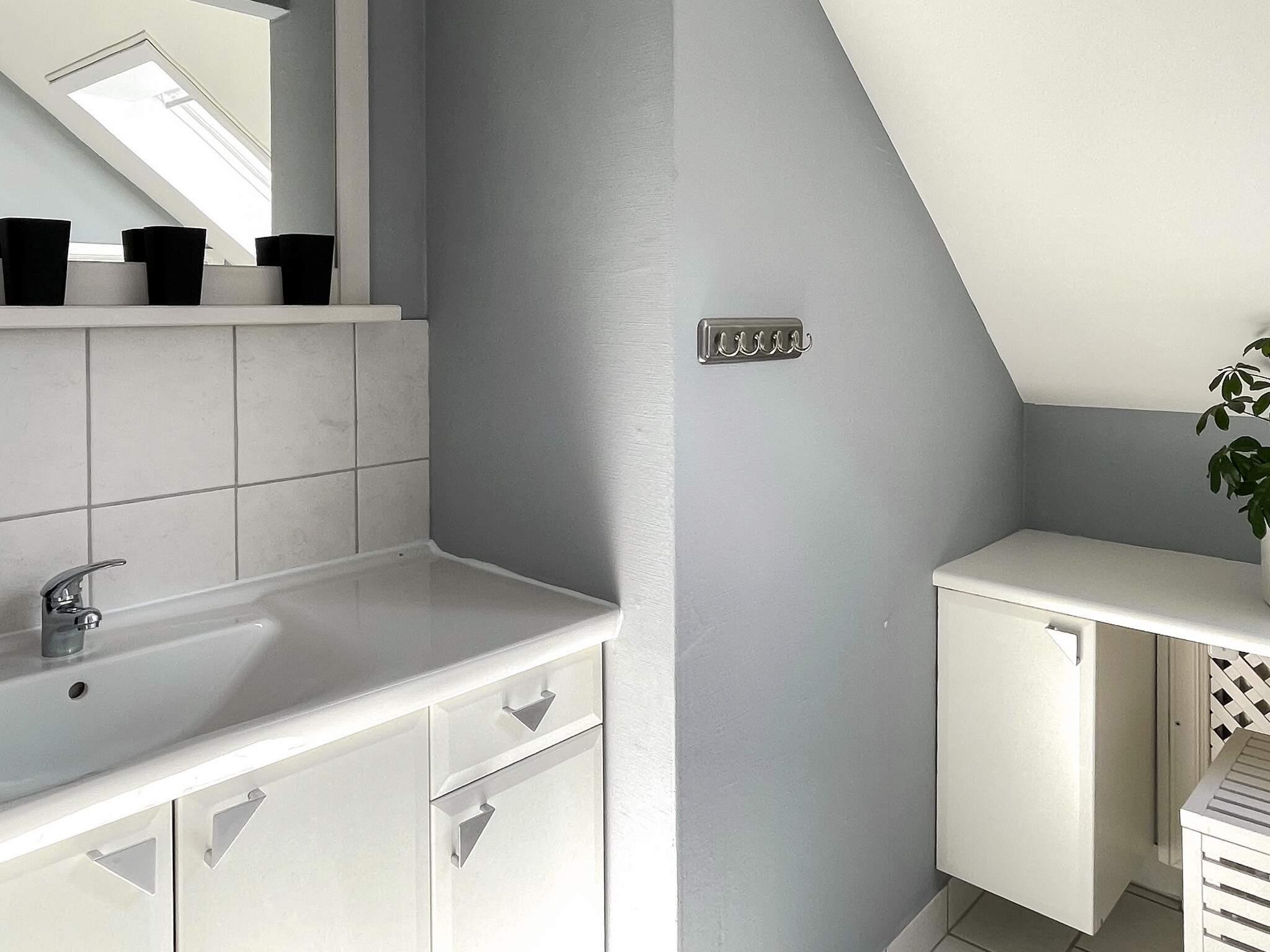Huset erbjuder plats för upp till åtta personer på tre harmoniskt utformade våningar - perfekt för familjer eller vänliga par. Sovrummen är bekvämt inredda: Två dubbelrum med sängar som mäter 180 × 200 cm, ett enkelrum med 90 × 180 cm, ett våningssängrum med två madrasser som vardera mäter 90 × 180 cm, samt ett separat rum med en utfällbar hörnsoffa (140 × 200 cm) erbjuder flexibla och mysiga sovalternativ. Tre eleganta badrum - inklusive ett rymligt duschområde med två regnduschar - garanterar en hög komfortnivå. Ett av badrummen på övervåningen har också ett praktiskt skötbord - ett särskilt plus för familjer med små barn. I mitten av huset finns det ljusa, fullt utrustade köket med rustik charm och modern teknik: en stor kyl, stor frys, mikrovågsugn, ugn, diskmaskin, helautomatisk kaffebryggare, vattenkokare och brödrost finns alla till hands. Det stora matbordet med plats för åtta personer ger en avslappnad start på varje dag av din semester.