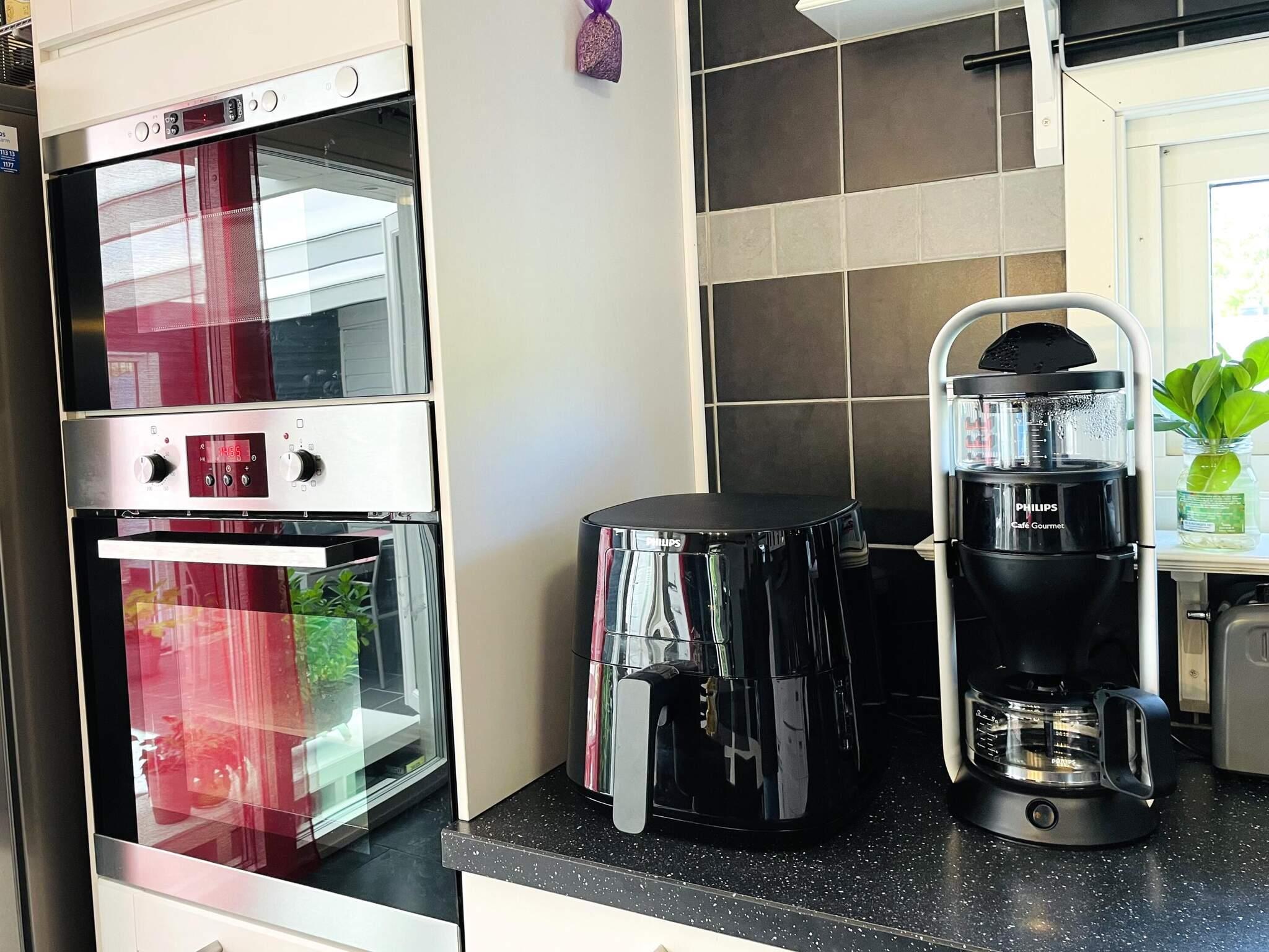 Här möts du av en öppen och ljus planlösning där det stora, välutrustade köket smidigt övergår i vardagsrummet. Köket erbjuder allt för en lyckad semester: induktionshäll, ugn, diskmaskin, kyl, frys, kaffebryggare, mikro, airfryer och full köksutrustning. Vid matbordet finns plats för upp till sex personer, och genom de stora fönstren och altandörren strömmar ljuset in. Härifrån kliver du direkt ut till det inglasade uterummet med ytterligare en matplats för sex personer – perfekt för trevliga middagar. Intill finns även ett stort soldäck med gasolgrill.