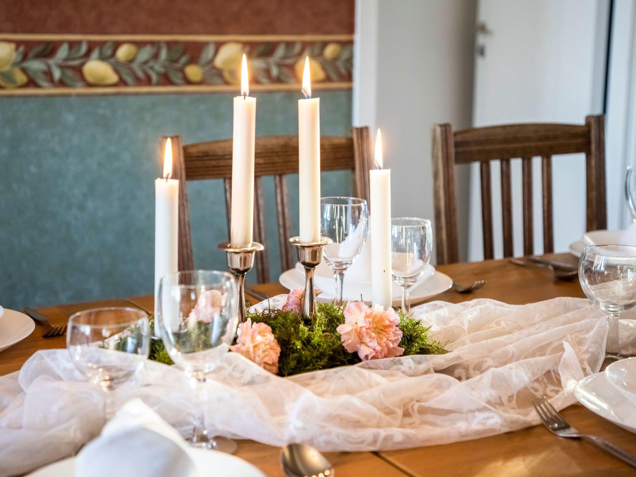The large villa with a beautiful view over the lake offers space for up to 12 people. The villa has four bedrooms, a 4-bed room with a double bed (1.80m x 2.00m) and two single beds (each 0.90m x 2.00m), two 3-bed rooms with a double bed (1.80m x 2.00m) and a single bed (0.90m x 2.00m) and a double room with separate beds (each 0.90m x 2.00m). There is electric heating in all bedrooms and a heat pump in the living room.