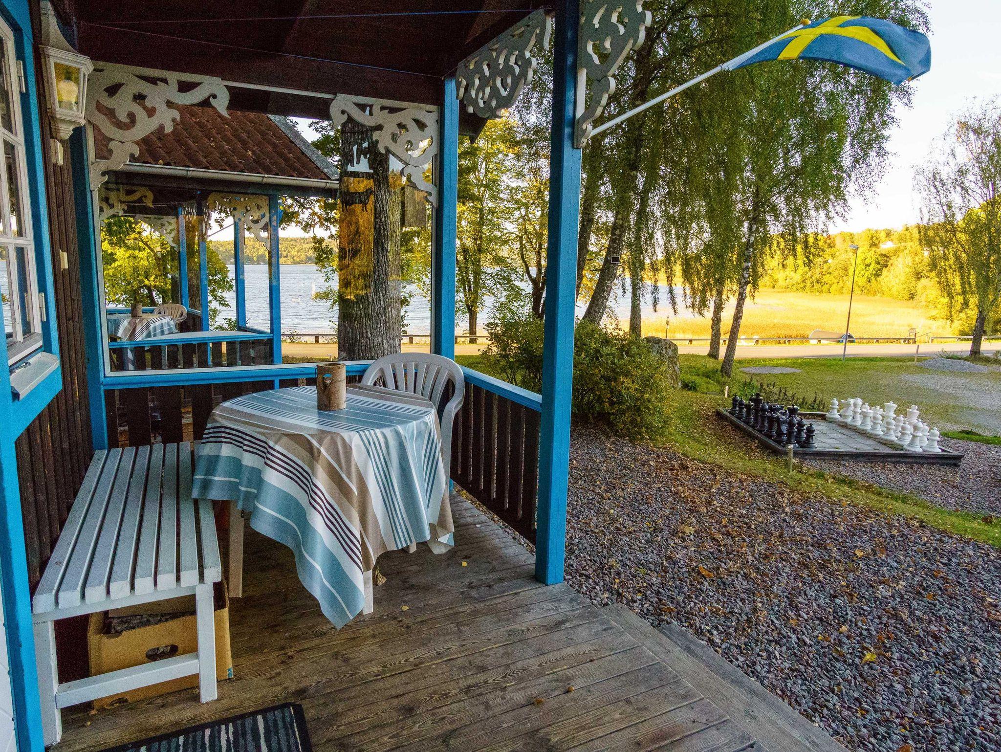 Unser Seebungalow ist ein gemütliches, 36 m² großes Stuga. Schlafzimmer mit zwei Einzelbetten sowie ein Schlafloft für 2 Erwachsene oder 2-3 Kinder. Wohnbereich mit ausziehbarem Doppelschlafsofa, Esstisch, Kamin, SAT-TV. Eine voll ausgerüstete Kleinküche mit 2-Platten-Herd, Kühl/Gefrierkombi, Mikrowelle, Kaffeemaschine, Wasserkocher. Badezimmer mit Dusche und WC. Möblierte Terrasse und Sonnenliegen.