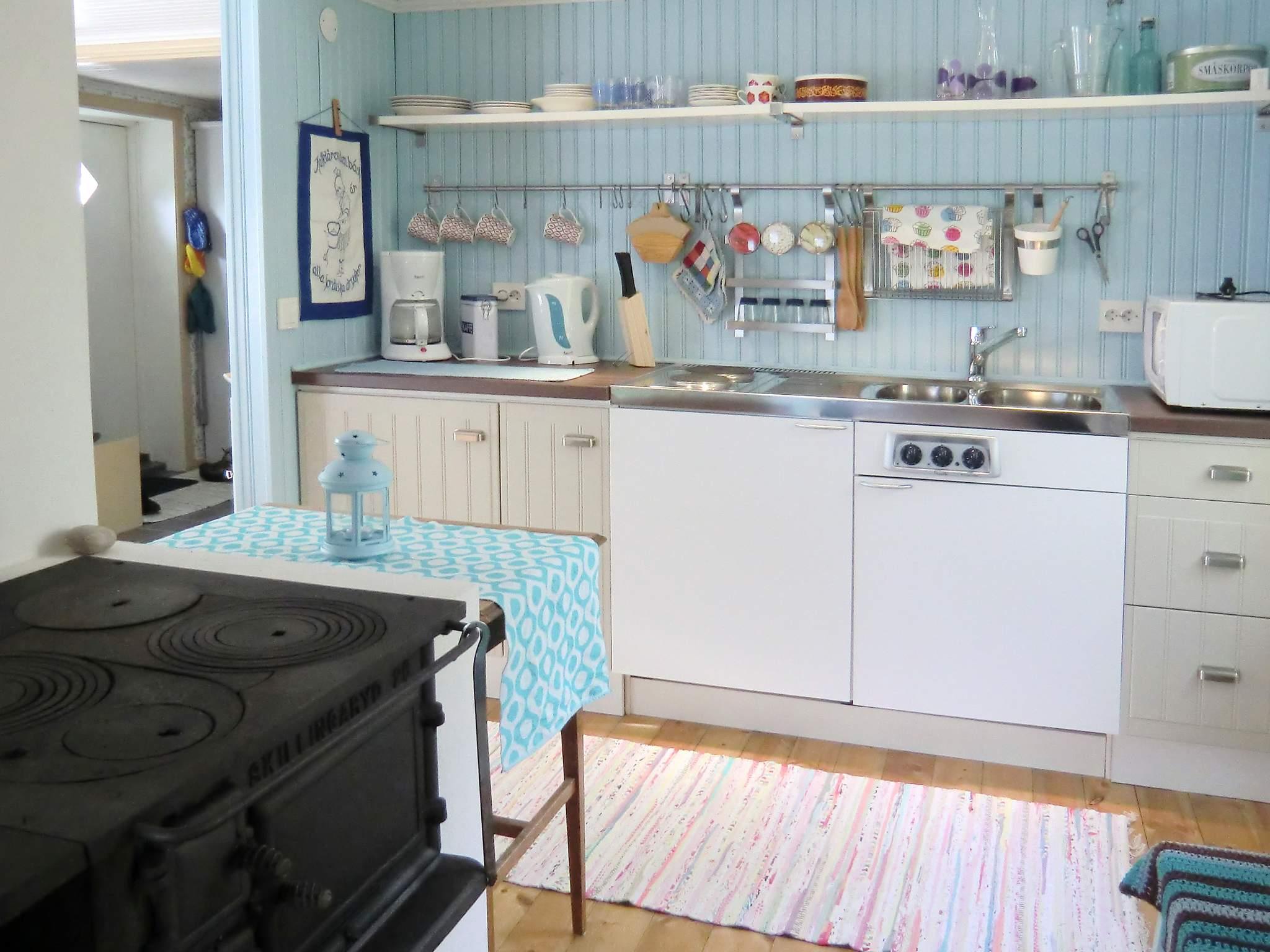 När ni går in i stugan möts ni i hallen av vackert målade dörrar och ett praktiskt klinkergolv. I vardagsrum ligger köksdelen med två kokplattor, kylskåp med frysfack och diskbänk. En fin gammal järnspis finns mellan kök och vardagsrum. I vardagsrum finns även en kakelugn som ger härlig värme. Där står även 2 sängar ihop som en dubbelsäng. Badrummet är modernt med dusch. Till sovloftet med dubbelsäng och låg takhöjd ca 140 cm, leder en brant trappa.
