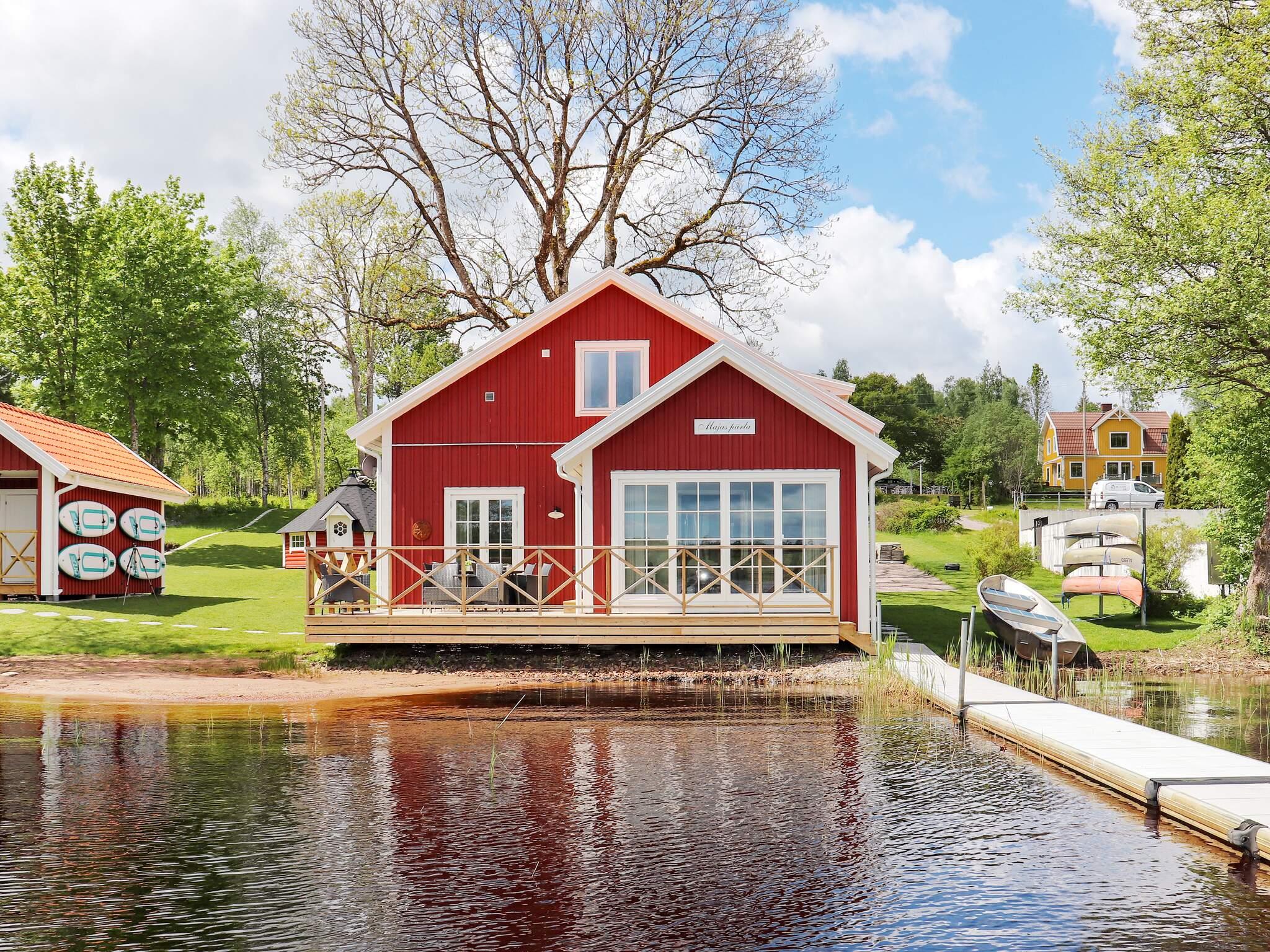 Ni har hittat ett semesterboende utöver det vanliga. Ett totalrenoverat, vackert och modernt utrustat hus vid den vackra sjön Unnen. Ni har egen brygga och altan alldeles vid vattnet samt bastu och grillkåta på tomten. Ett rymligt hus för flera familjer eller större sällskap. Både roddbåt och kanoter finns för fisketurer och upplevelser på sjön. Njut av sjöns glittrande vatten känn lugnet och hör fåglarnas sång från bryggan och terrassen.