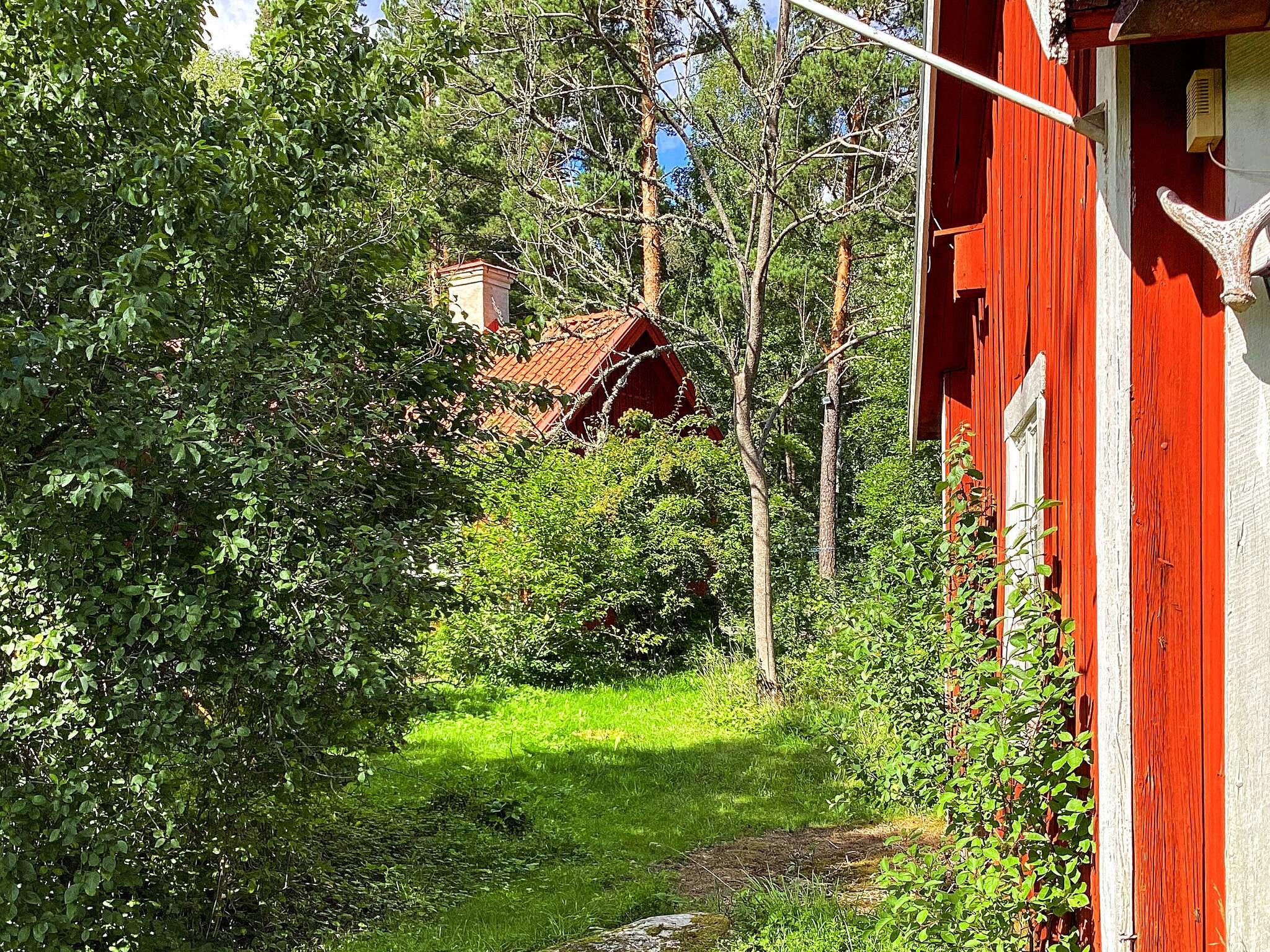 Stugan står på en grönskande tomt med avskildhet mot huset där den trevliga husägaren själv bor tillsammans med sin hund och katt. Stora träd och buskage skärmar av mellan stugan och ägarens hus, hund och katt kan springa på tomten. Kolgrill finns att nyttja och även spjälsäng på förfrågan. Ägaren erbjuder möjlighet att hyra hennes roddbåt för en härlig tur på sjön där det ryktas vara bra fiske!