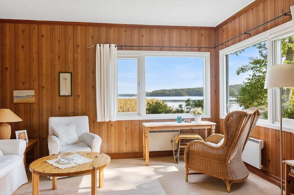 Dette feriehus med et boligareal på ca. 63 m² og med plads til 5 feriegæster, blev bygget i 1975 på en fredelig naturgrund på ca. 1.300 m² og er et usædvanligt attraktivt feriehus med sin direkte beliggenhed ved søen. Her kan du slappe af på en liggestol på din egen store båd- og badebro, drikke kaffe, tage en dukkert, prøve fiskelykken eller udforske søen i din egen robåd, der hører til huset. Ud over en hyggelig stue med tv (ingen danske programmer), radio med cd-afspiller, åben pejs og udsigt over søen, har huset tre soveværelser, hvoraf to er indrettet med en dobbeltseng, det tredje med en enkeltseng. Det lyse, venlige spisekøkken er udstyret med spisebord, elkomfur med ovn, køleskab med frostboks, mikroovn, kaffemaskine og elkedel. Derudover er der et lille badeværelse med bruser, toilet og håndvask. Huset har varmt og koldt vand og kan opvarmes elektrisk eller med pejsen i stuen. Gæsterne har også adgang til fire cykler, en kulgrill og forskellige havemøbler med hynder.