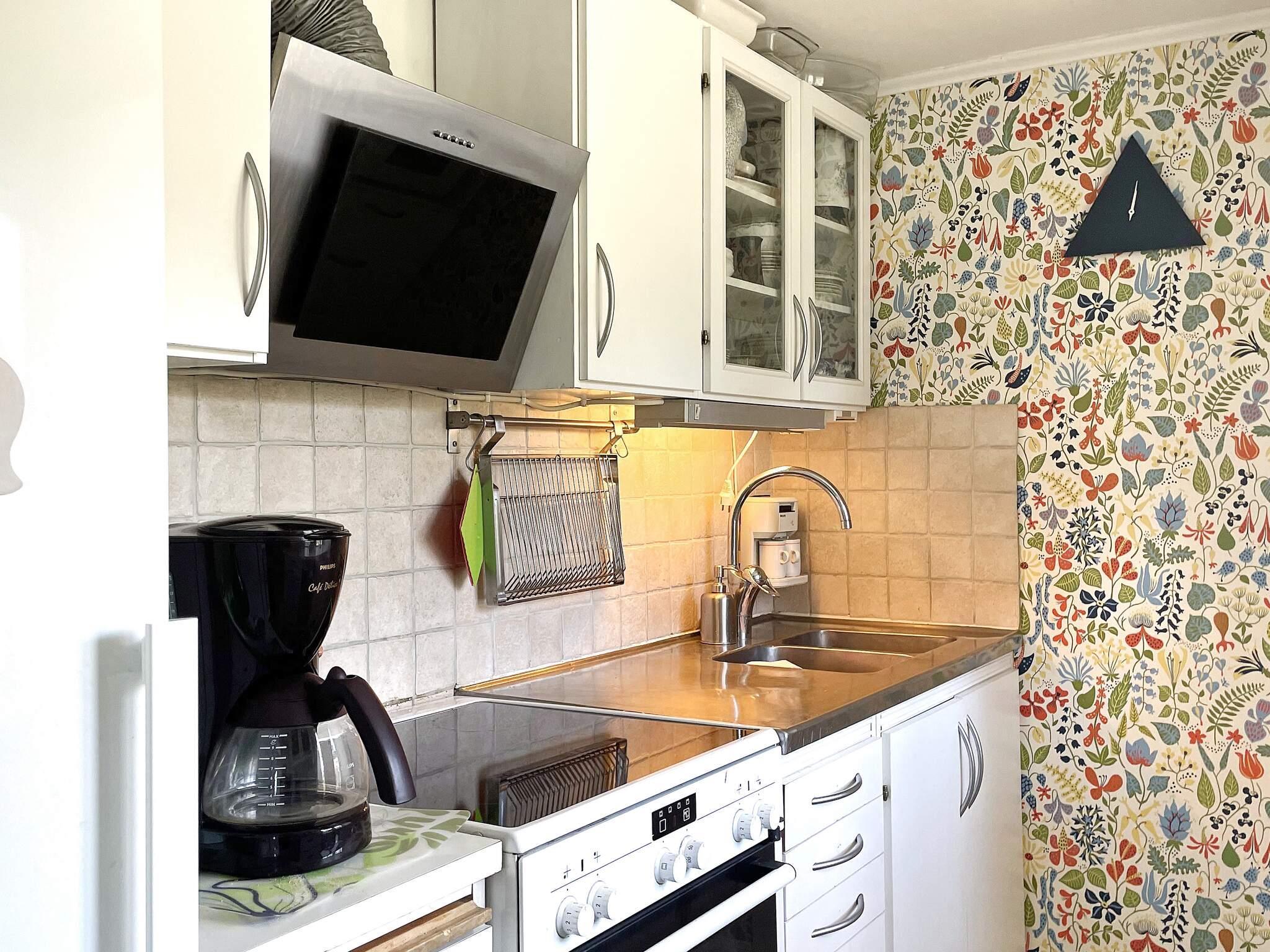 När du kliver in genom dörren möts du av en hall där du direkt till vänster hittar ett badrum/dusch och till höger ett kök som är utrustat med kaffebryggare kyl/frys spis ugn , mikro. Rakt fram från hallen öppnar sig ett mysigt vardagsrum med en öppen spis som ger en extra känsla av hemtrevnad.
