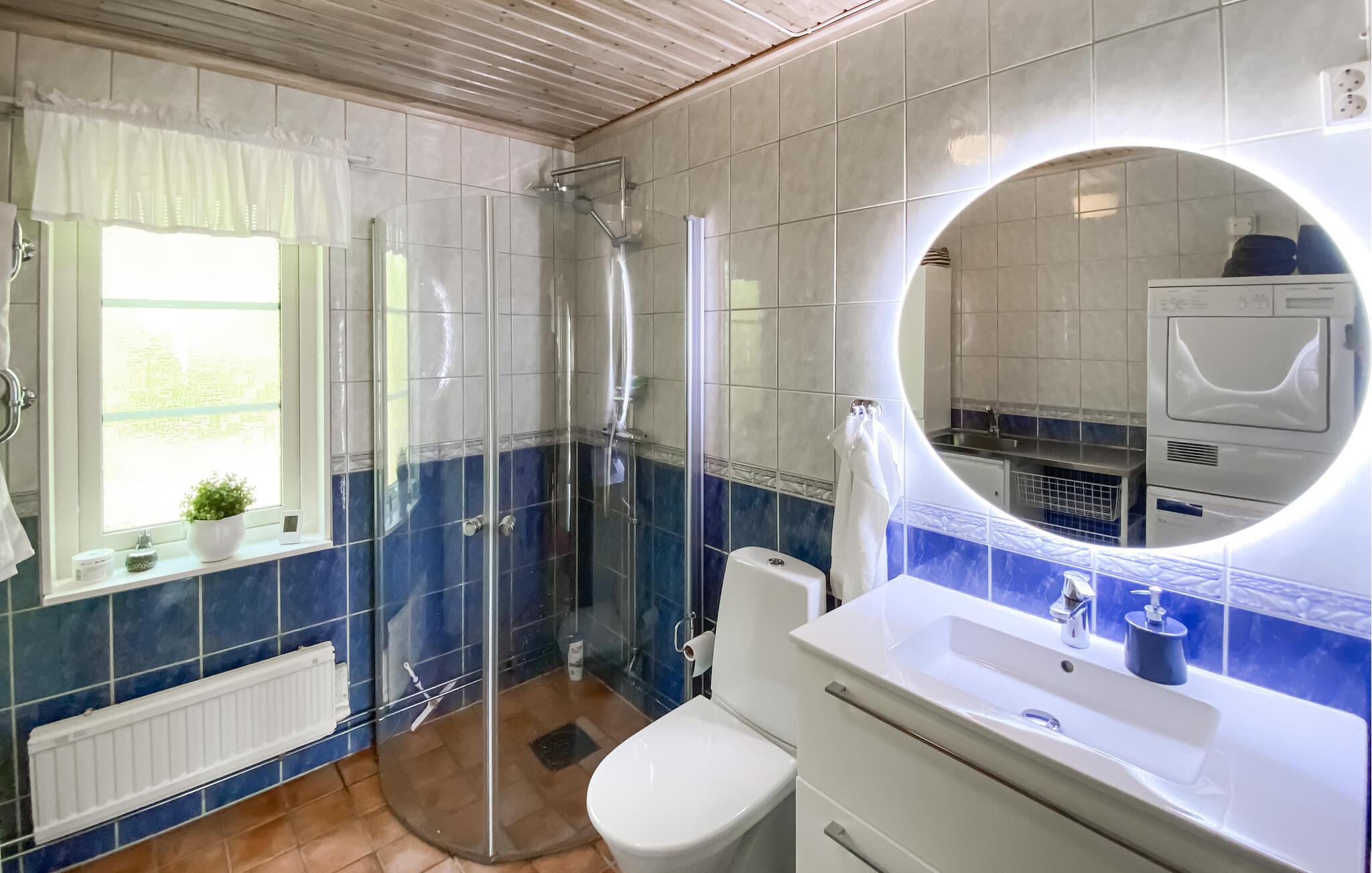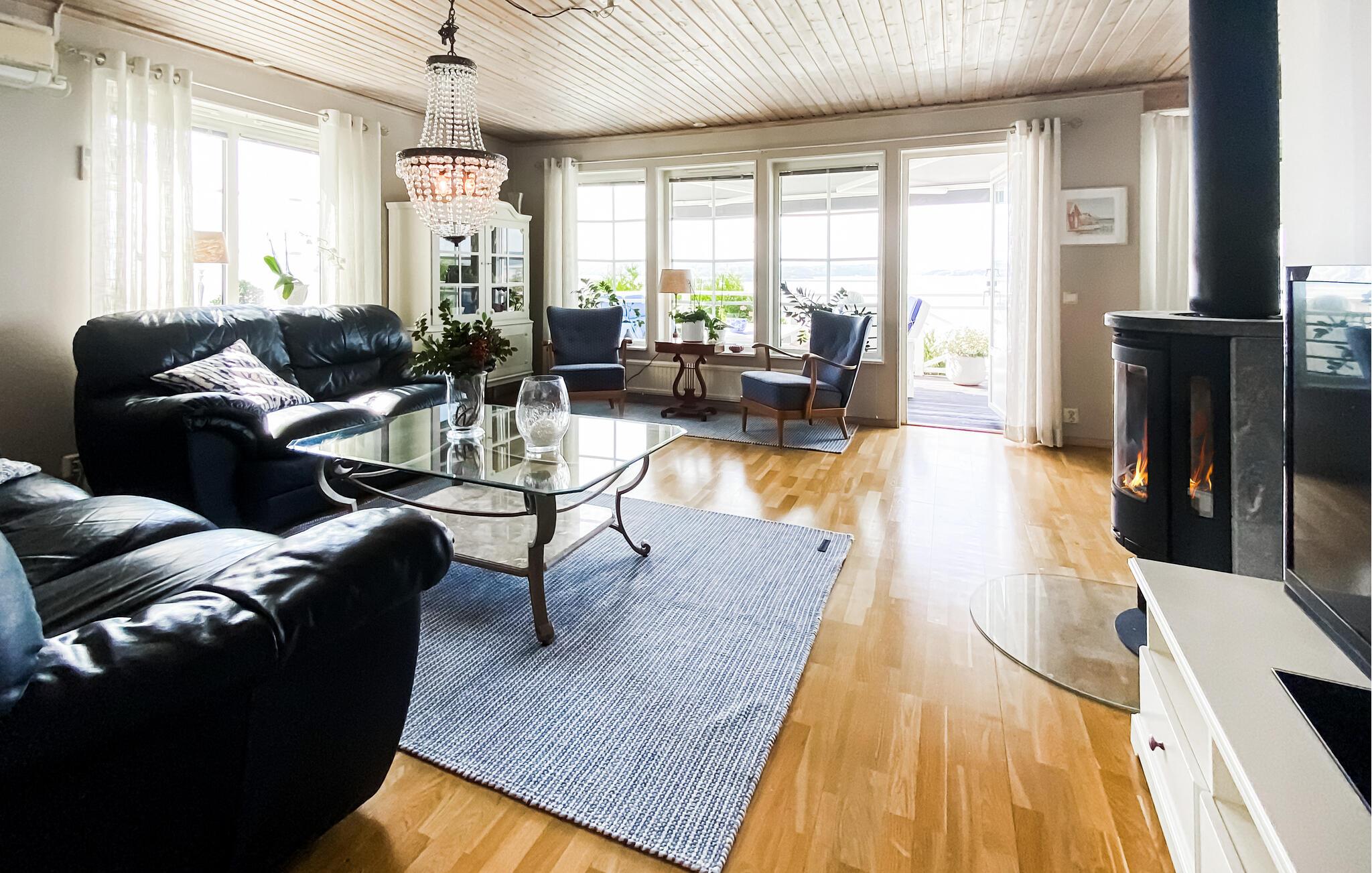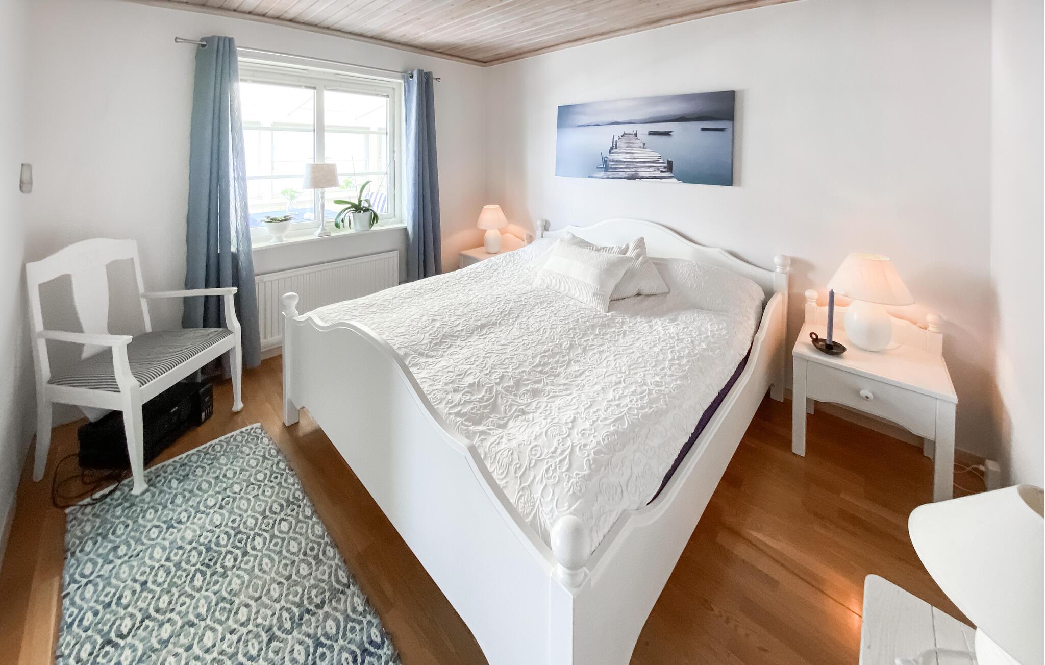 Oplev en skøn ferie i dette feriehus ved havet, som imponerer med en fantastisk udsigt. jeres sommerhus i Utby ved Uddevalla lægger op til et afslappende ophold i Sverige. Den hyggelige indretning og den imponerende udsigt over det omkringliggende landskab skaber en hyggelig atmosfære, hvor I straks vil føle jer hjemme. Start jeres dag med morgenmad i den lyse opholdsstue og nyd udsigten fra vinduet. Mens børnene leger i haven, har I tid til at slappe af og lægge jeres planer for dagen. Takket være det åbne design af køkken, spisestue og opholdsstue kan I tilbringe timer sammen med familien. Den rummelige stue byder på komfortable sofaer, der er ideelle til selskabelige aftener med brætspil eller hyggelige læsetimer. Om eftermiddagen kan I drikke en kop kaffe i husets smukke vinterhave. Kun få minutters gang adskiller jer fra havet. Uanset om I fisker eller et forfriskende hop i det klare vand, finder I her ideelle betingelser for afslappende dage på stranden. Tag en tur til centrum af Uddevalla, som har et udvalg af butikker, caféer og restauranter. Forkæl jer selv med lokale specialiteter og opdag de kulinariske lækkerier i Sverige. Kulturinteresserede bør besøge Bohusläns Museum, som giver spændende indblik i regionens historie og natur.