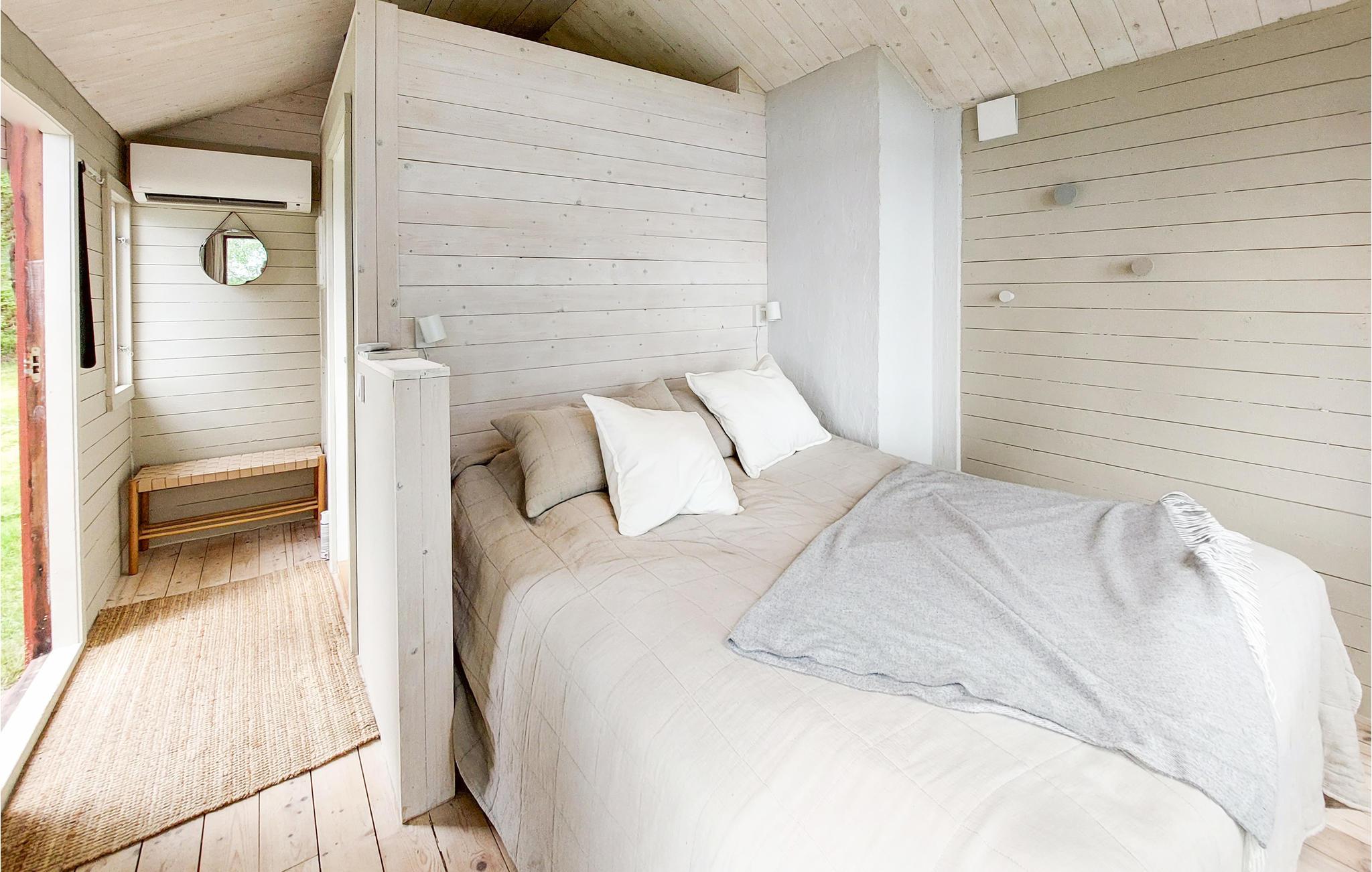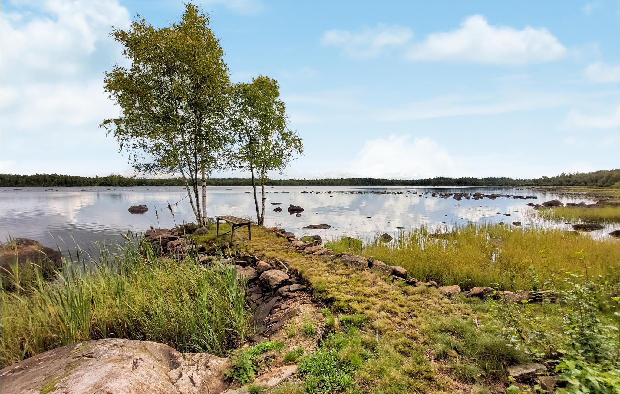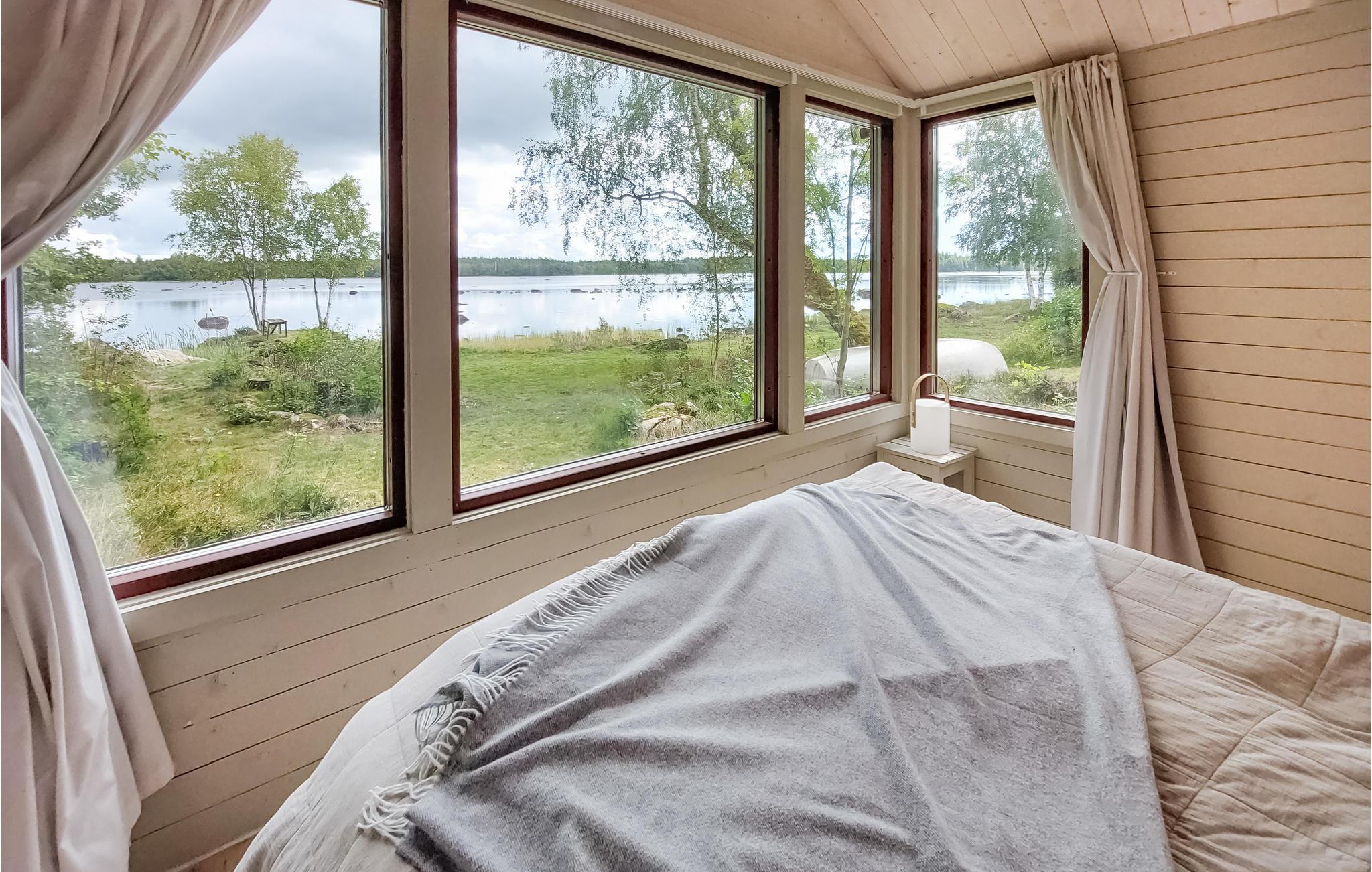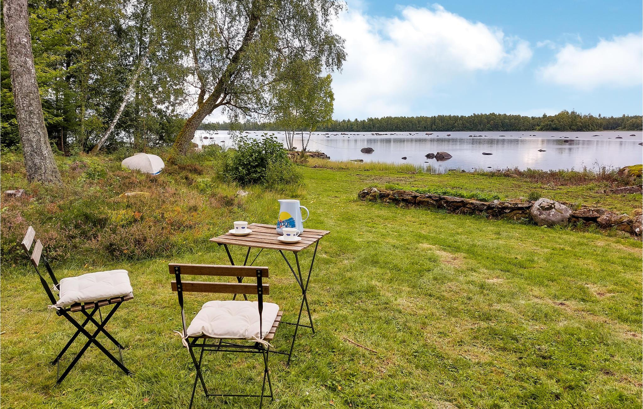 Det hyggelige hus byder jer hjerteligt velkommen i en fortryllende kulisse, skønt beliggende direkte ved søen, hvor I både kan bade og fiske. De lyse værelser inviterer til ren afslapning. Sover I i annekset, kan I nyde den vidunderlige udsigt over søen, når I vågner. Efter jeres udflugt eller en dejlig dag ved vandet kan I vende tilbage til jeres feriebolig, lave lækker mad og spise i stuen med en vidunderlig panoramaudsigt over søen. Senere kan I hygge jer med kaffe og kage foran den knitrende brændeovn. Den store naturgrund byder på masser af plads til leg og afslapning, og her kan I samle lækkerier, når det er svampe- og bærsæson. Forfrisk jer i søen når som helst på dagen og rund en dejlig dag af med en grillaften på terrassen.