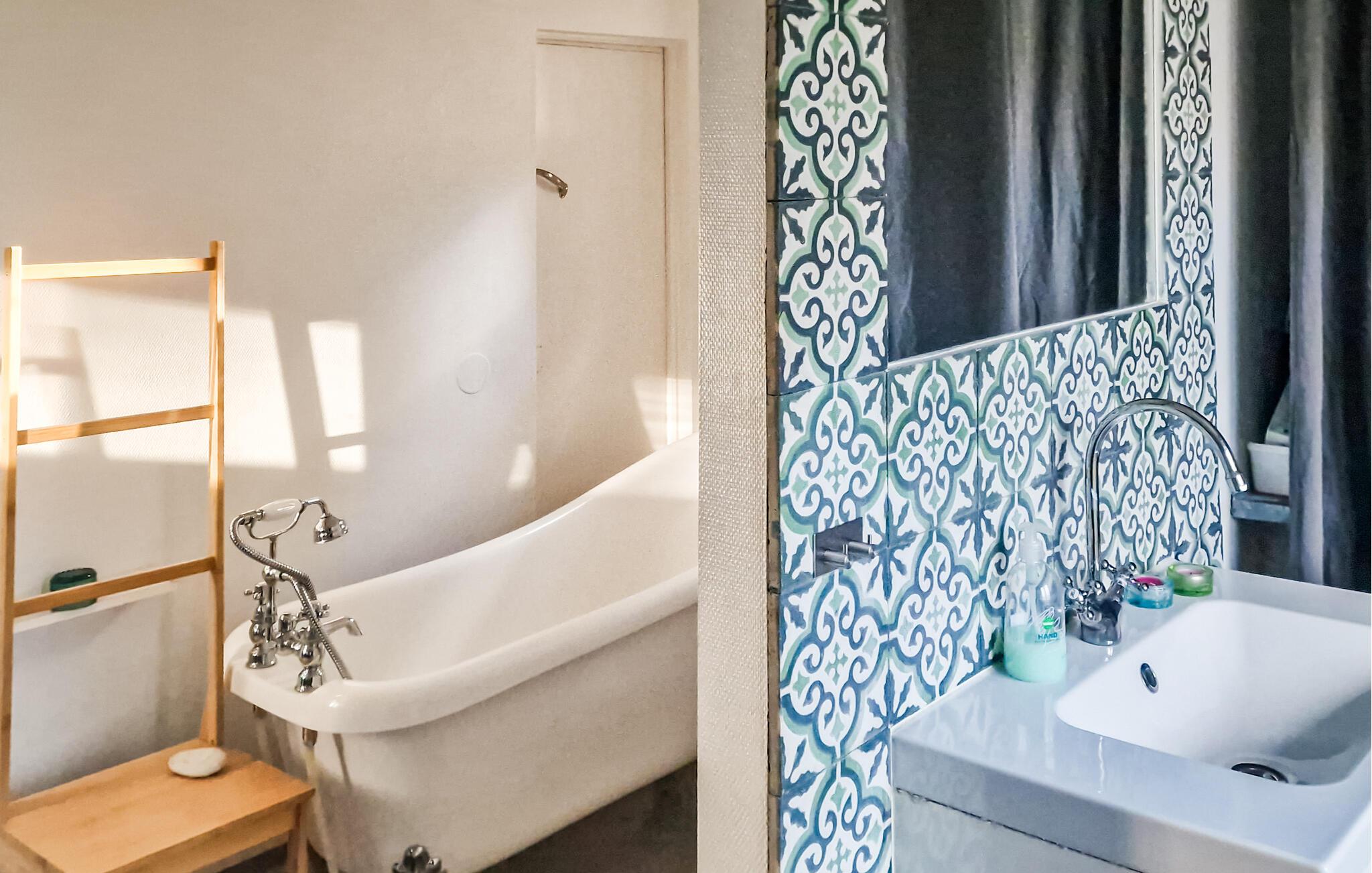 Badeværelse 15m2 (nr. 1) - WC. Varmt og koldt vand. Håndbruser, badekar og bruser