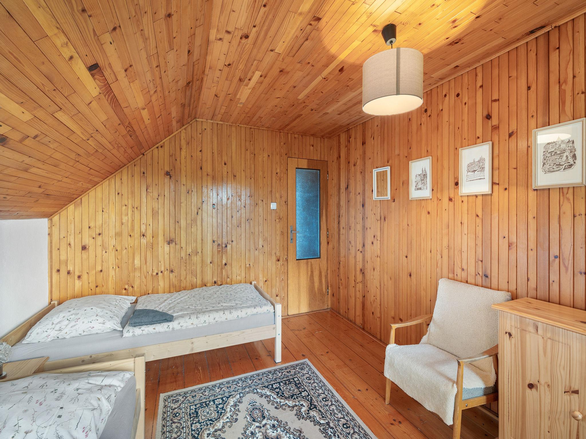 In a picturesque corner of the Bohemian Paradise protected area, with a location 400 m from the Komárov pond and the Príhrazské skály nature reserve. Cosy cottage "Jaruška", 2 storeys, detached, surrounded by meadows. In the resort Zakopaná, 2 km from the centre of Branžež, in a quiet, sunny position, 200 m from the edge of the forest, 400 m from the lake, in the countryside. Private: property 270 m2 (fenced). Garden furniture, barbecue, fireplace. In the house: storage room for bicycles. Parking (for 5 cars) at the house. Shop 5 km, shopping centre 10 km, restaurant 400 m, bus stop "Zakopaná" 30 m, railway station "Brezina" 6.5 km, outdoor swimming pool 5 km, public bathing area 400 m. Nearby attractions: Drábské svetnicky 4 km, Hrad Kost 5 km, Valecov, Zámek Humprecht 10 km, Hrad Trosky, Valdštejn, Zámek Sychrov H 20 km, Hrubá Skála, Skalní mesto 20 km, Prachovské skály 20 km, Malá Skála - Pantheon 25 km. Well-known lakes can easily be reached: Komárovský rybník 400 m. Also only 400 m from the main tourist route "Golden Path of Bohemian Paradise.".