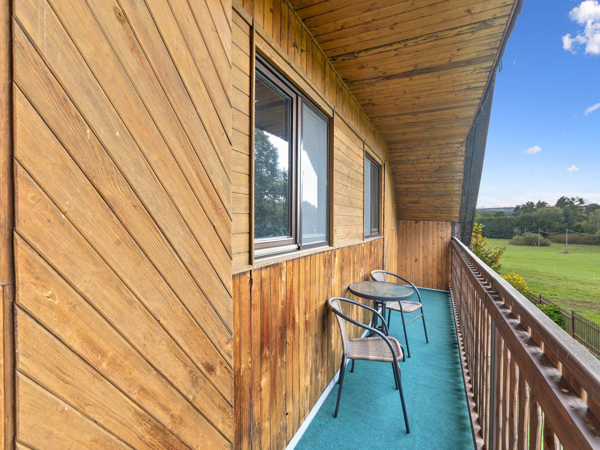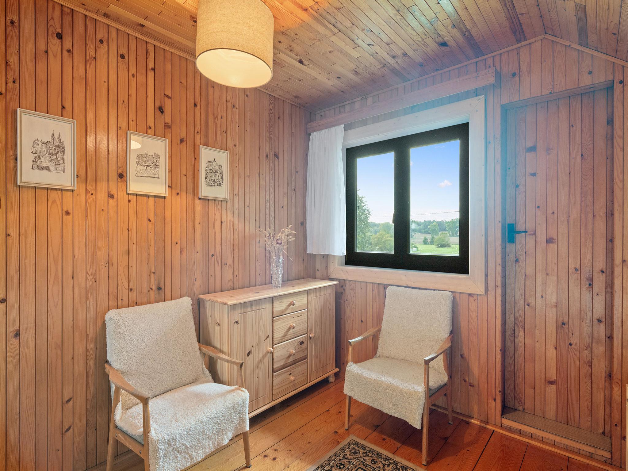 4-room cottage on 2 levels. Living room with Scandinavian wood stove. Open walk-through room with 2 folding beds. Kitchen (4 ceramic glass hob hotplates, toaster, kettle, microwave, freezer) with dining table. Bathroom, sep. WC. Boiler (50 litres). Upper floor: (steep stair), 1 room with 1 double bed. Exit to the balcony. 1 room with 2 beds. Exit to the balcony. 1 room with 1 double bed (120 cm). Electric heating, wood heating. Balcony. Terrace furniture, barbecue. Facilities: washing machine, hair dryer. Internet (WiFi, free). Please note: suitable for families. Non-smoking house. Maximum 3 pets/ dogs allowed. Two folding mattresses can be moved to other room.