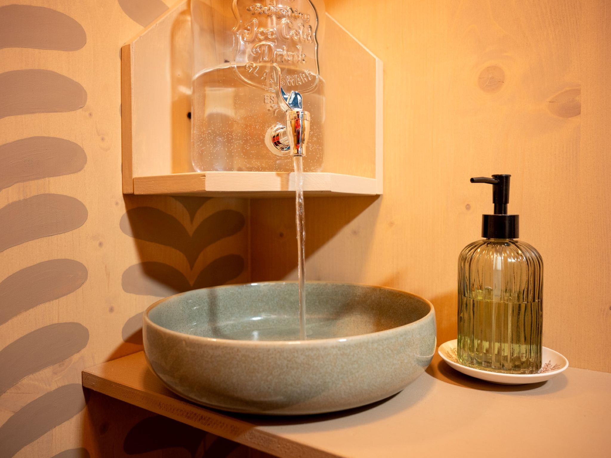 "Glamping Sokolka", 2-room house 12 m2 on 2 levels. Object suitable for 2 adults + 2 children. Simple and practical furnishings: living/dining room with 1 double fold-away bed (160 cm, length 200 cm). Kitchenette (2 gas rings, electric coffee machine). Sep. WC. Heating. Upper floor: (ladder) open gallery with 1 sleeping facility (160 cm, length 200 cm). Beautiful view of the countryside. Please note: non-smoking house. THERE IS NO BATHROOM AVAILABLE IN THE OBJECT, THERE IS ONLY A WASHBASIN.