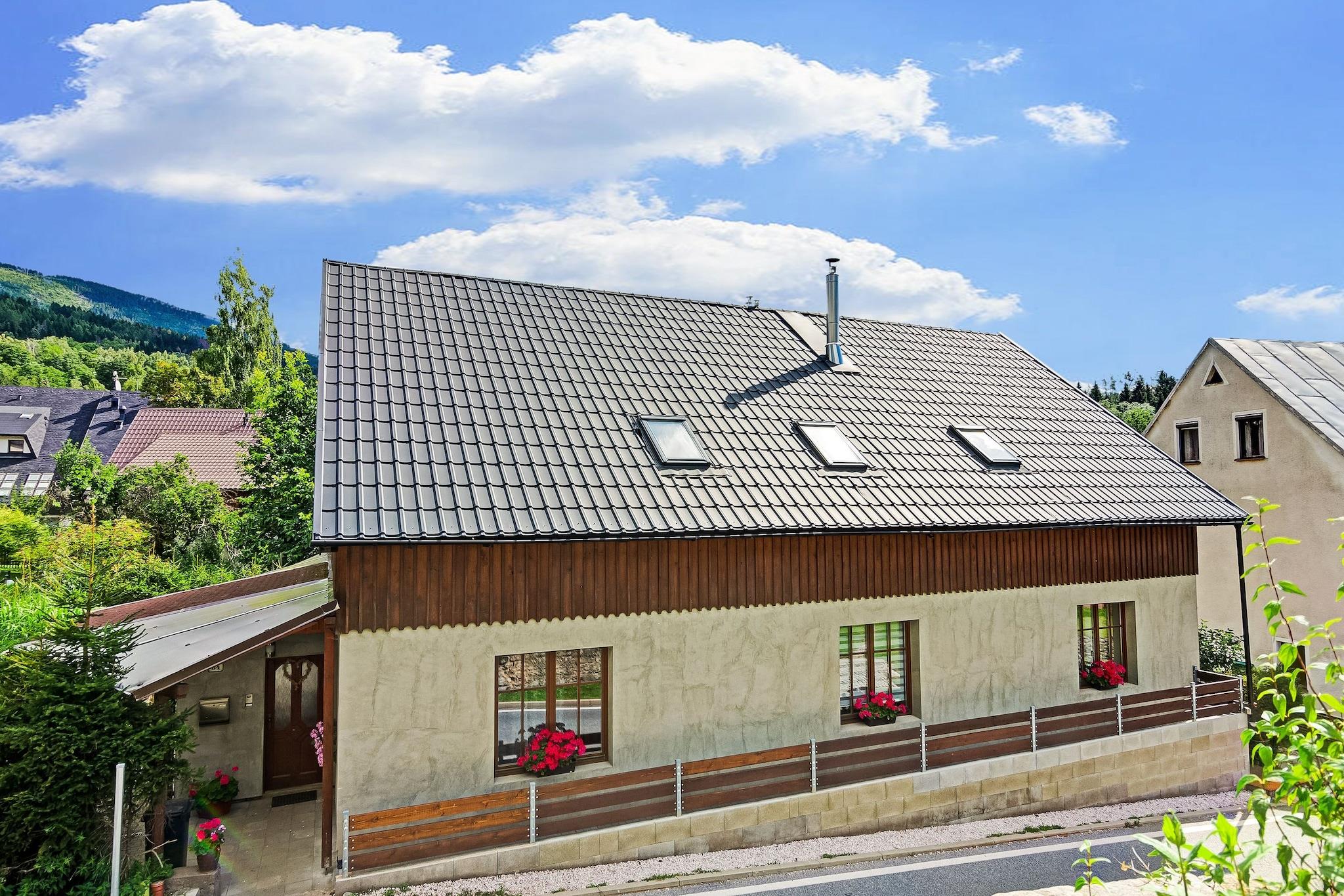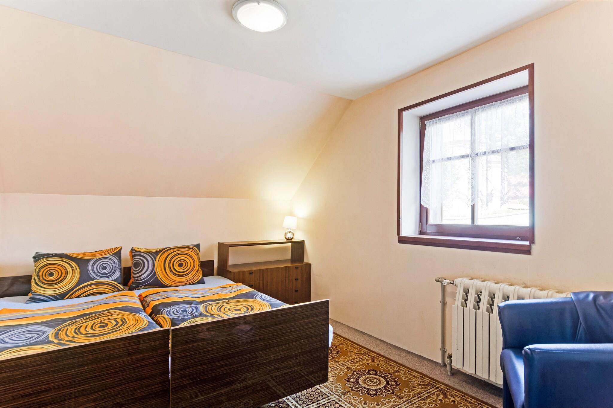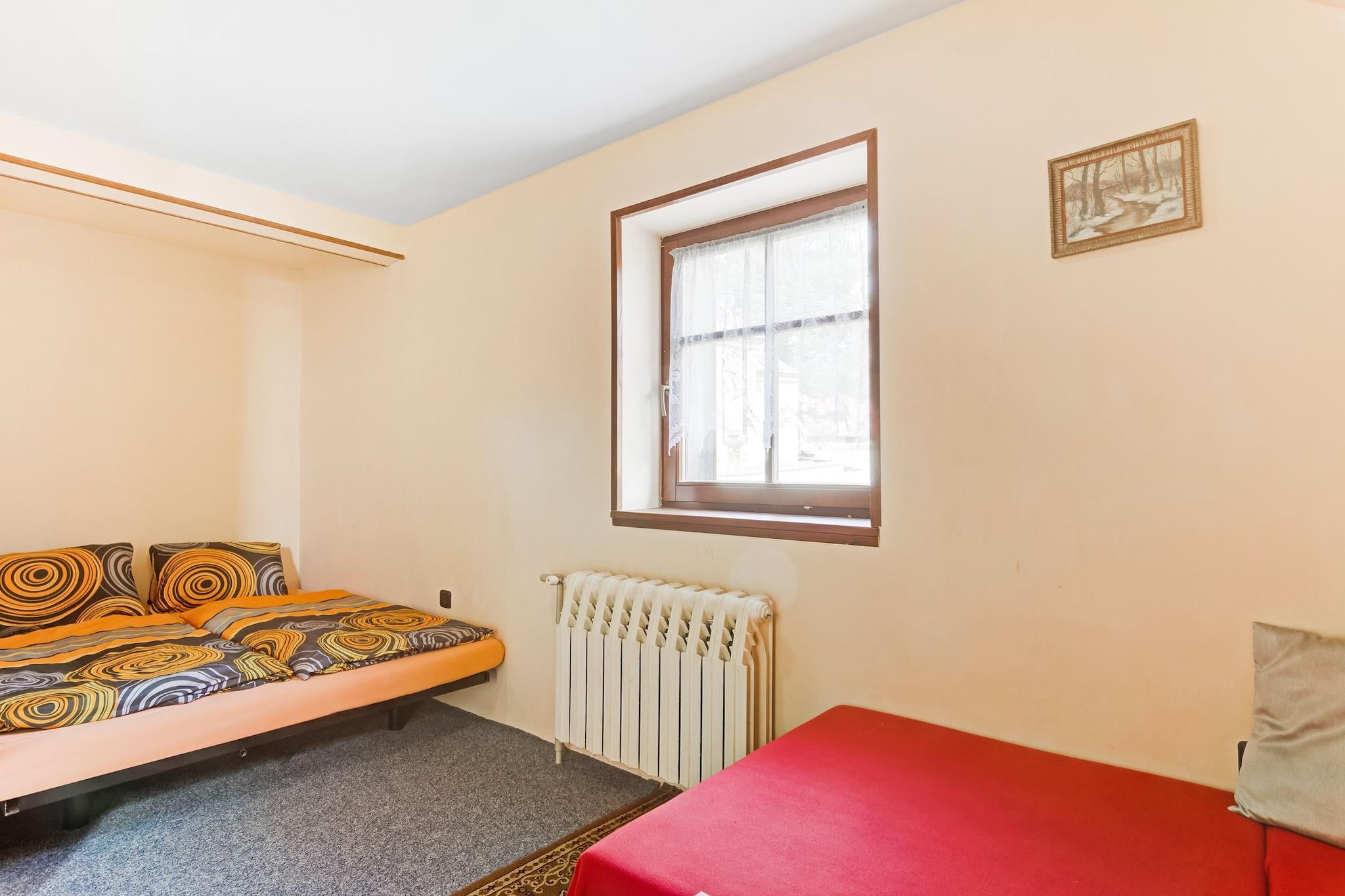 Bjergophold i Cerný Dul Beliggende i de naturskønne kæmpebjerge tilbyder dette indbydende feriehus i Cerný Dul et behageligt tilflugtssted for familier og venner. Med fire soveværelser, en rummelig stue og en privat have er det velegnet til rejsende, der søger både afslapning og eventyr. Hjemmet tilbyder moderne bekvemmeligheder, herunder WiFi, satellit-tv og et fuldt udstyret køkken, hvilket sikrer bekvemmelighed under hele dit ophold. Gæsterne kan nyde terrassen og haven, ideel til udendørs måltider eller slappe af efter en dag med aktiviteter. Eventyr på dit dørtrin Perfekt beliggende kun 400 m fra skiliften, huset tilbyder direkte adgang til pisterne i skiområdet Cerný Dul, en del af den berømte Giant Mountains-region. Om sommeren inviterer stierne omkring Cerná hora og Snežka, det højeste bjerg i Tjekkiet, besøgende til uforglemmelige vandreture med panoramaudsigt. Offentlig transport og turistinformationen ligger kun 100 m væk, hvilket gør det nemt at planlægge dagsture til nærliggende byer, naturparker eller kulturelle vartegn. Lokal spisning og afslapning En kort gåtur bringer dig til lokale restauranter og caféer (200 m), hvor du kan nyde traditionelle tjekkiske retter eller et hyggeligt afterski-måltid. Butikker og forsyninger er tilgængelige kun 100 m væk for nemheds skyld. Efter en dag udendørs kan du vende tilbage til haven til en grill, slappe af på terrassen eller lade børnene nyde trampolinen og poolen.