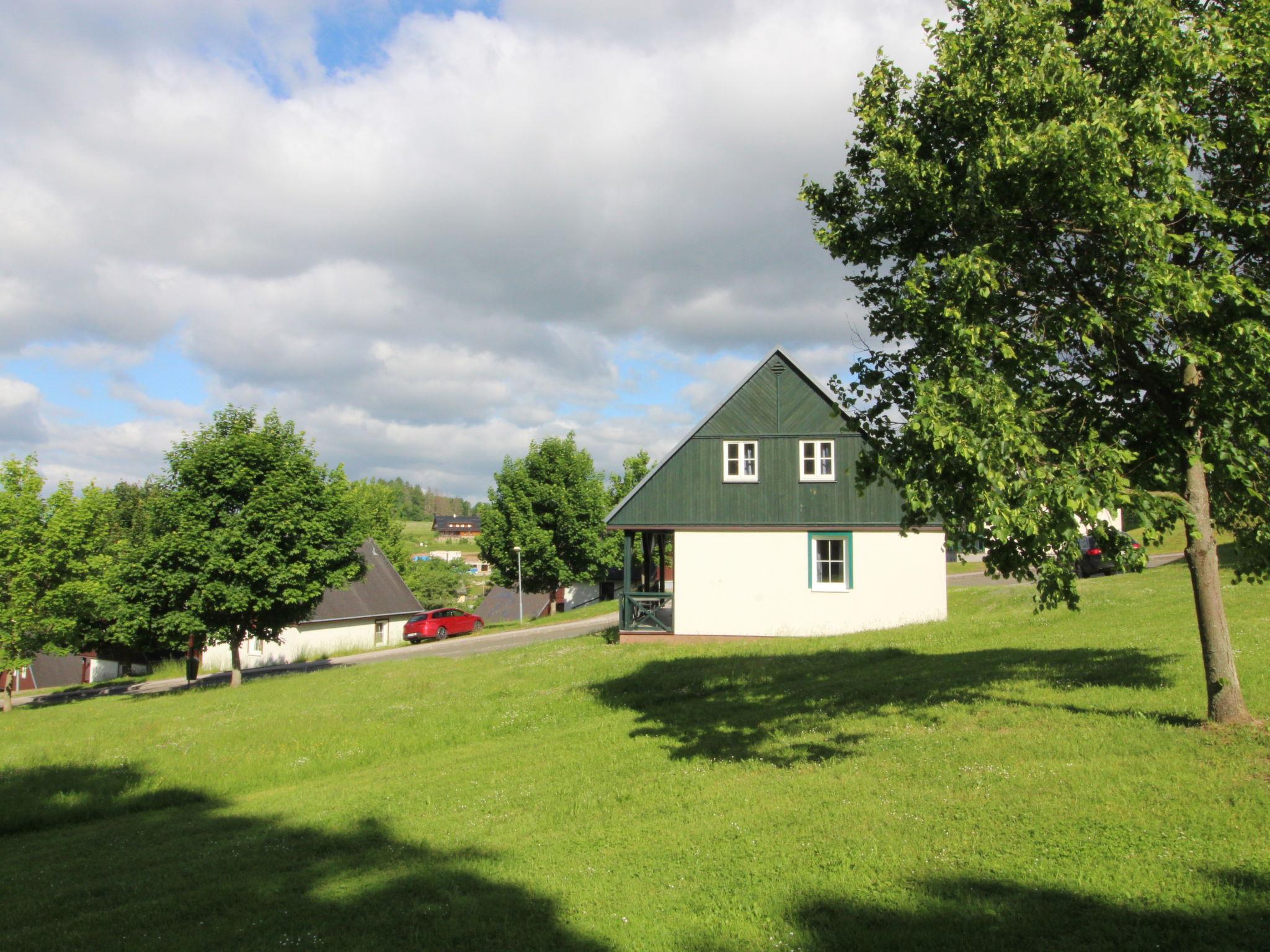 Cistá v Krkonoších 2 km from Cerný Dul: Child friendly, beautiful, comfortable holiday village "Holiday Hill 36", 500 m a.s.l., surrounded by trees and meadows. 43 houses in the resort. On the outskirts, in a secluded, quiet, sunny position, 1.5 km from the lake, 3 km from the skiing area, in the countryside. For shared use: property 6 ha, meadow, swimming pool heated (9 x 4 m, depth 120 cm, seasonal availability: 15.May. - 30.Sep. pool opening hours: 09:00-20:00). Shower/WC in the pool area, table tennis, children's playground (swing, sandbox). In the complex: reception, central heating system. Parking (for 2 cars) at the house. Shop 2.5 km, grocery 2.5 km, supermarket 7.5 km, restaurant 1.6 km, pub garden 400 m, bus stop "Cerný Dul, Cistá-pošta" 400 m, grass beach 1.5 km (small), indoor swimming pool 19 km. Golf course (18 hole) 14 km, tennis 2.5 km, sports centre 2.5 km, walking paths from the house 100 m, cycle lane, ski lift 3 km, chair lift 3 km, slopes 3 km, ski school 3 km, children's ski school 3 km, sled run 7 km, cross country ski track 100 m. Nearby attractions: Janské Lázne Spa 9 km, Vrchlabí 10 km, Aquapark Trutnov 25 km, Zoo Safari Dvur Králové 29 km, Bozkovské jeskyne 37 km, Adršpašské skály 44 km. Well-known ski regions can easily be reached: Cerný Dul 3 km, Herlíkovice 15 km, Pec pod Snežkou 22 km. Well-known lakes can easily be reached: Cistá 1.5 km, Vrchlabí 9 km. Hiking paths: Snežka 25 km.