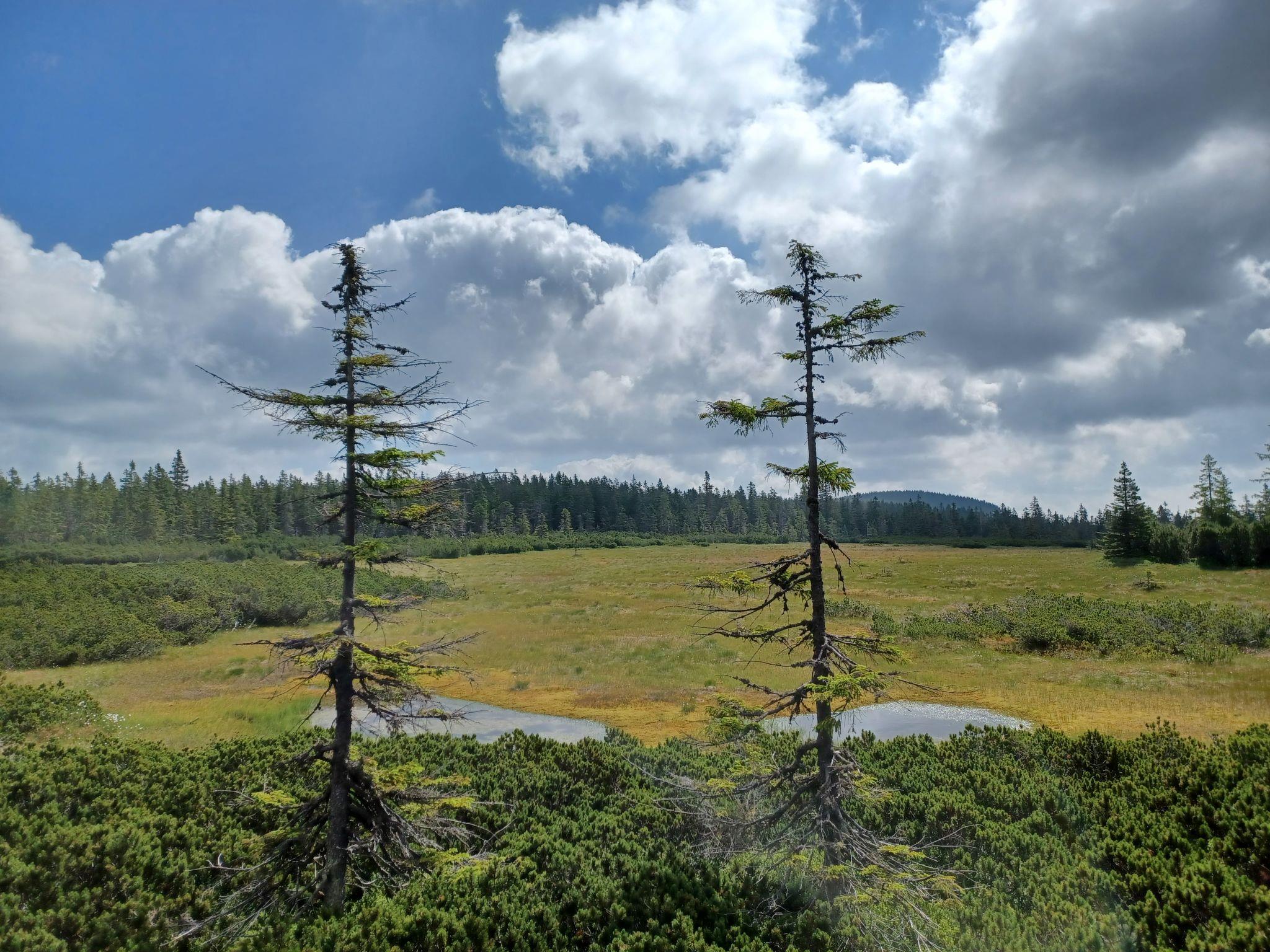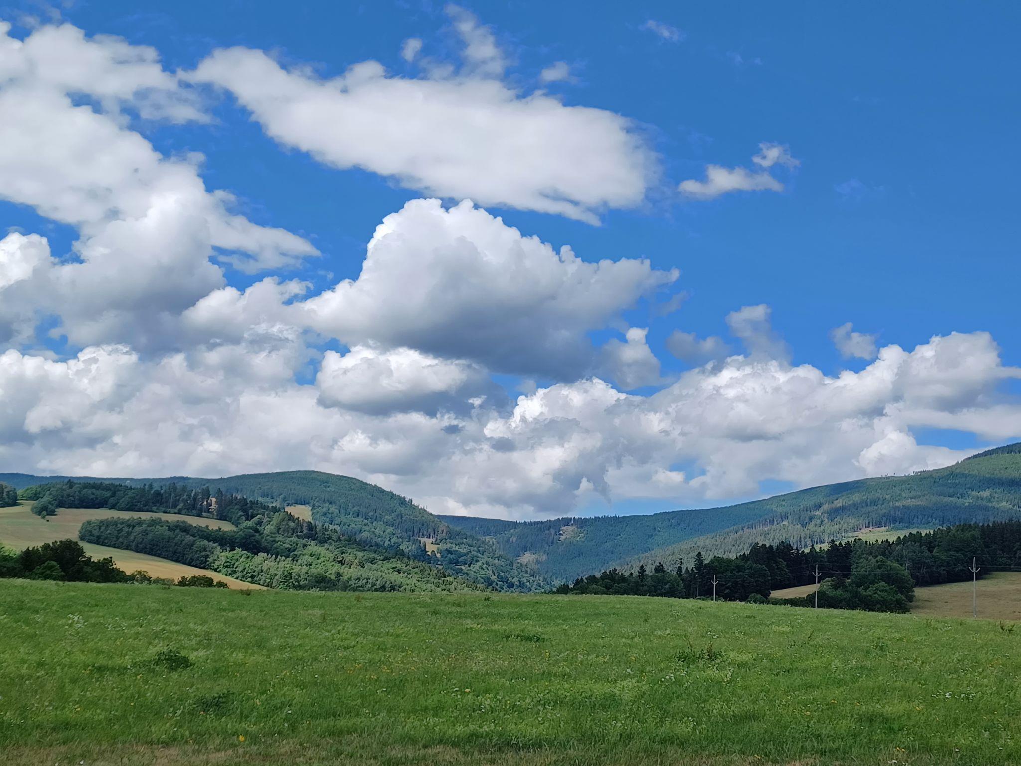 Cistá v Krkonoších 2 km from Cerný Dul: Child friendly, beautiful, comfortable holiday village "Holiday Hill 53", 500 m a.s.l., surrounded by trees and meadows. 43 houses in the resort. On the outskirts, in a secluded, quiet, sunny position, 1.5 km from the lake, 3 km from the skiing area, in the countryside. For shared use: property 6 ha, meadow. Table tennis, children's playground (swing, sandbox). Private: terrace, garden furniture, barbecue. In the complex: reception, storage room for bicycles, storage room for skis, central heating system. Parking (for 2 cars) at the house. Shop 2.5 km, grocery 2.5 km, supermarket 7.5 km, restaurant 1.6 km, pub garden 400 m, bus stop "Cerný Dul, Cistá-pošta" 400 m, grass beach 1.5 km (small), indoor swimming pool 19 km. Golf course (18 hole) 14 km, tennis 2.5 km, sports centre 2.5 km, walking paths from the house 100 m, cycle lane, ski lift 3 km, chair lift 3 km, slopes 3 km, ski school 3 km, children's ski school 3 km, sled run 7 km, cross country ski track 100 m. Nearby attractions: Janské Lázne Spa 9 km, Vrchlabí 10 km, Aquapark Trutnov 25 km, Zoo Safari Dvur Králové 29 km, Bozkovské jeskyne 37 km, Adršpašské skály 44 km. Well-known ski regions can easily be reached: Cerný Dul 3 km, Herlíkovice 15 km, Pec pod Snežkou 22 km. Well-known lakes can easily be reached: Cistá 1.5 km, Vrchlabí 9 km. Hiking paths: Snežka 25 km.
