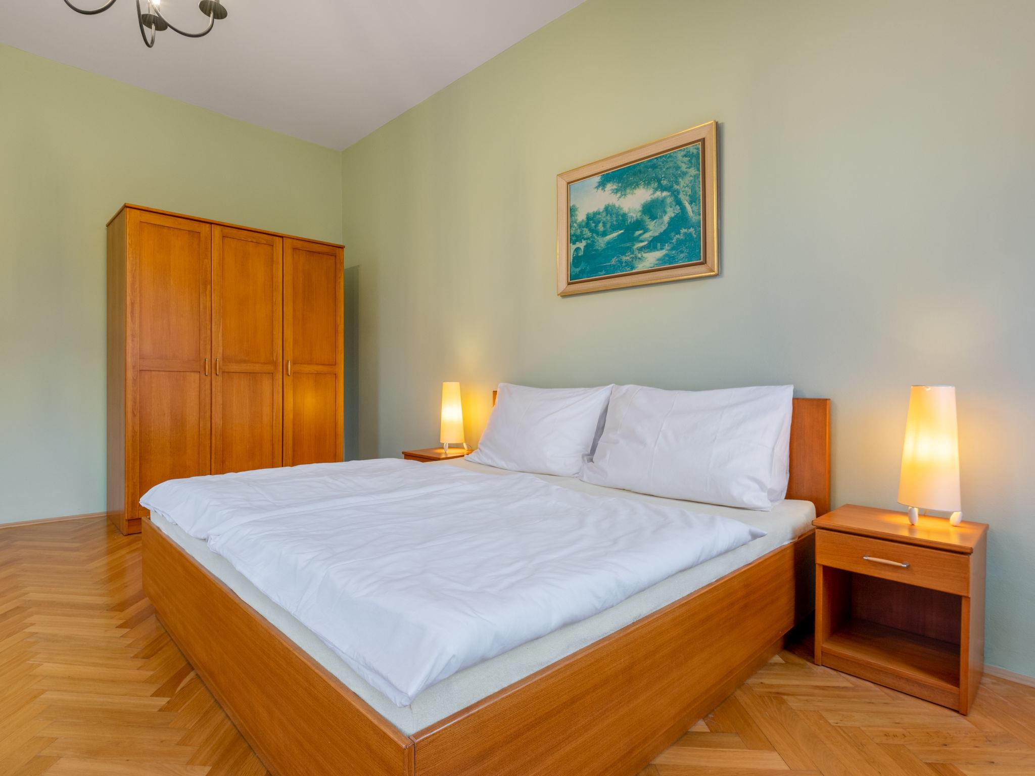 "Base Camp 1", 3-room apartment 78 m2 on 1st floor. Spacious and bright: living room with 1 sofabed, satellite TV and DVD. 1 room with 1 double sofabed (160 cm, length 200 cm), 1 double bed. 1 room with 2 beds. Kitchenette (oven, 4 ceramic glass hob hotplates, toaster, kettle, microwave, electric coffee machine) with dining table. Shower, bidet, sep. WC, hydro massage bath. Gas heating. Parquet floors. Facilities: Internet (WiFi, free). Please note: suitable for families. Non-smokers only. 1 small pet/ dog allowed.