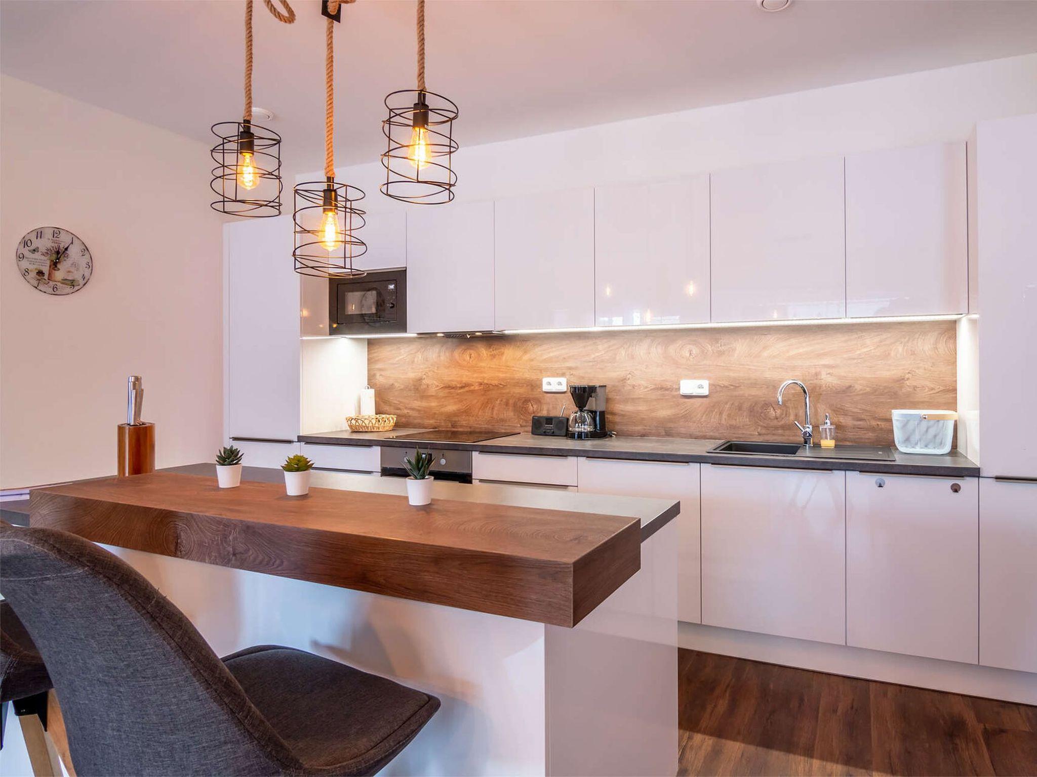"Lakeside Village 21", 4-room apartment on the ground floor. Object suitable for 5 adults + 1 child. Comfortable and cosy furnishings: living room with Scandinavian wood stove. 2 rooms, each room with 1 double bed. 1 room with 1 x 2 bunk beds. Kitchenette (4 hot plates, oven, dishwasher, toaster, kettle, microwave, electric coffee machine) with dining table, satellite TV. Shower/WC, sep. WC. Floor heating. Large terrace. Terrace furniture, barbecue. Facilities: Internet (WiFi, free). Suitable for families. Maximum 1 pet/ dog allowed.