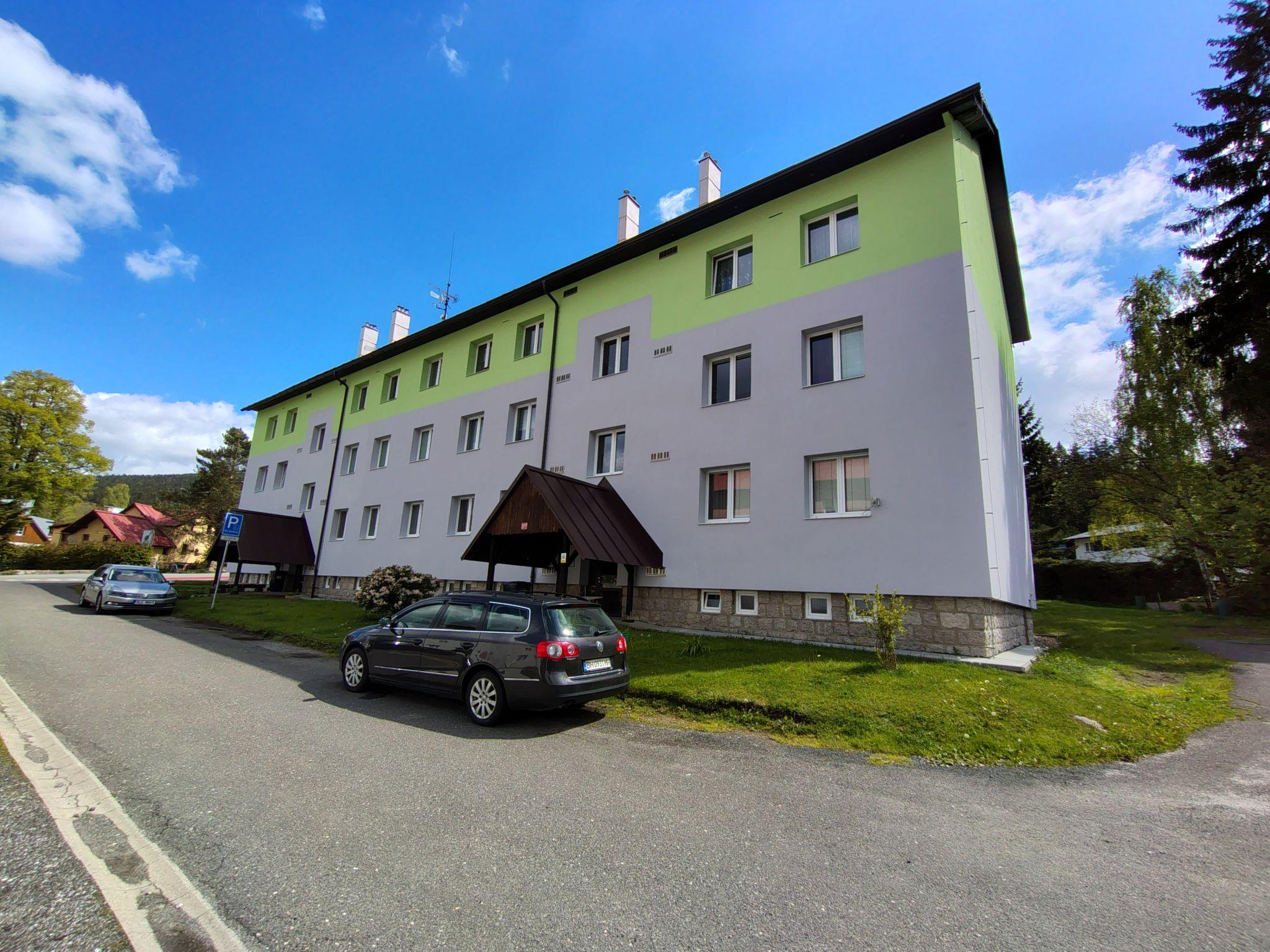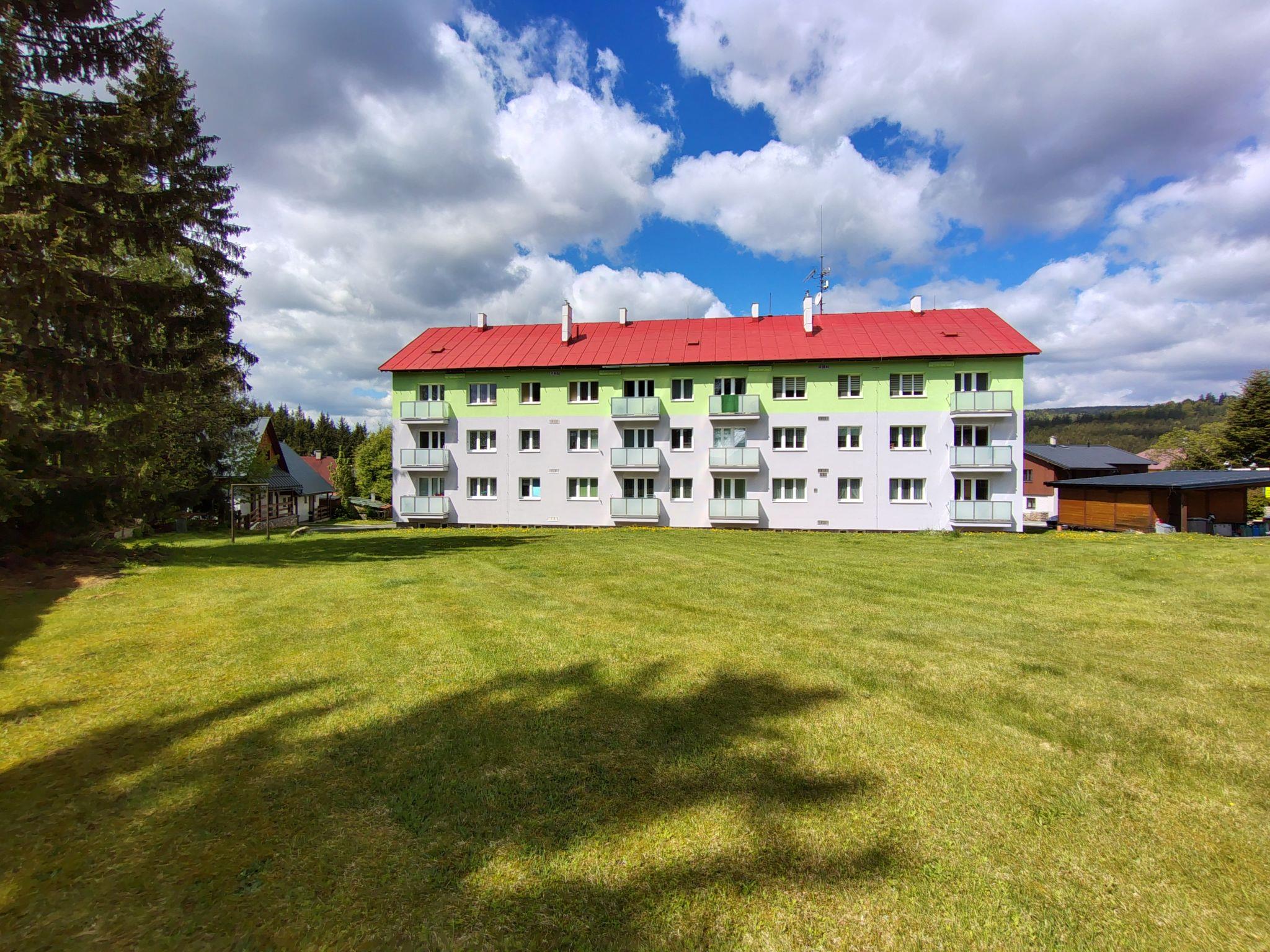 Apartment block "Harrachov 377". 800 m from the centre of Harrachov, in a quiet, sunny position. In the house: central heating system. Parking at the house. Supermarket 500 m, restaurant, café 200 m, bus stop "Sklárna" 300 m, railway station "Harrachov" 3 km. Minigolf 1.5 km, ski rental 200 m, ski bus stop 200 m, ski school 1.5 km, cross country ski track 1 km. Nearby attractions: Mumlavské vodopády 3 km, Šindelka 2.5 km, Ski muzeum 2.5 km, Sklárna Novosd a syn a pivovar 200 m, muzeum skla 200 m, bobová dráha 300 m. Well-known ski regions can easily be reached: Harrachov 2 km, Rokytnice n/J 17 km, Paseky n/J 13 km. Hiking paths: Vosecká bouda 12 km, Dvoracky 10 km, Labská bouda 15 km.