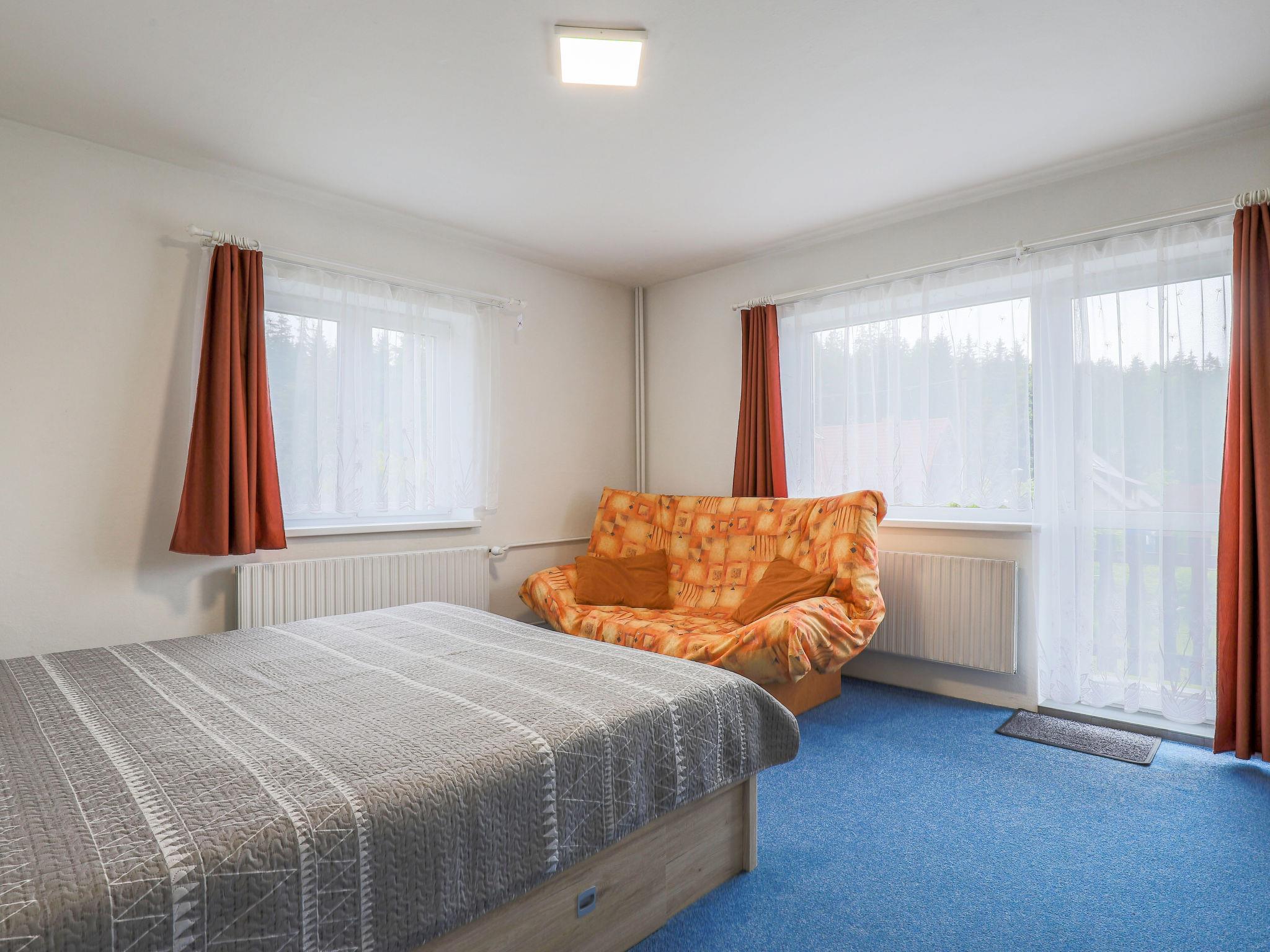 Comfortable house, 2 storeys, detached. In the district of Nový Svet, in the resort 300 m from the centre of Harrachov, 800 m from the skiing area. For shared use: property, garden, swimming pool (above ground) round (seasonal availability: 20.Jun. - 05.Sep.). In the house: storage room for skis, central heating system. Parking at the house. Supermarket 200 m, restaurant, café 100 m, bicycle rental 1.5 km, bus stop "U Karolíny" 100 m, railway station "Harrachov" 2.1 km, outdoor swimming pool 1.5 km. Golf course (9 hole) 3 km, tennis 1 km, ski lift 500 m, chair lift 800 m, slopes 500 m, ski rental 10 m, ski school 300 m, cross country ski track 200 m, children's playground 300 m. Nearby attractions: Bobová dráha, Muzeum skla 300 m, Skokanské mustky Harrachov 1.3 km, Mumlavský vodopád 1.9 km, Vodopády Kamienczyka, Szklarki (PL) 6.6 km, Hutský vodopád, Vosecká bouda, Dvoracky 9 km, Aquapark Babylon Liberec 34 km. Well-known ski regions can easily be reached: Certova hora 800 m, Zákoutí 1,5 km, Ryžovište 3 km, Korenov 6,5 km, Rokytnice nad Jizerou 14 km. Hiking paths: Western City(Pl) 40 km, Karpacz Wang,Park miniatury Kowary (Pl) 44 km, Giganteria Piechowice 23km, Dinopark(Pl) 15 km.