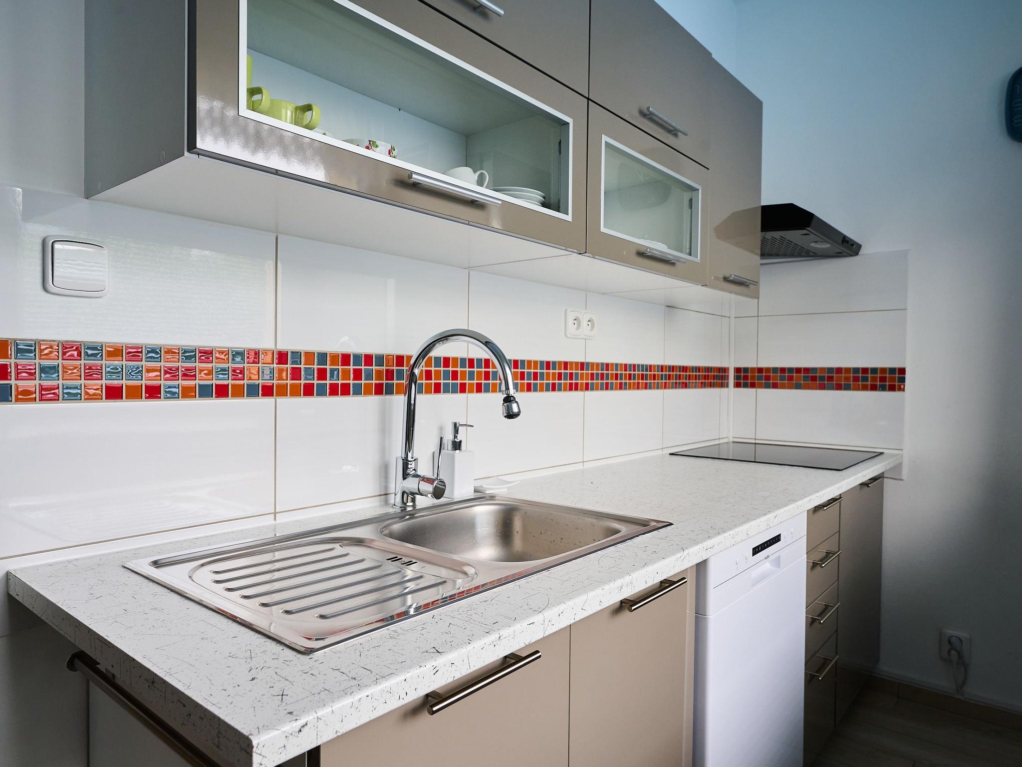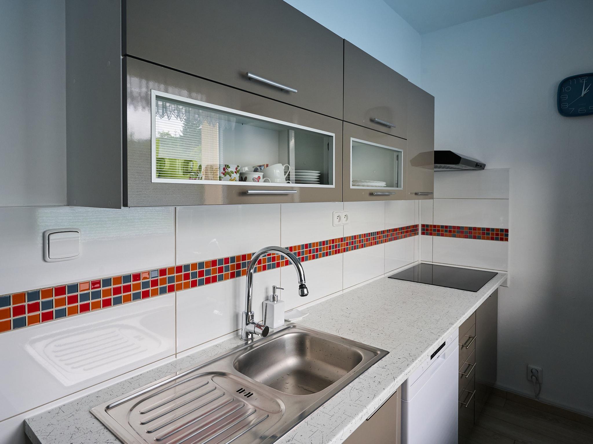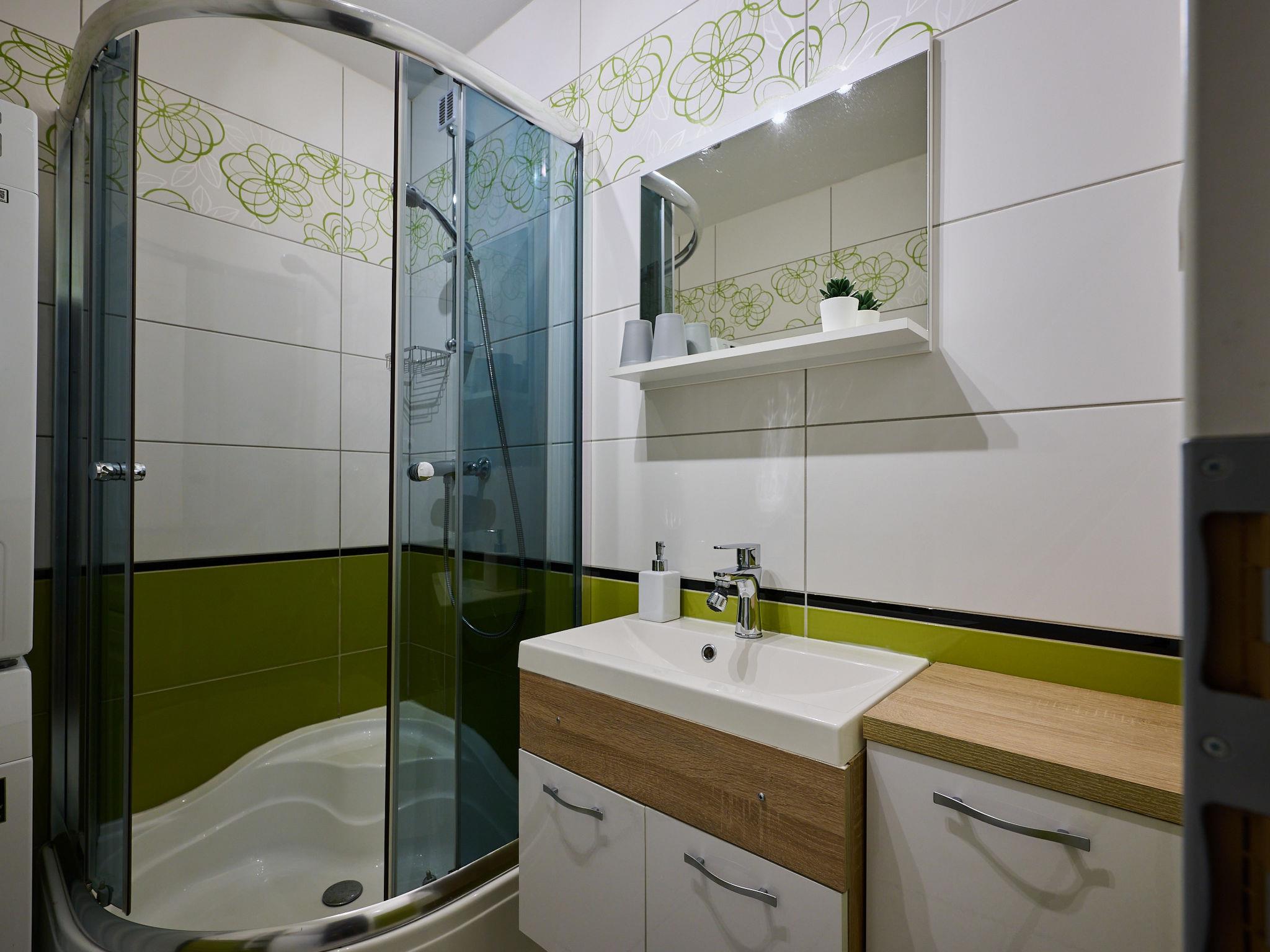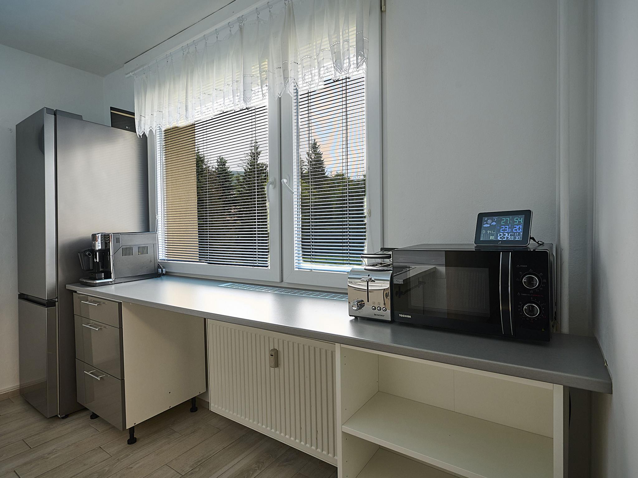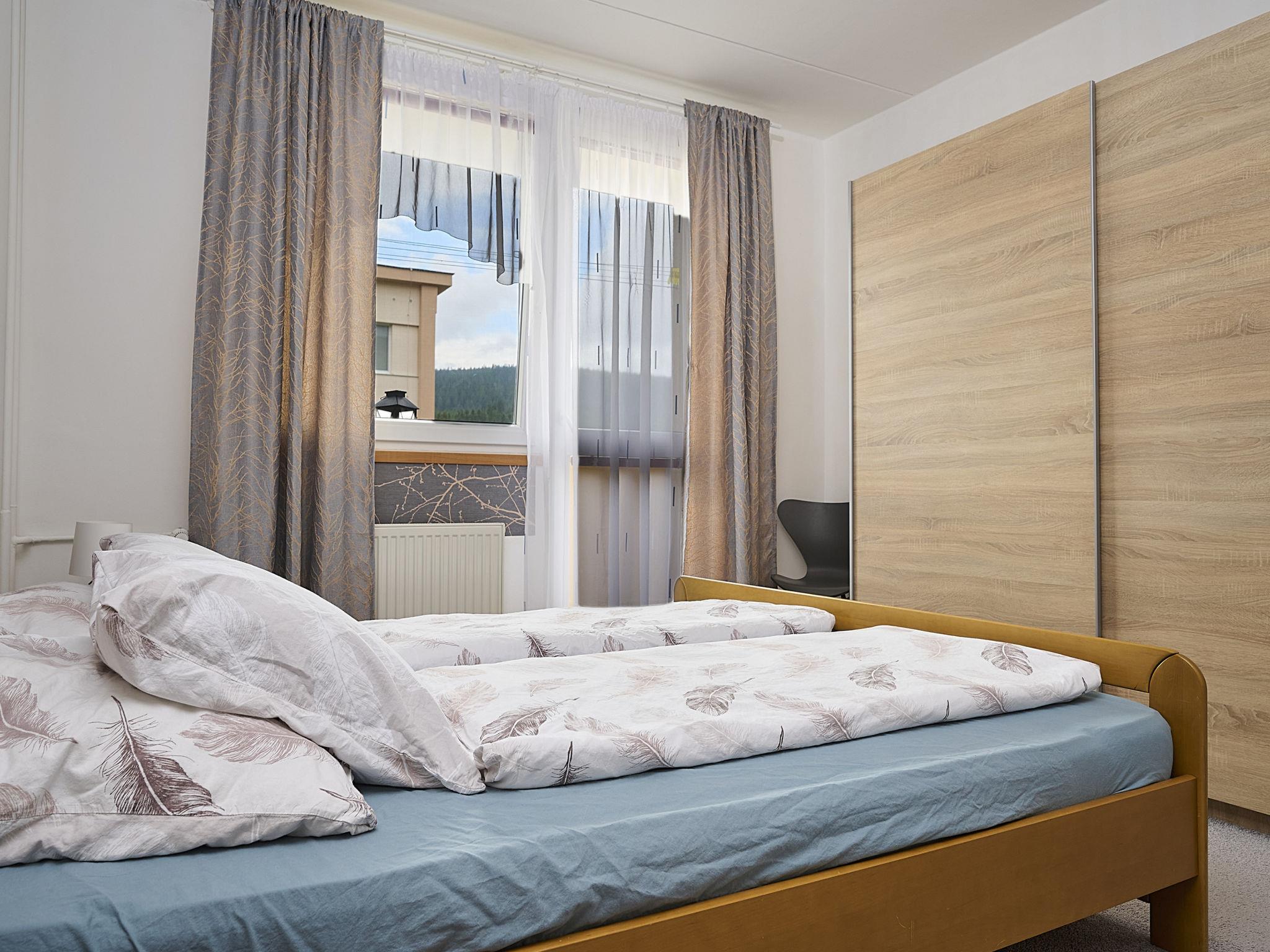 Cosy apartment block. In the district of Nový Svet, in a quiet position, 1.5 km from the skiing area. In the complex: lift, storage room for bicycles, storage room for skis, central heating system, ski boot dryer. Parking at the house. Supermarket 700 m, restaurant 50 m, bar, café, 20 minute walk to the centre, bus stop "Motejlek" 400 m, railway station "Harrachov" 2.5 km. Tennis 2 km, minigolf 2 km, ski lift 1.5 km, ski bus stop 400 m, ski-kindergarten 300 m, cross country ski track 800 m. Nearby attractions: Mumlavské vodopády 3.5 km, bobová dráha 200 m, Šindelka, ski muzeum, skokanské mustky 2.5 km, sklárna a minipivovar Novosad a syn 400 m, Hornické muzeum 2.5 km, Termy Cieplickie (Pl) 30 km. Well-known ski regions can easily be reached: Harrachov 1.5 km, Paseky n/J 11 km, Rokytnice n/J 18 km. Hiking paths: Western City(Pl) 40 km, Karpacz Wang,Park miniatury Kowary (Pl) 44 km, Giganteria Piechowice 23km, Dinopark(Pl) 15 km.