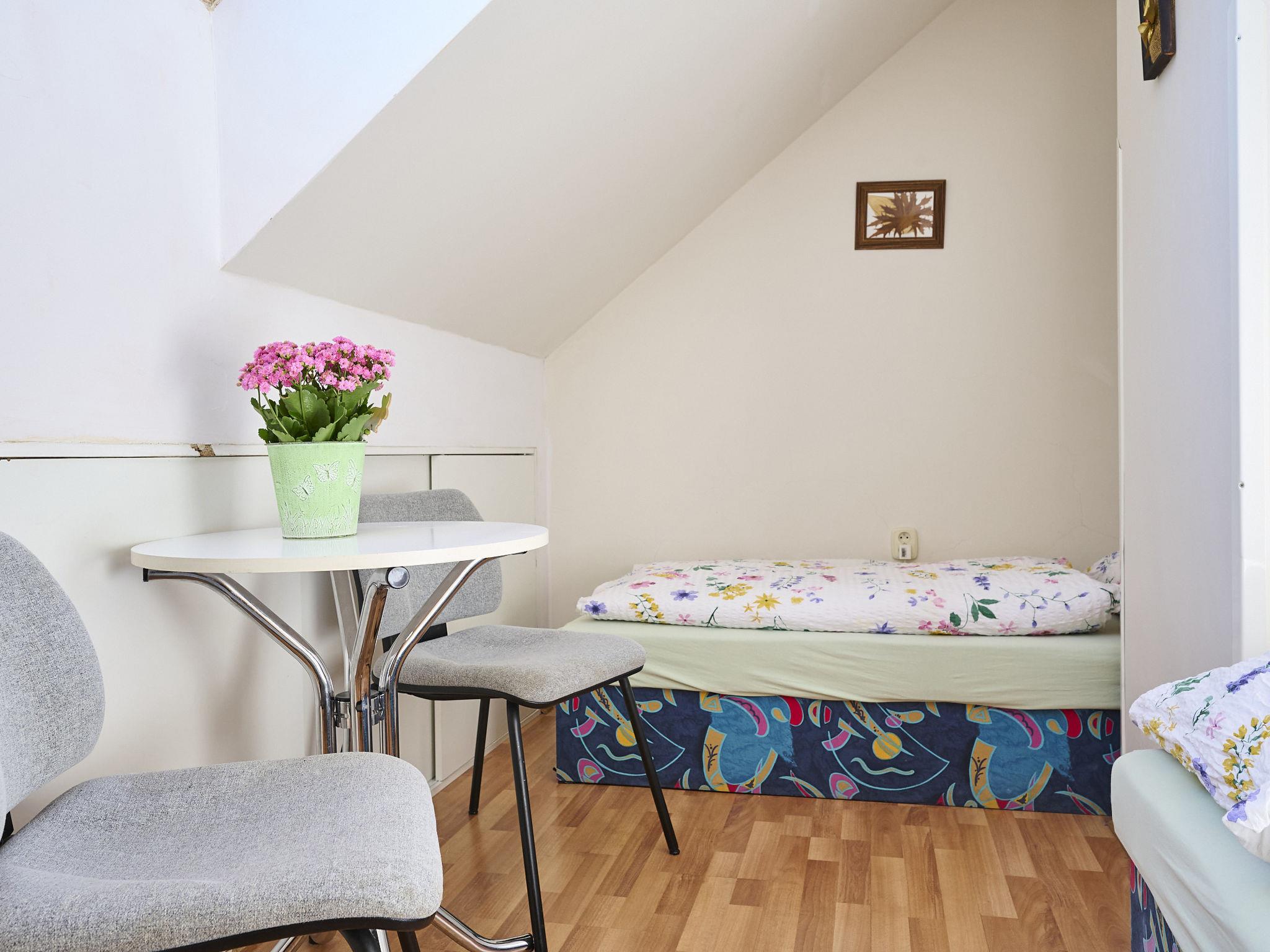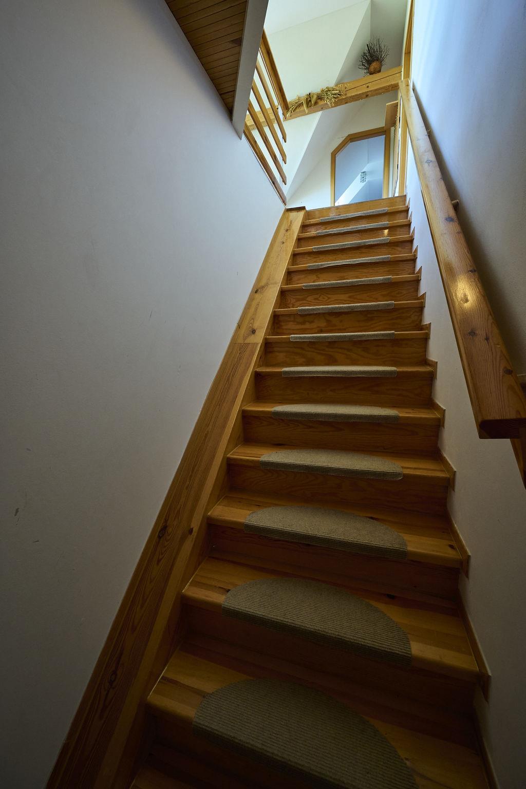 "Skyline Hideaway & Pets", 3-room apartment 79 m2 on 3rd floor. Cosy furnishings: open mezzanine with sloping ceilings with panoramic window. Open living/sleeping room with sloping ceilings with 1 double sofabed, dining table and TV. Exit to the loggia. 2 rooms, each room with 2 beds. Open kitchen (oven, dishwasher, 4 ceramic glass hob hotplates, toaster, kettle, microwave). Sep. WC, bath/shower/WC. Gas heating. Facilities: Internet (WiFi). Garage. Suitable for families. Maximum 1 pet/ dog allowed.