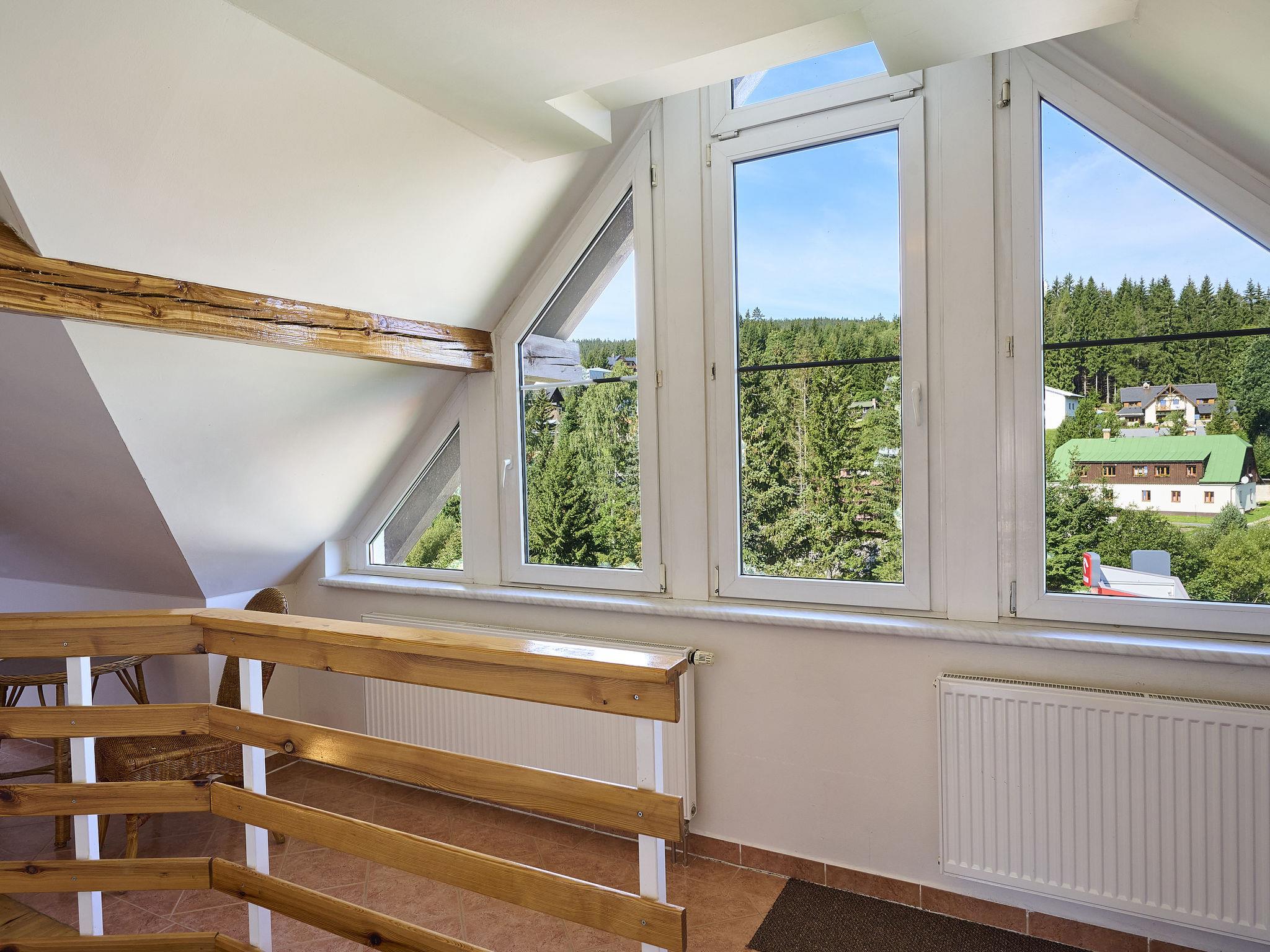 Large house "Harrachov 497". In a quiet, sunny position, 1.5 km from the skiing area, 200 m from the river. Parking, single garage. Supermarket 900 m, restaurant, bakery, café 200 m, bus stop "Harrachov U Motejlku" 100 m, railway station "Harrachov" 2.5 km. Golf course (9 hole) 2.5 km, minigolf 2 km, ski bus stop 100 m, children's ski school 300 m, cross country ski track 900 m. Nearby attractions: Mumlava vodopád 3500m,Dvoracky 10 km, Dinopark (Pl) 15 km, Hornické muzeum 2.5km,Ski muzeum 2.2 km, Termy Cieplickie(Pl) 30 km, Giganteria Piechowice(Pl) 20 km, Bežecký lyžarský areál Jakuszyce(Pl) 5 km. Well-known ski regions can easily be reached: Harrachov 1.5 km, Rokytnice n/J 15 km, Rejdice 15km,Paseky n/J 15 km. Hiking paths: Bukovec 15 km, Jizerka 15km,Údolí Jizery 6 km, Park miniatury Kowary 44 km, Labská bouda 15km,Vosecká bouda 10 km. Free ski bus service to the ski region s HarrachovCard. HARRACHOV CARD guest card included in the price.