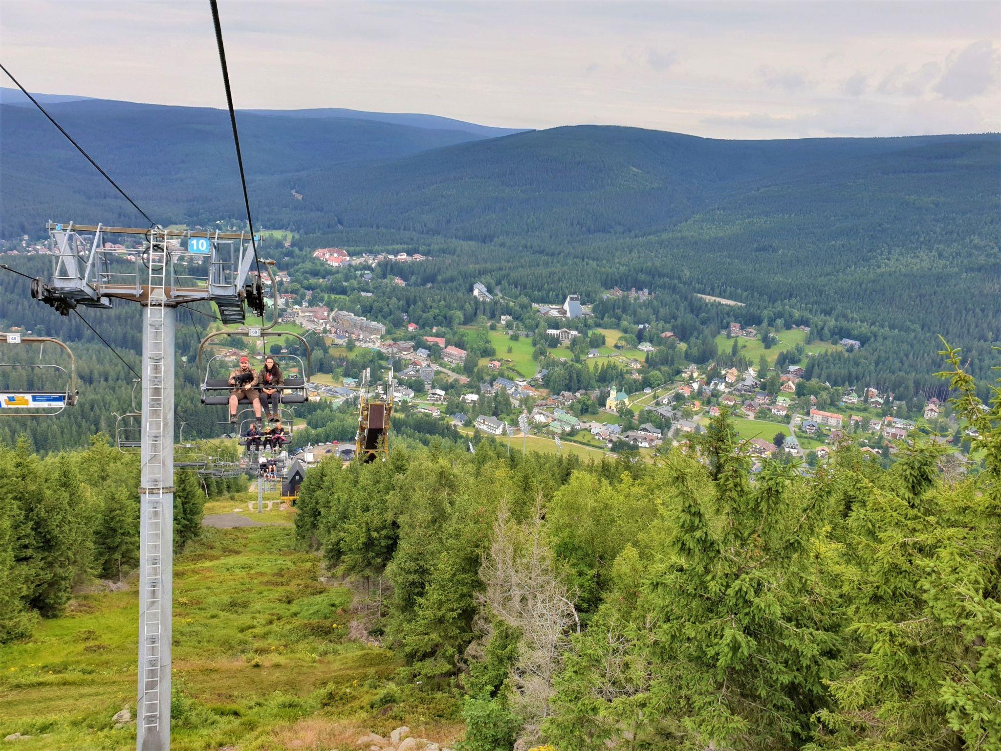 Apartment house 700 m a.s.l., 4 storeys. 3 apartments in the property. In the district of Klondajk 300 m from the centre of Harrachow, in the residential district, 25 km from the lake, 500 m from the skiing area. In the house: storage room for skis. Parking at the house, single garage (extra). Shop, supermarket, restaurant 150 m, bus stop "Harrachov, sklárna" 600 m, railway station "Harrachov, Mýtiny" 3 km, grass beach 25 km, outdoor swimming pool 1 km, indoor swimming pool 1 km. Golf course (9 hole) 3.5 km, tennis 2 km, indoor tennis centre 3 km, ski lift 500 m, chair lift 500 km, slopes, ski rental 500 m, ski bus stop 10 m, ski school 500 km, children's ski school, children's playground 500 m. Nearby attractions: Mumlava vodopád 2.5 km, Korenov 8 km, Jizerka 15 km, Jablonec nad Nisou 29 km, Liberec, Ješted 40 km, Termy Cieplickie (Pl) 30 m. Well-known ski regions can easily be reached: Harrachov 1 km, Príchovice 10 km, Rokytnice nad Jizerou 15 km. Hiking paths: Western City(Pl) 40 km, Karpacz Wang,Park miniatury Kowary (Pl) 44 km, Giganteria Piechowice 23km, Dinopark(Pl) 15 km. Garage on request. HARRACHOV CARD guest card included in the price.
