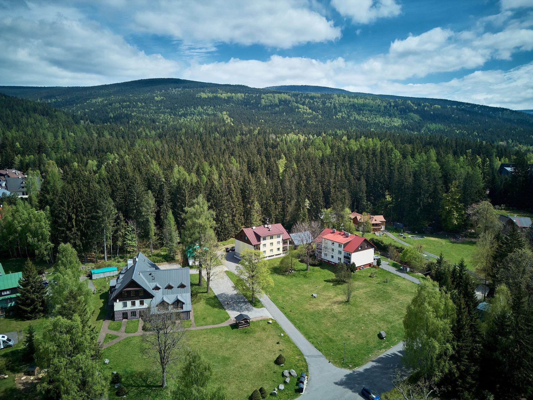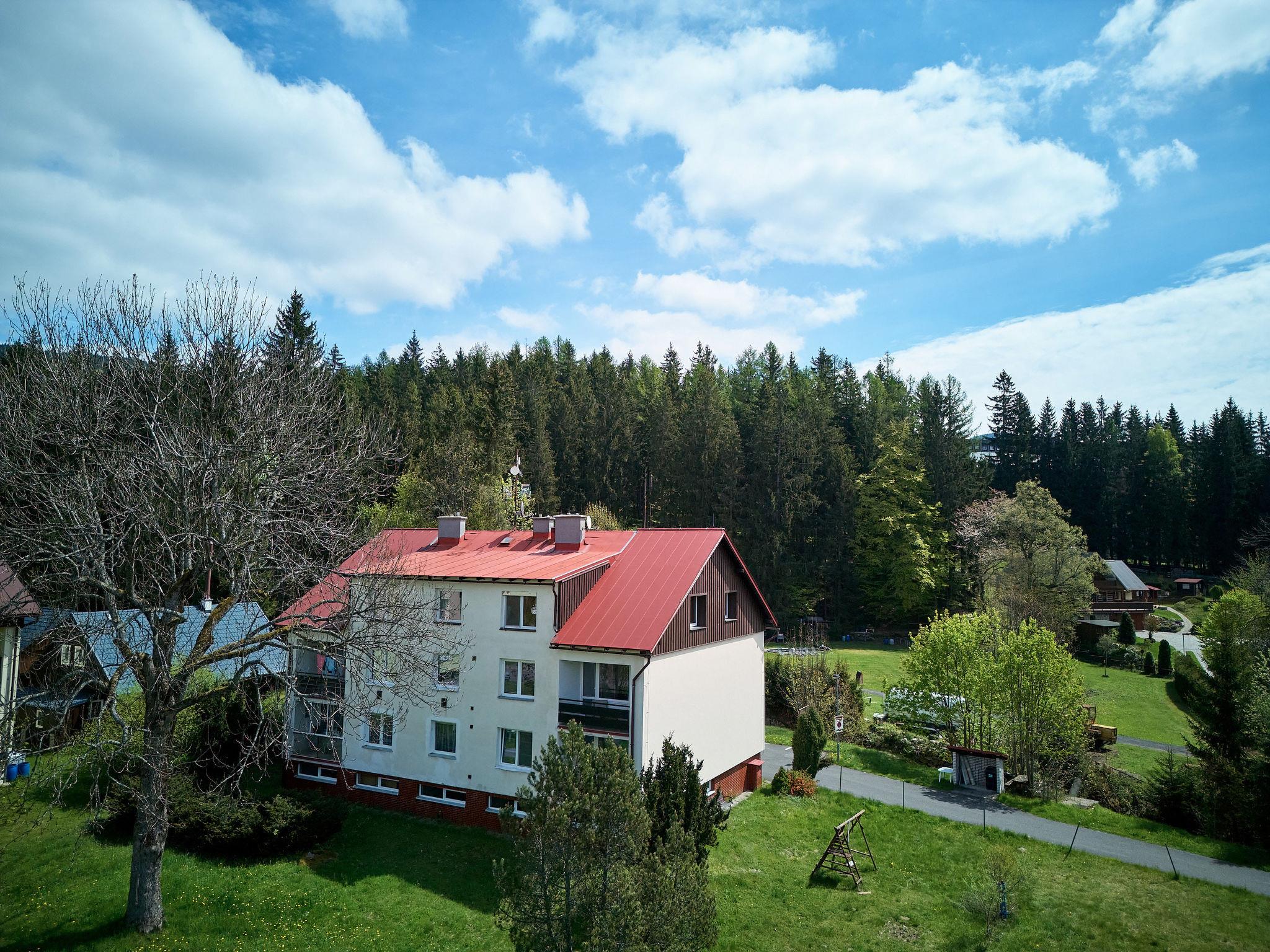 Apartment block "Harrachov 582". 500 m from the centre of Harrachov, in a sunny position, 500 m from the skiing area. For shared use: natural garden, parking on the premises. Supermarket 500 m, restaurant, bar, café 200 m, bus stop "sklárna" 900 m, railway station "Harrachov" 3.5 km. Tennis 1.5 km, ski rental 500 m, ski bus stop 500 m, ski school 500 m, cross country ski track 700 m. Nearby attractions: Mumlavský vodopád 3 km, Ski muzeum 1.5 km, Šindelka muzeum myslivosti 1.5 km, sklárna Novosad a syn 1 km, Rybárna 2 km, Hutský rybník 1.5 km. Well-known ski regions can easily be reached: Harrachov 1.5 km, areal Hilbert 1 km, Zákoutí 1.6 km. Hiking paths: Vosecká bouda 10 km, Dvoracky 8 km, pramen Labe 12 km.