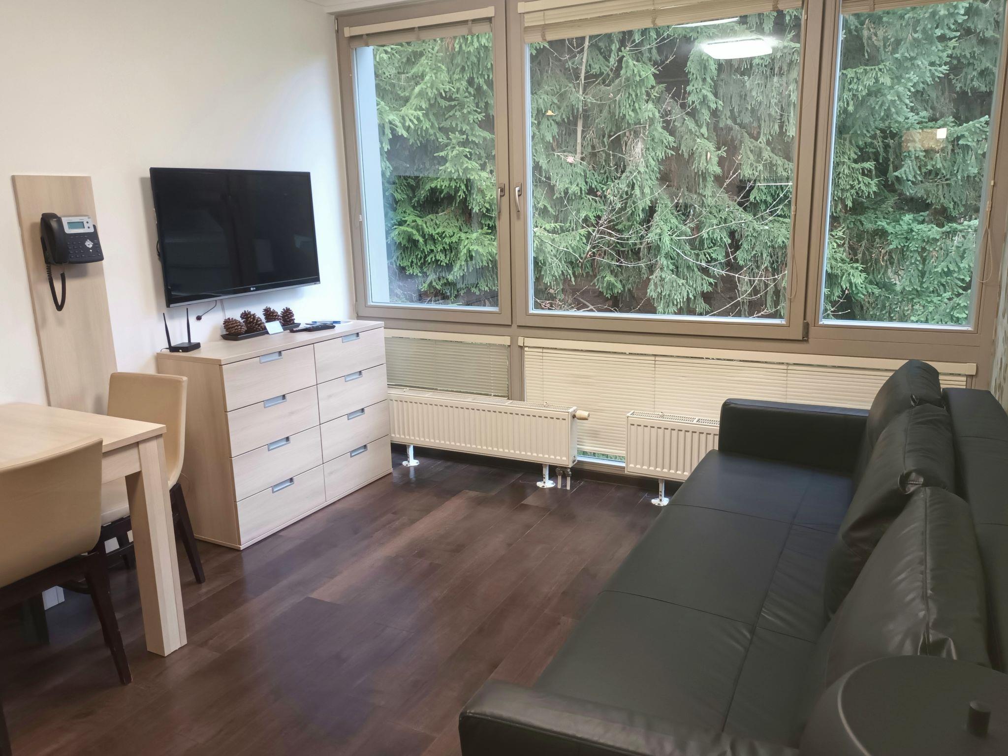 "Harrachov Resident Vesna", 2-room apartment 38 m2 on 3rd floor. Modern and cosy furnishings: living/sleeping room with 1 double sofabed, dining table and satellite TV. 1 room with 1 double bed. Kitchenette (2 ceramic glass hob hotplates, toaster, kettle, microwave). Shower/WC. Large balcony. Balcony furniture. View of the forest. Facilities: hair dryer. Internet (WiFi, free). Parking. Please note: suitable for families. Non-smokers only. 1 small pet/ dog allowed. Fridge and storage cellar available.