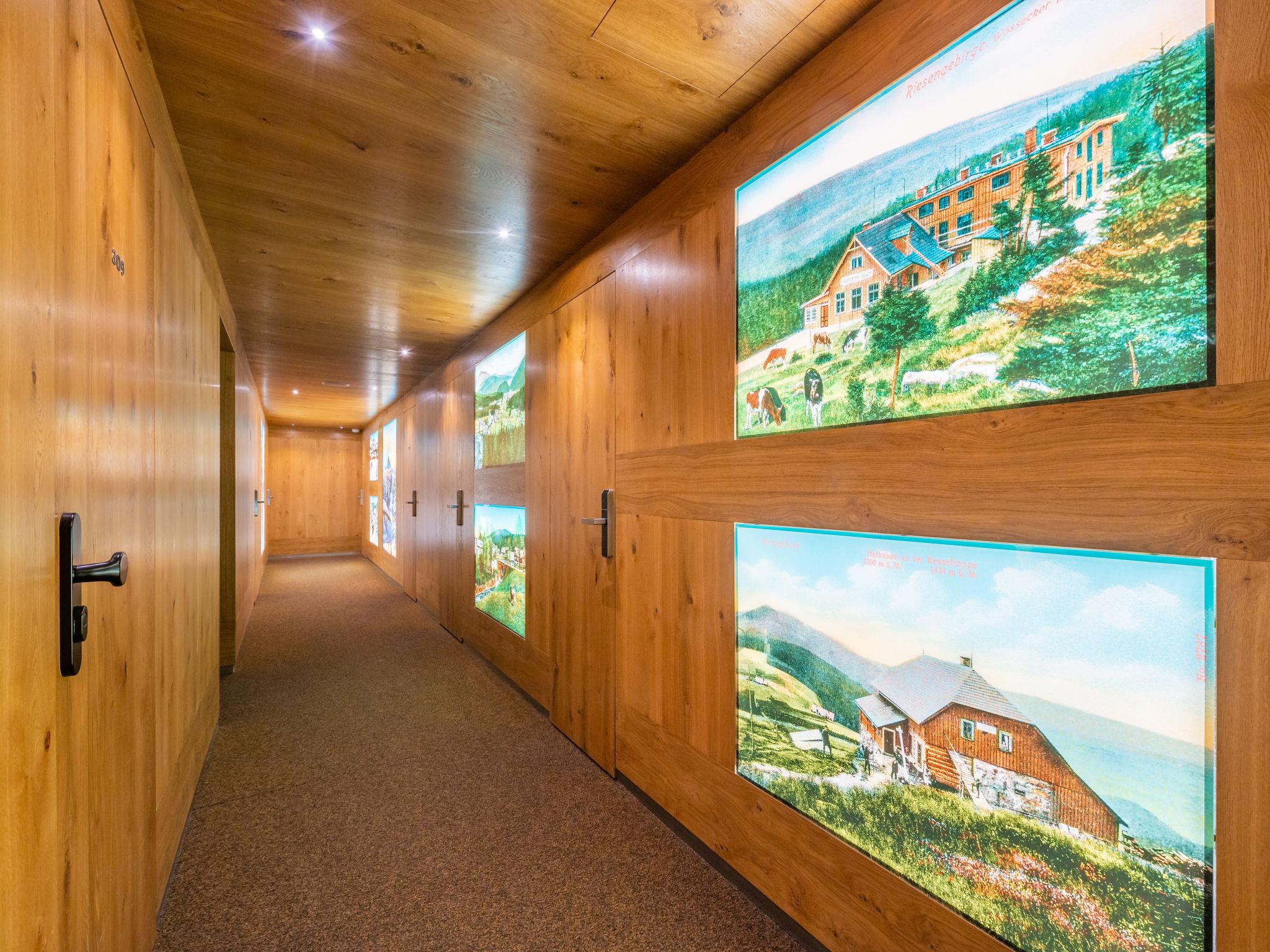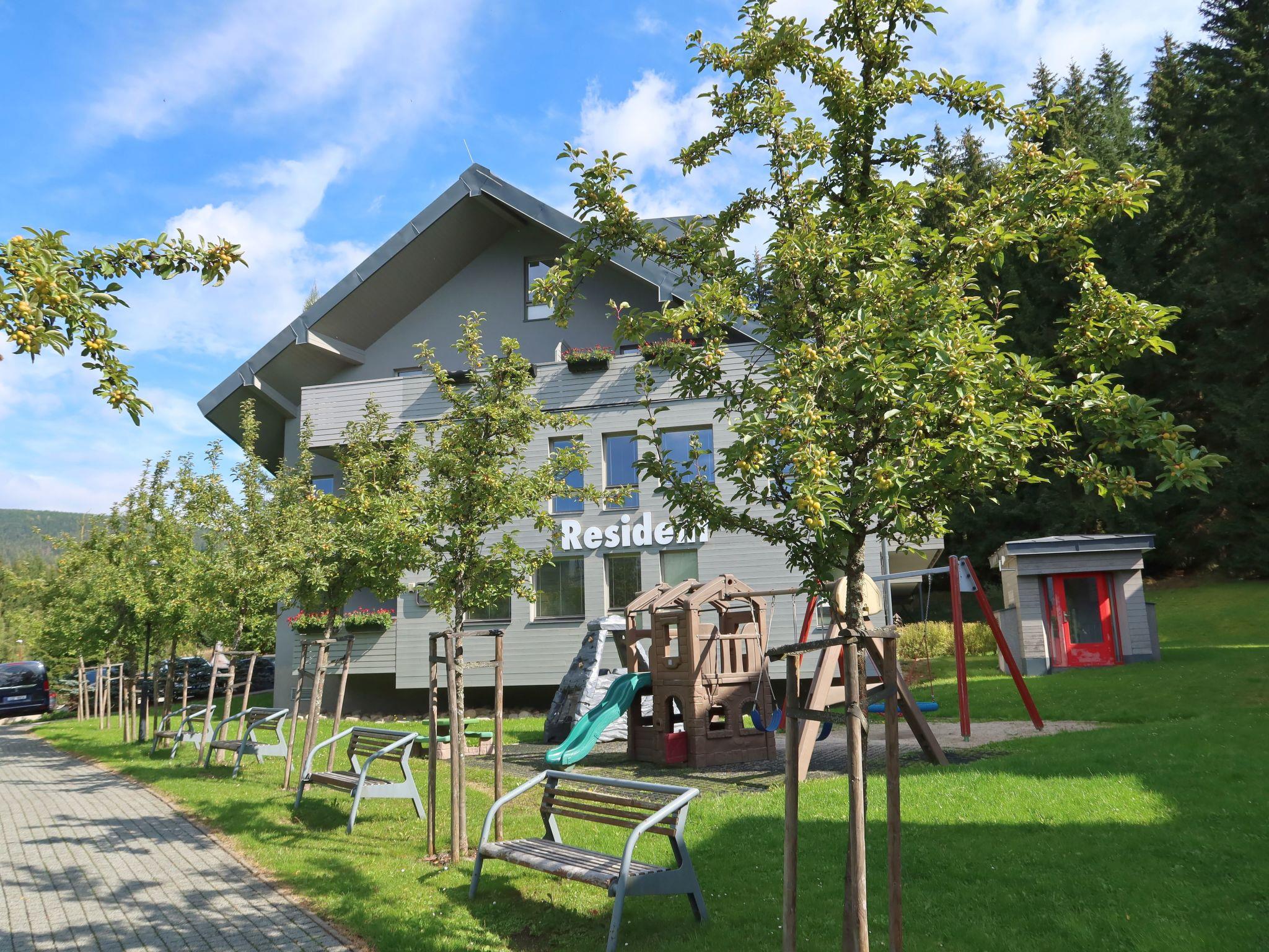 Modern residence "Harrachov Resident C", built in 2013. 5 houses in the residence. 500 m from the centre of Harrachov, in a quiet position, 50 m from the edge of the forest, 700 m from the skiing area. For shared use: property 200 m2. Children's playground (slide, swing). In the house: massage (extra). Lift, central heating system. Breakfast on request (extra). Storeroom available. Parking at the house. Shop 1 km, restaurant 400 m, bus stop "Harrachov, Nový Svet, u Motejlku" 500 m, railway station "Harrachov" 2 km, outdoor swimming pool 2 km. Tennis 2 km, indoor tennis centre 2 km, ski lift 50 m, chair lift 700 m, slopes, ski rental 700 m, ski bus stop 50 m, ski school, children's ski school. Nearby attractions: Bobová dráha 300 m, Mumlavský vodopád 2.5 km, Korenov 8 km, Jizerka 15 km, Jablonec nad Nisou 29 km, Termy Cieplickie (PL) 30 km, Liberec 35 km, Ješted 40 km. Well-known ski regions can easily be reached: Certova hora 700 m, Zákoutí 2 km, Rýžovište 3 km, Príchovice 10 km, Rokytnice nad Jizerou 15 km. Hiking paths: Western City Karpacz(Pl) 40 km, Park miniatury Kowary44km,Karpacz (Pl) 39 km, Giganteria Piechowice(Pl) 23 km. The keys‘ handover takes place by the agency Interhome Harrachov. HARRACHOV CARD guest card included in the price.