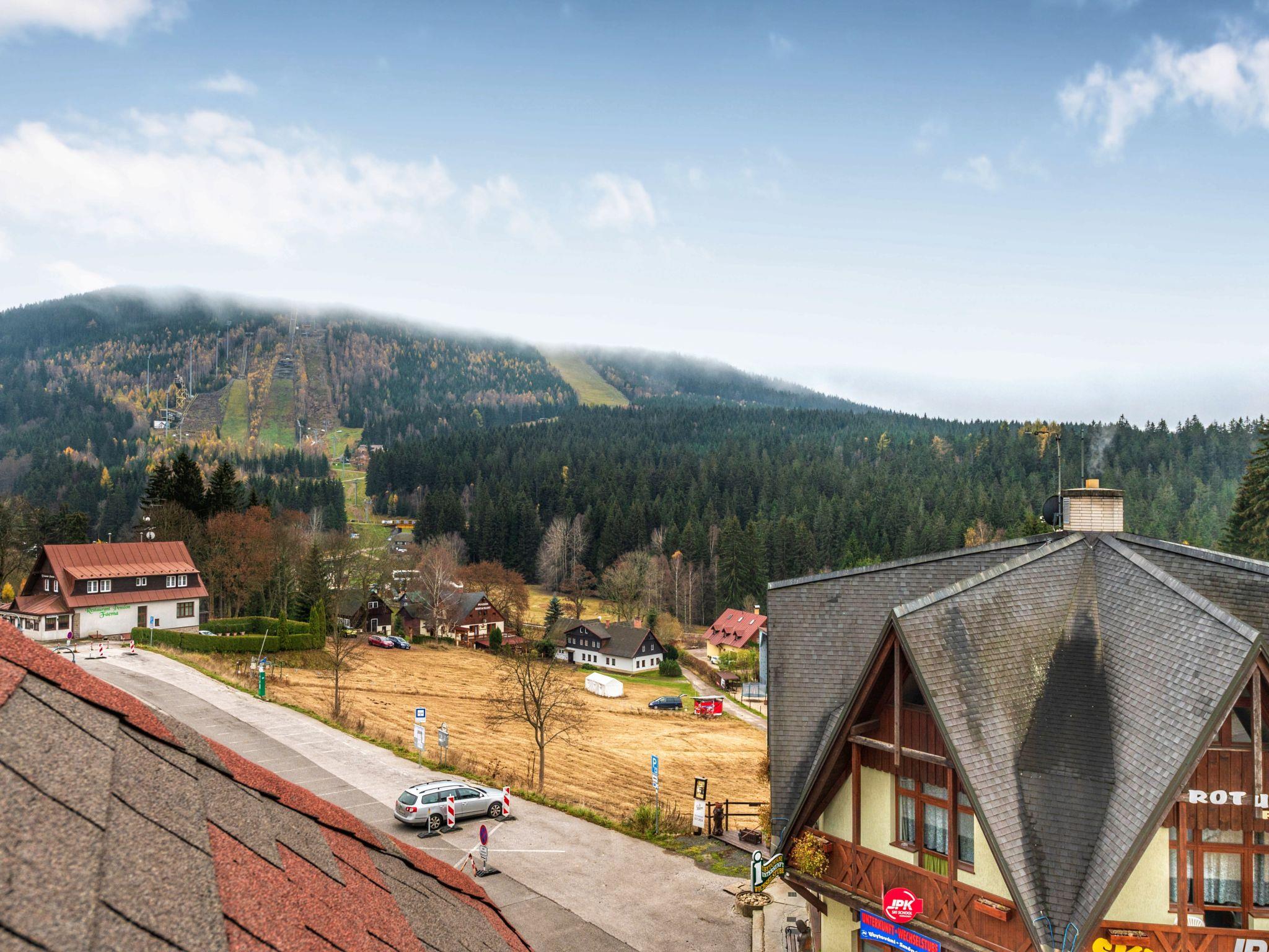 Cosy apartment block, 3 storeys. In the centre of Harrachov, in a busy position, 300 m from the skiing area. In the house: central heating system. Parking at the house. Supermarket, restaurant, café 50 m, bicycle rental 300 m, bus stop "Harrachov, centrum" 100 m, railway station "Harrachov" 3 km, outdoor swimming pool 1 km. Golf course (9 hole) 4 km, tennis 1 km, ski lift, chair lift, slopes 300 m, ski rental 10 m, ski school, cross country ski track, children's playground 200 m. Nearby attractions: Bobová dráha, Muzeum skla 1 km, Skokanské mustky Harrachov 1 km, Mumlavský vodopád 1.5 km, Vosecká bouda, Dvoracky 9 km, Hutský vodopád 9 km, Vodopád Kamienczyka, Szklarki (PL) 12 km. Well-known ski regions can easily be reached: Certova hora 300 m, Zákoutí 1 km, Ryžovište 2 km, Korenov 7 km, Rokytnice nad Jizerou 15 km. Hiking paths: Vodní nádrž Souš,Dinopark(Pl),Termy (Pl) 15 km, Park miniatury Kowary44km,Karpacz (Pl) 39 km, Giganteria Piechowice 23 km. The keys‘ handover takes place by the agency Interhome Harrachov.
