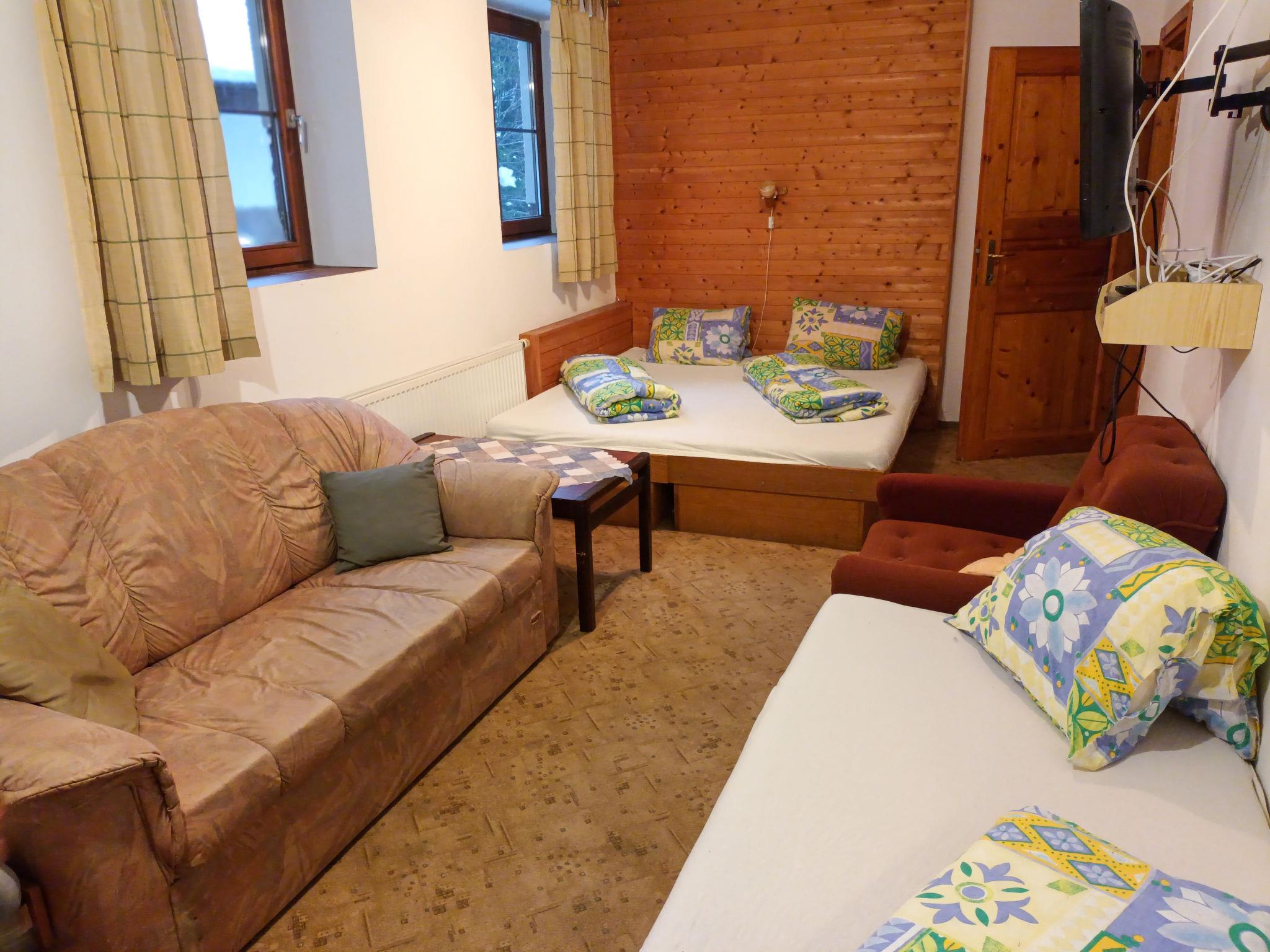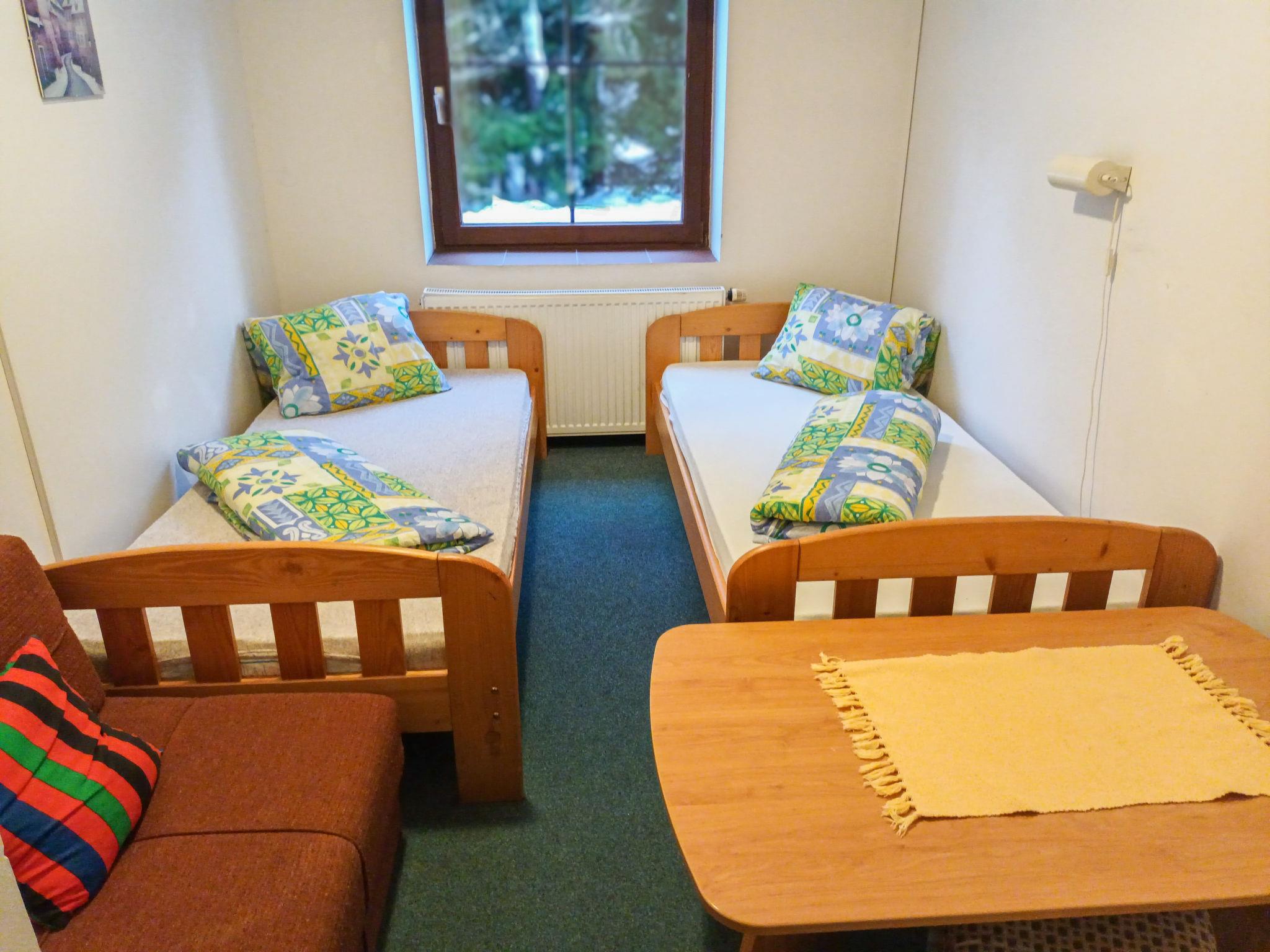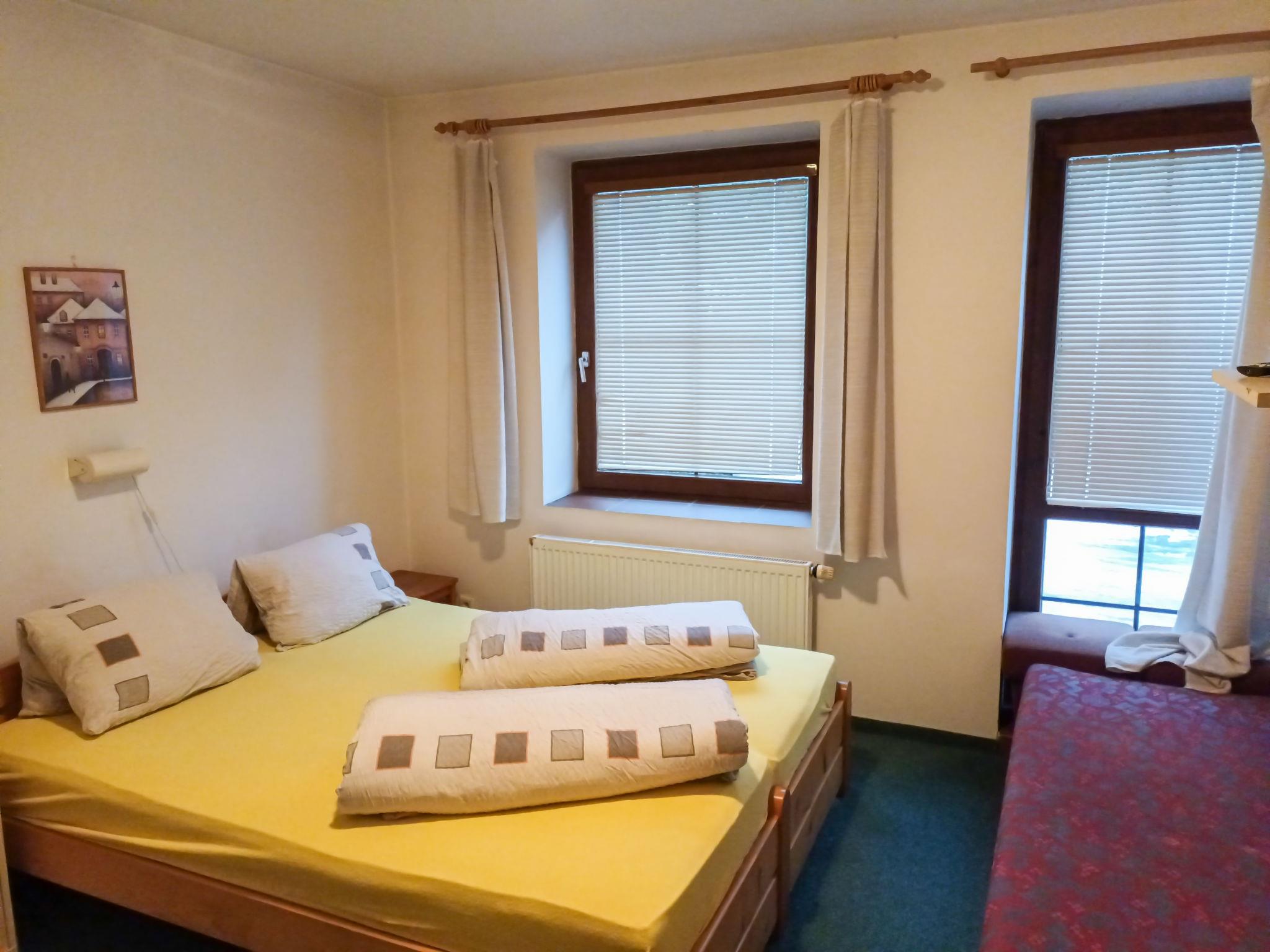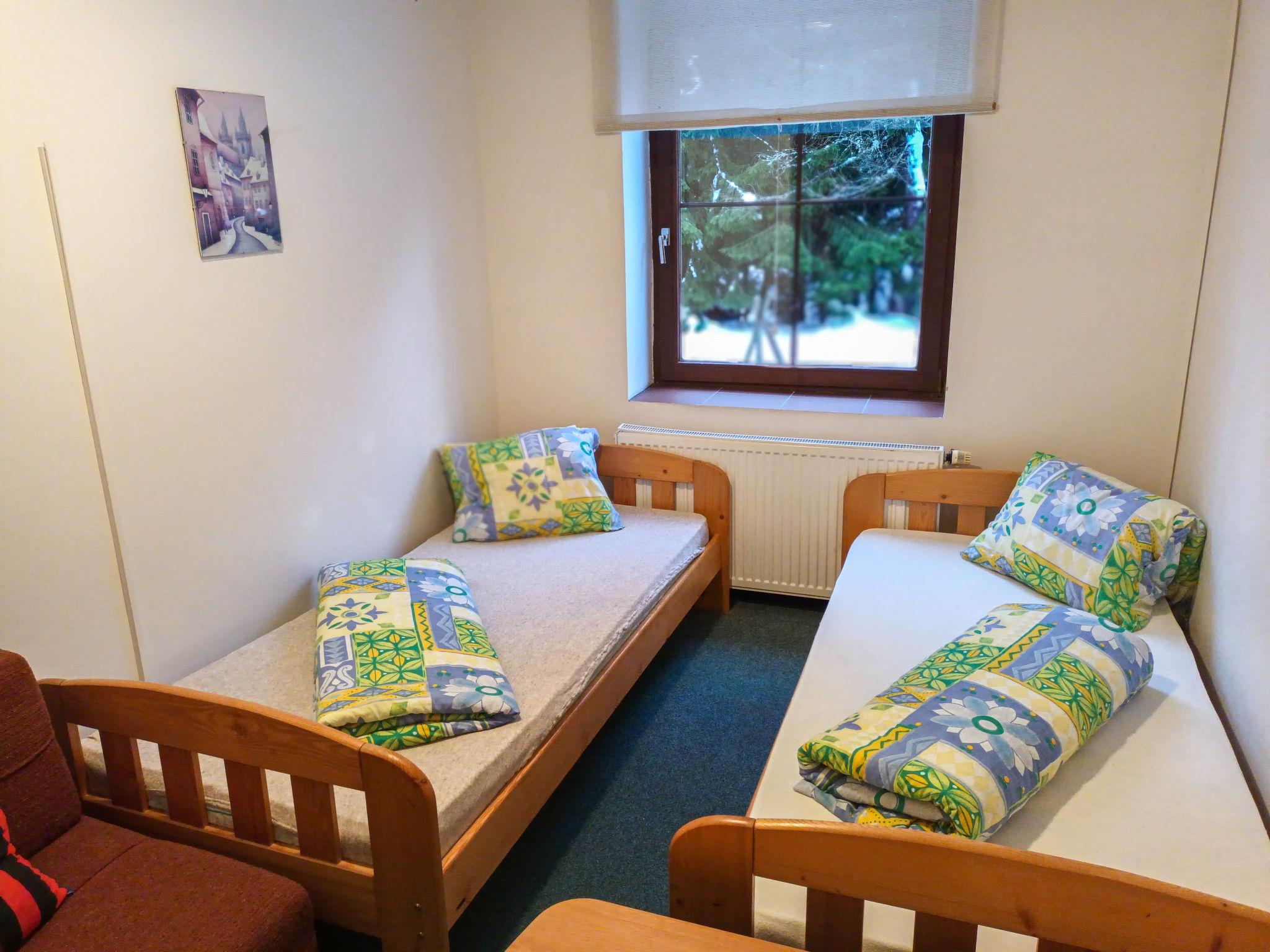Cosy house, 3 storeys. 3 km from the skiing area. For shared use: barbecue, fireplace. Breakfast (extra). Parking (for 6 cars) at the house. Supermarket 1.5 km, restaurant 1 km, bar 1 km, café 1 km, bus stop "Harrachov, centrum" 350 m, railway station "Harrachov" 3 km. Tennis 2 km, minigolf 2 km, ski rental 800 m, ski bus stop 500 m, cross country ski track 3.5 km. Nearby attractions: sklárna Harrachov 1 km, Bobová dráha 1 km, Mumlavské vodopády 4 km, Termy Cieplickie (Pl) 30 km, Skokanské mustky 2.5 km, Šindelka, Ski muzeum 2 km. Well-known ski regions can easily be reached: ski areál Harrachov 1.5 km, Ski Hrebínek 800 m, Ski area Hilbert 1.5 km. Hiking paths: Western City(Pl) 40 km, Karpacz Wang,Park miniatury Kowary (Pl) 44 km, Giganteria Piechowice 23km, Dinopark(Pl) 15 km.