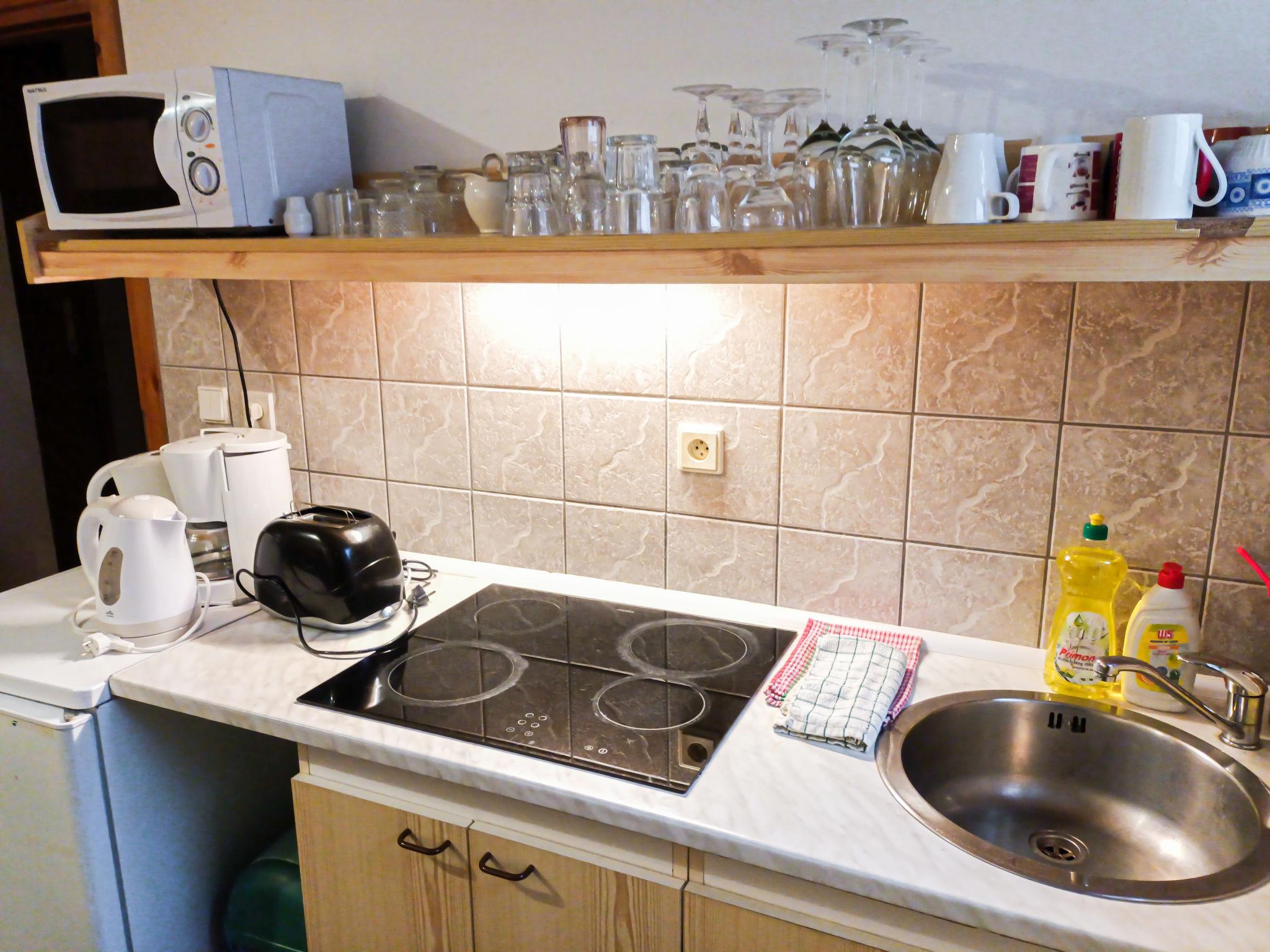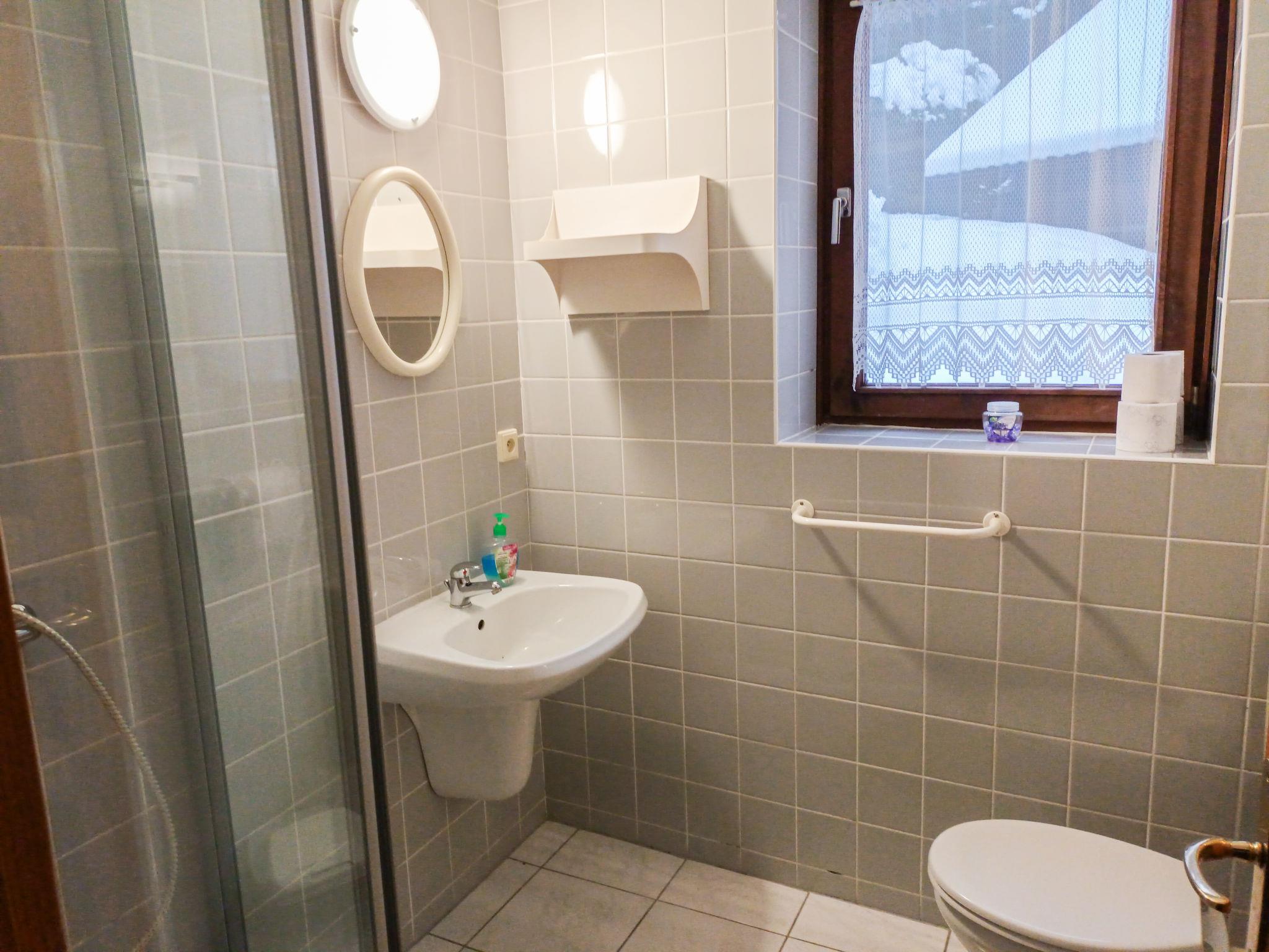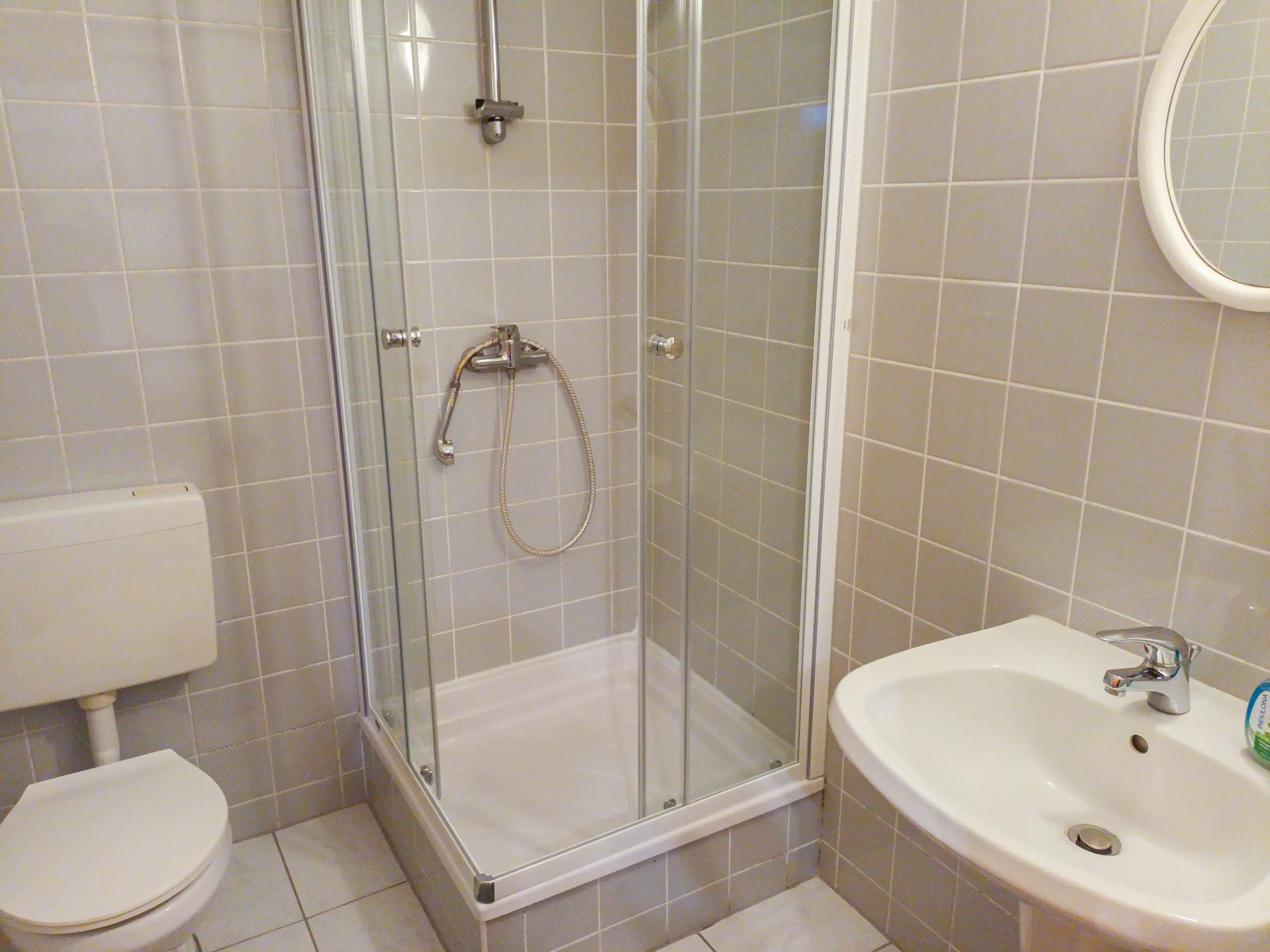 "Spacious Mountain Base", 4-room apartment on the ground floor. 2 rooms, each room with 2 beds and shower/WC. 1 room with 1 bed, 1 double bed and shower/WC. 1 room with 1 bed and 1 double bed. 1 room with 1 double bed and shower/WC. Small kitchen (4 ceramic glass hob hotplates, toaster, kettle, microwave, electric coffee machine) with dining table. Gas heating. Facilities: Internet (WiFi, free). Suitable for families. Maximum 1 pet/ dog allowed.