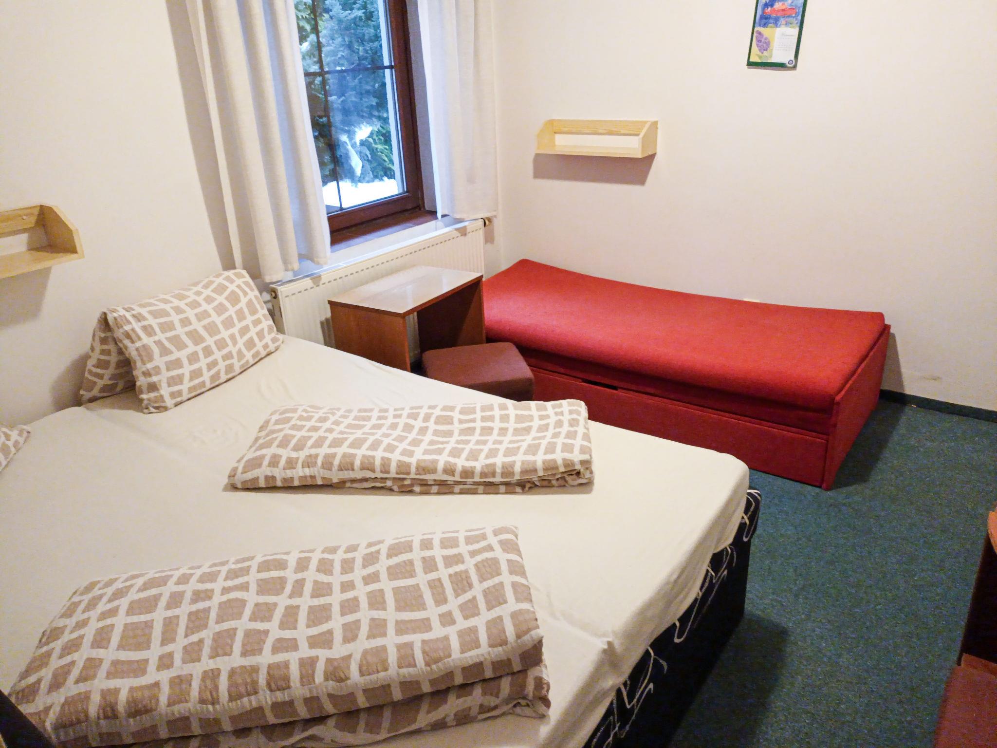 Cosy house, 3 storeys. 3 km from the skiing area. For shared use: barbecue, fireplace. Breakfast (extra). Parking (for 6 cars) at the house. Supermarket 1.5 km, restaurant 1 km, bar 1 km, café 1 km, bus stop "Harrachov, centrum" 350 m, railway station "Harrachov" 3 km. Tennis 2 km, minigolf 2 km, ski rental 800 m, ski bus stop 500 m, cross country ski track 3.5 km. Nearby attractions: sklárna Harrachov 1 km, Bobová dráha 1 km, Mumlavské vodopády 4 km, Termy Cieplickie (Pl) 30 km, Skokanské mustky 2.5 km, Šindelka, Ski muzeum 2 km. Well-known ski regions can easily be reached: ski areál Harrachov 1.5 km, Ski Hrebínek 800 m, Ski area Hilbert 1.5 km. Hiking paths: Western City(Pl) 40 km, Karpacz Wang,Park miniatury Kowary (Pl) 44 km, Giganteria Piechowice 23km, Dinopark(Pl) 15 km.