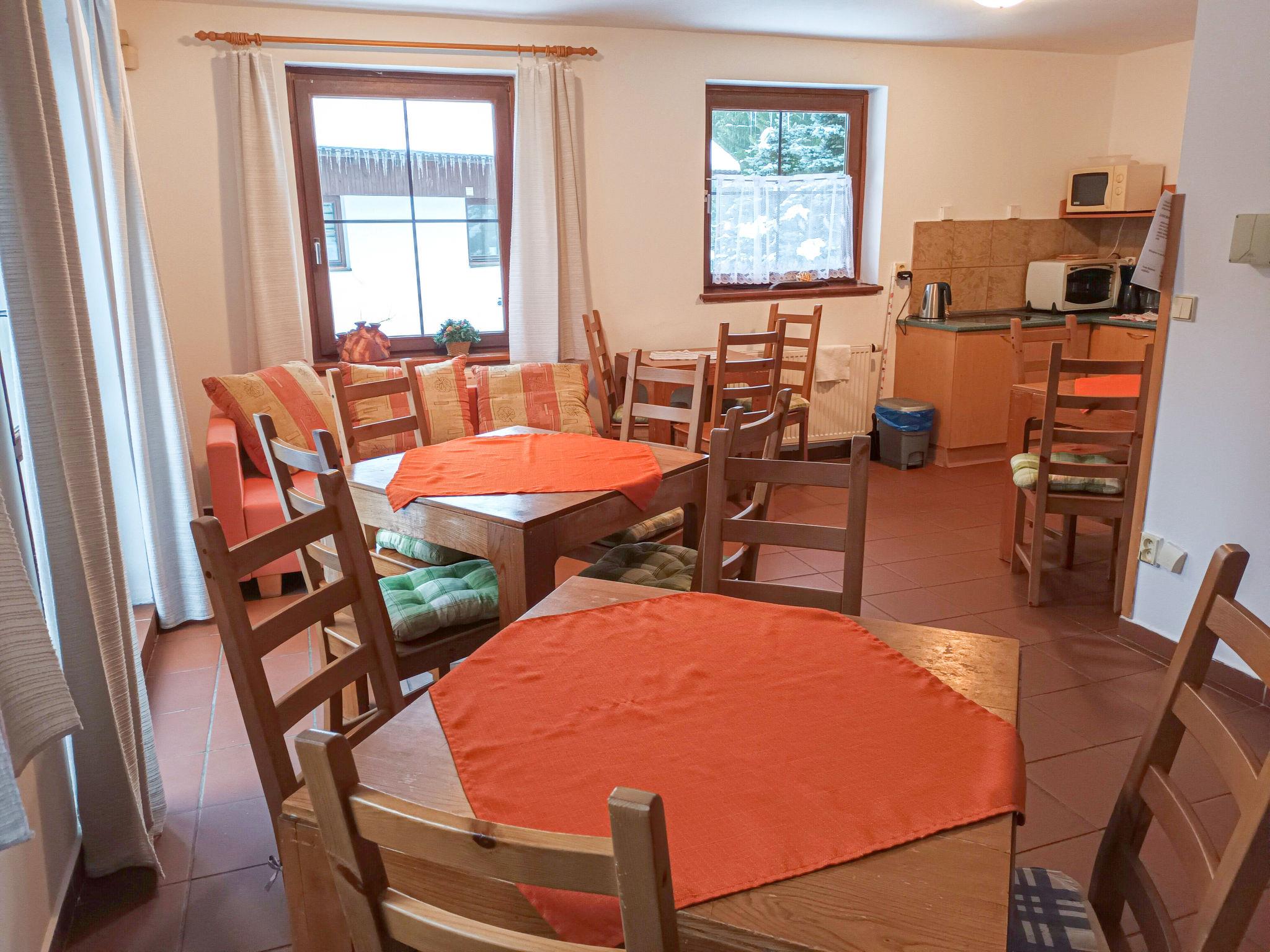 Cosy house, 3 storeys. 3 km from the skiing area. For shared use: barbecue, fireplace. Breakfast (extra). Parking (for 6 cars) at the house. Supermarket 1.5 km, restaurant 1 km, bar 1 km, café 1 km, bus stop "Harrachov, centrum" 350 m, railway station "Harrachov" 3 km. Tennis 2 km, minigolf 2 km, ski rental 800 m, ski bus stop 500 m, cross country ski track 3.5 km. Nearby attractions: sklárna Harrachov 1 km, Bobová dráha 1 km, Mumlavské vodopády 4 km, Termy Cieplickie (Pl) 30 km, Skokanské mustky 2.5 km, Šindelka, Ski muzeum 2 km. Well-known ski regions can easily be reached: ski areál Harrachov 1.5 km, Ski Hrebínek 800 m, Ski area Hilbert 1.5 km. Hiking paths: Western City(Pl) 40 km, Karpacz Wang,Park miniatury Kowary (Pl) 44 km, Giganteria Piechowice 23km, Dinopark(Pl) 15 km.