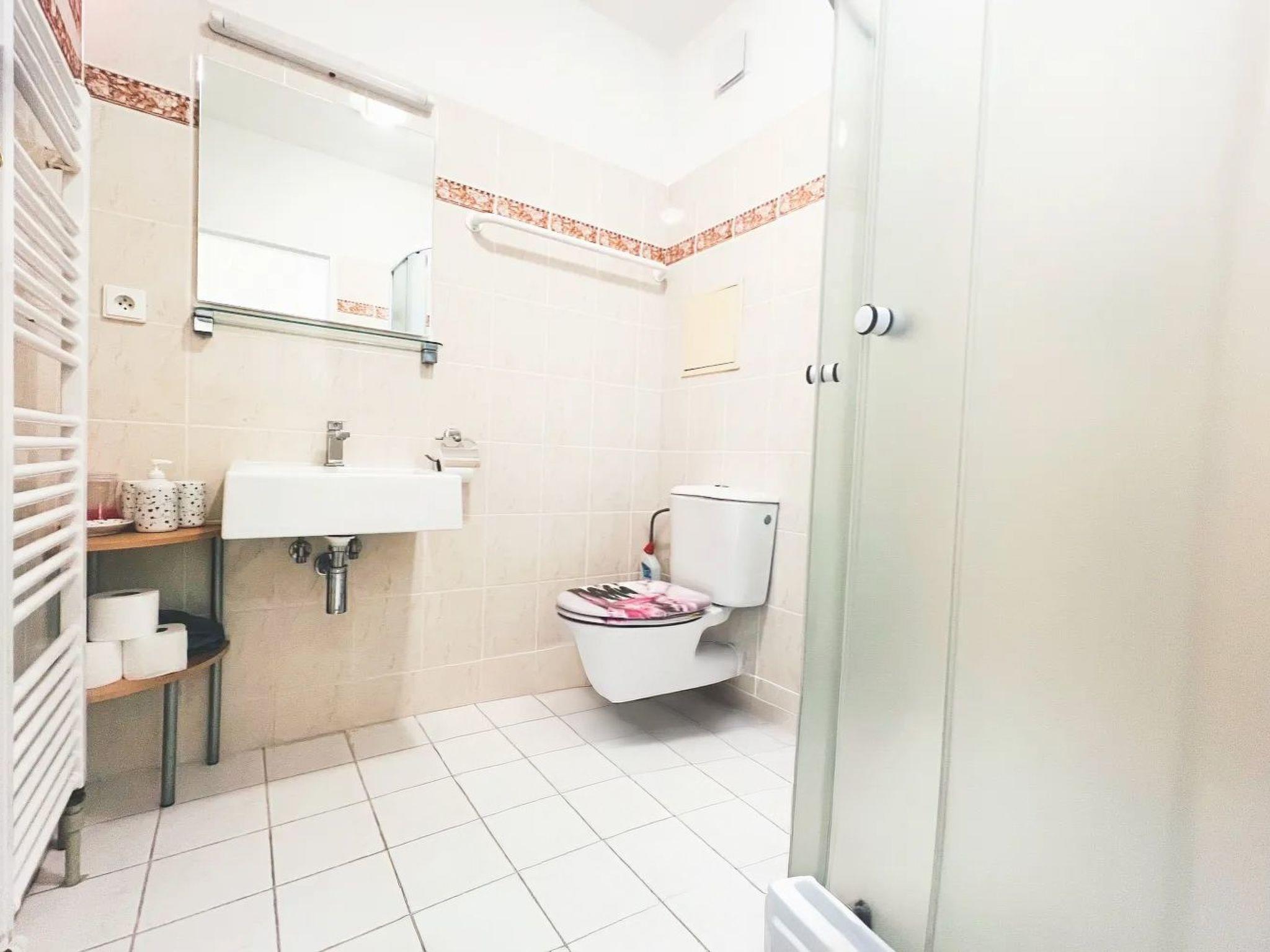 The studio apartment is located on the first floor of a four-story, modern apartment building, recently built in 2000. It offers a spacious living and sleeping area, a separate, fully equipped kitchen, and a bathroom. The living area is furnished with a comfortable sofa, a 200 cm x 200 cm double bed, a satellite TV, a DVD and CD player, a radio, and a wooden dining table with four chairs. A safe is also available for storing your valuables (available for a fee). The sofa converts into another double bed, also measuring 200 cm x 200 cm. Adjacent to the kitchen is a double hotplate, a refrigerator with a freezer compartment, a microwave, a kettle, a toaster, and a coffee maker. The bathroom features a modern shower cubicle, a vanity with a wall mirror, a hairdryer, and a toilet. A vacuum cleaner is available, and plenty of bed linen and towels are provided.