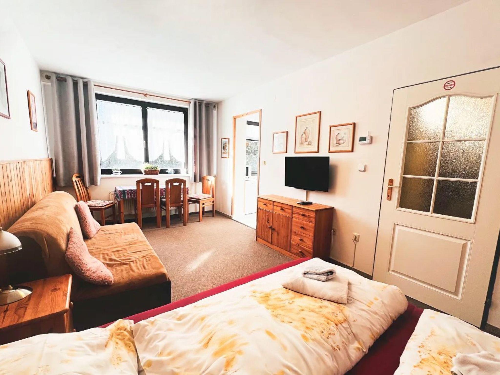 Your studio apartment is just under 500 meters from the ski slope. The 4-seater chairlift up Certova Hill is open year-round: ideal for mountain bike tours in summer and for ski enthusiasts in winter. The village center, with its shops and excellent dining options, is also only about 300 meters away. The nearest supermarket is just 100 meters away. There's a golf course 3 km away, and at the wellness hotel, located about 1 km away, you can use the diverse facilities for a fee (you'll receive a 20% discount if you stay in the studio apartment): swimming pool, sauna, fitness center, hair and beauty salon, massage, ski equipment and mountain bike rental, and a ski school for children. Regular connections to Cerna Hora Mountain run from the bus stop right in front of the house.