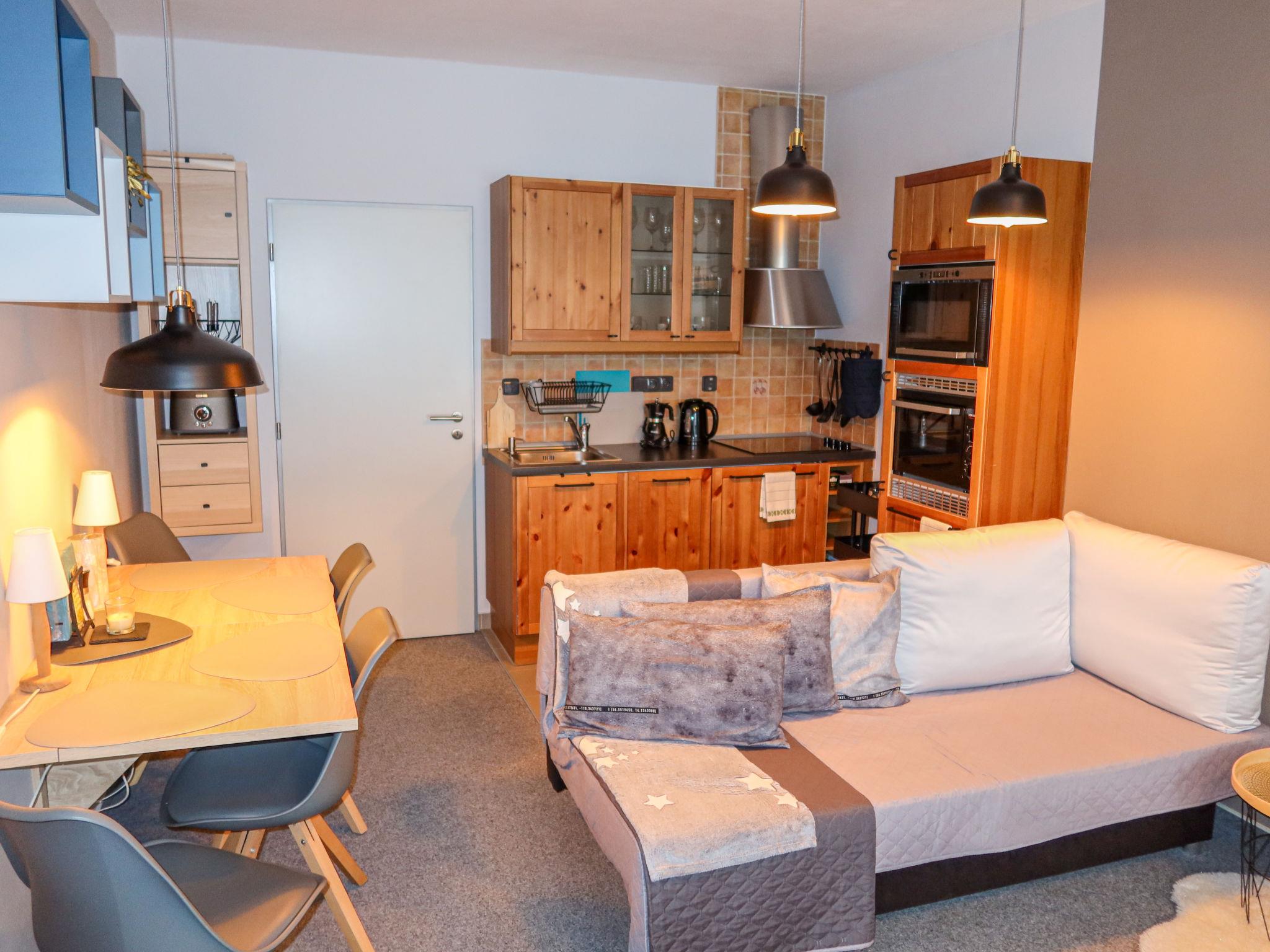 Harrachov: Modern, cosy apartment block "Certovka", 5 storeys. In the centre of Harrachov, 200 m from the skiing area. In the house: lift, central heating system. Single garage. Supermarket 500 m, restaurant, bar, café 80 m, bus stop "Harrachov,Centrum" 100 m, railway station "Harrachov" 4 km. Golf course (9 hole) 4 km, cable car, ski rental 200 m, ski bus stop 100 m, ski school, children's playground 200 m. Nearby attractions: Ski muzeum, skokanské mustky, Šindelka 1.2 km, Rybárna 2 km, Hornické muzeum 2.5 km, Mumlavské vodopády 3 km, Dvoracky 10 km, Vosecká bouda 12 km, pramen Labe 13 km, Dinopark (PL) 14 km, Termy Cieplickie (PL) 30 km. Well-known ski regions can easily be reached: Harrachov 500 m, Hilbert 300 m, Rokytnice nad/Jiz 20 km. Hiking paths: Western City Karpacz(PL) 40 km, Park miniatury Kowary, Karpacz (PL) 40 km, Giganteria Piechowice(PL) 23 km. The keys‘ handover takes place by the agency Interhome Harrachov.