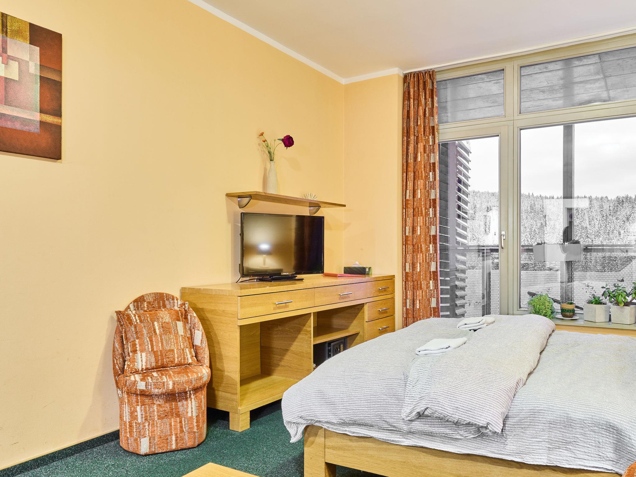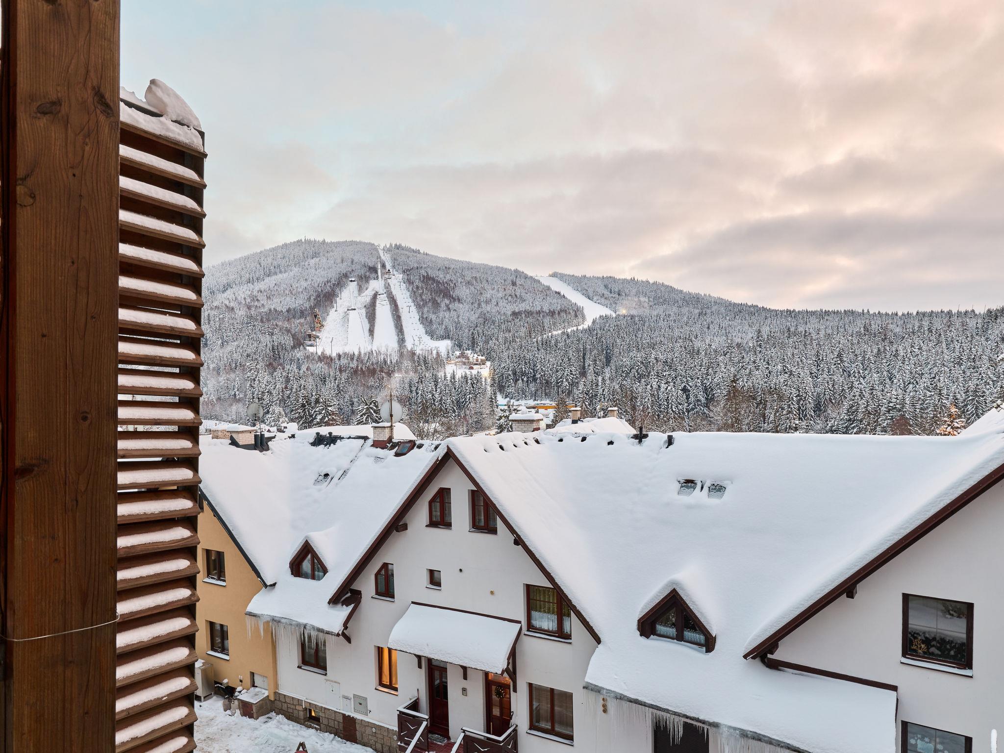 Harrachov: Modern, cosy apartment block "Certovka", 5 storeys. In the centre of Harrachov, 200 m from the skiing area. In the house: lift, central heating system. Single garage. Supermarket 500 m, restaurant, bar, café 80 m, bus stop "Harrachov,Centrum" 100 m, railway station "Harrachov" 4 km. Golf course (9 hole) 4 km, cable car, ski rental 200 m, ski bus stop 100 m, ski school, children's playground 200 m. Nearby attractions: Ski muzeum, skokanské mustky, Šindelka 1.2 km, Rybárna 2 km, Hornické muzeum 2.5 km, Mumlavské vodopády 3 km, Dvoracky 10 km, Vosecká bouda 12 km, pramen Labe 13 km, Dinopark (PL) 14 km, Termy Cieplickie (PL) 30 km. Well-known ski regions can easily be reached: Harrachov 500 m, Hilbert 300 m, Rokytnice nad/Jiz 20 km. Hiking paths: Western City Karpacz(PL) 40 km, Park miniatury Kowary, Karpacz (PL) 40 km, Giganteria Piechowice(PL) 23 km. The keys‘ handover takes place by the agency Interhome Harrachov.