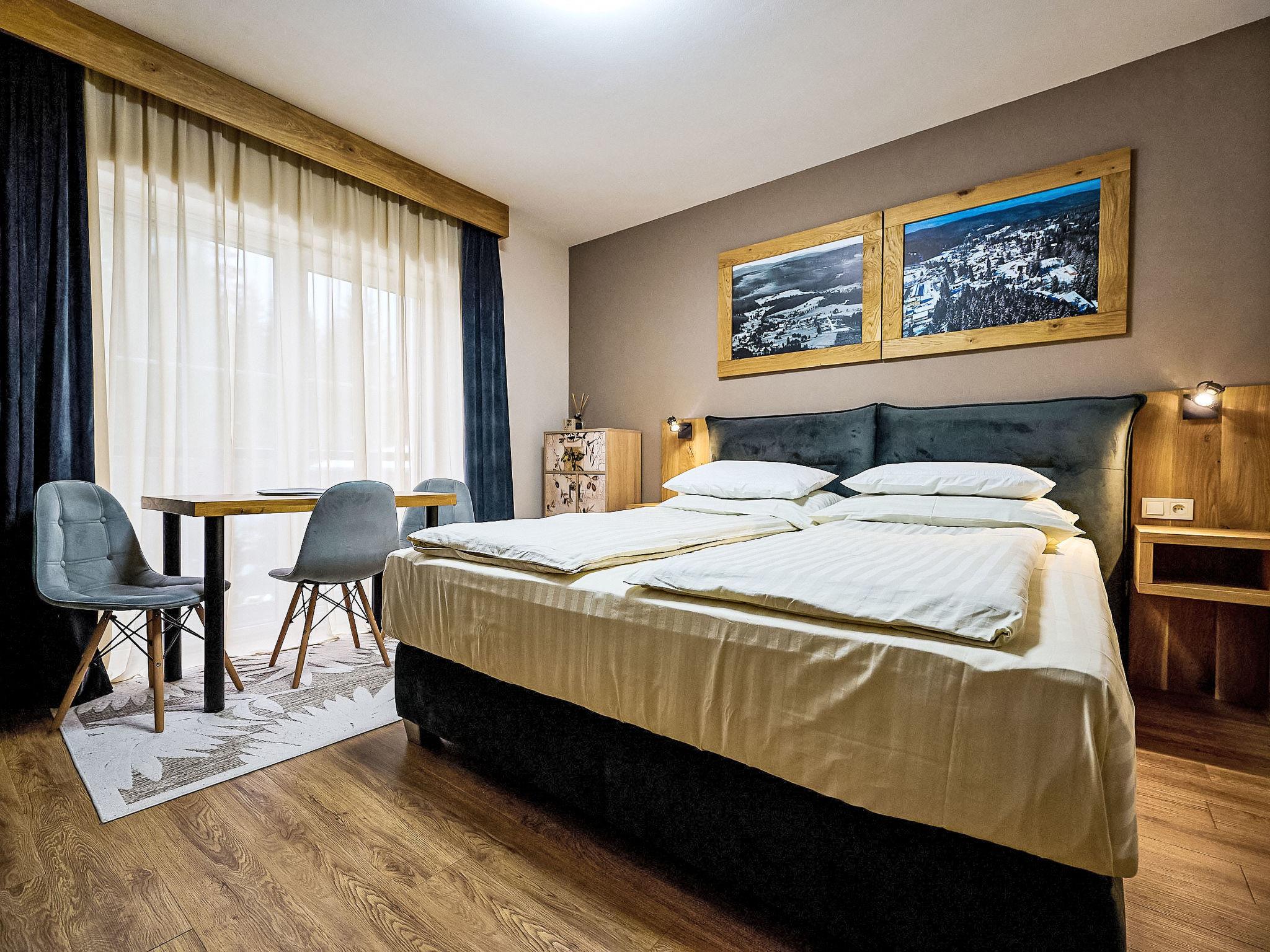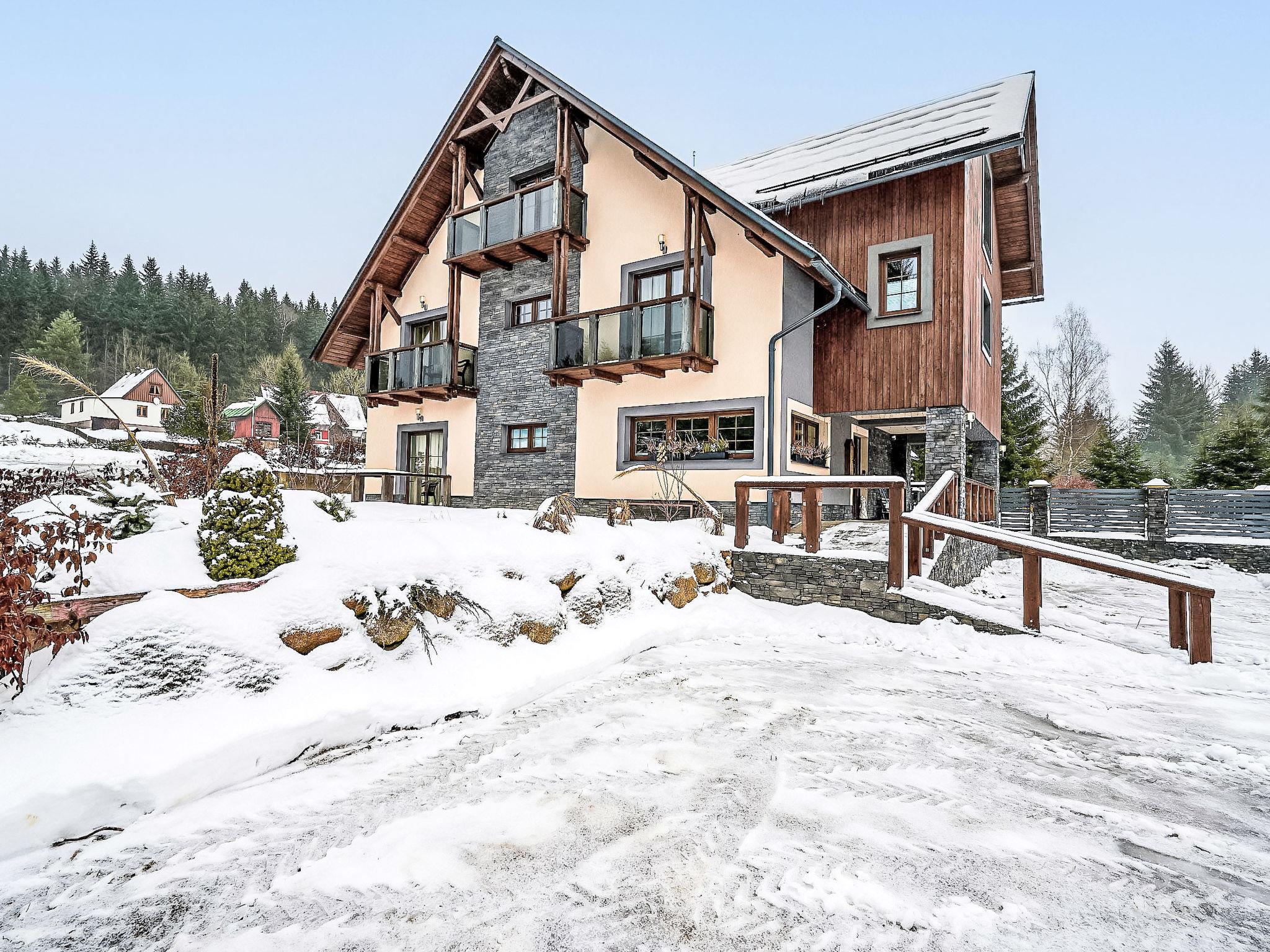 Very beautiful, cosy apartment house "Anenské údolí", 3 storeys, built in 2023. 6 apartments in the property. In a quiet, sunny position, 100 m from the edge of the forest, 800 m from the skiing area, 150 m from the stream, in a cul-de-sac. Private: terrace, garden furniture, barbecue, fireplace. In the house: lounge, WiFi, central heating system. Parking (for 6 cars) at the house. Supermarket 1 km, restaurant, café 700 m, bicycle rental 1 km, bus stop "Harrachov centrum" 1 km, railway station "Harrachov" 3 km, outdoor swimming pool 1.6 km, indoor swimming pool 1.7 km. Golf course (9 hole) 3 km, tennis 2 km, indoor tennis centre 2 km, minigolf 1.5 km, walking paths from the house 10 m, cycle lane 1 km, chair lift, slopes, ski rental, ski school, children's ski school 800 m, cross country ski track, children's playground 600 m. Nearby attractions: bobová dráha 500 m, Muzeum skla, Hornické muzeum, Šindelka 2 km, Mumlava vodopád 3 km, Skokanské mustky 1 km, Jilemnice, Jablonec nad Nisou 25 km, Liberec - zoo, aquapark, Ješted 40 km. Well-known ski regions can easily be reached: Harrachov 800 m, Príchovice 9 km, Paseky na Jizerou, Rokytnice nad Jizerou 15 km. Well-known lakes can easily be reached: Vodní nádrž Souš 12 km. Hiking paths: Anenské údolí, Harrachova cesta, Krakonošova cesta, Certova hora, Bežecký lyžarský areál Jakuszyce 5 km. The property consists of 6 apartments.