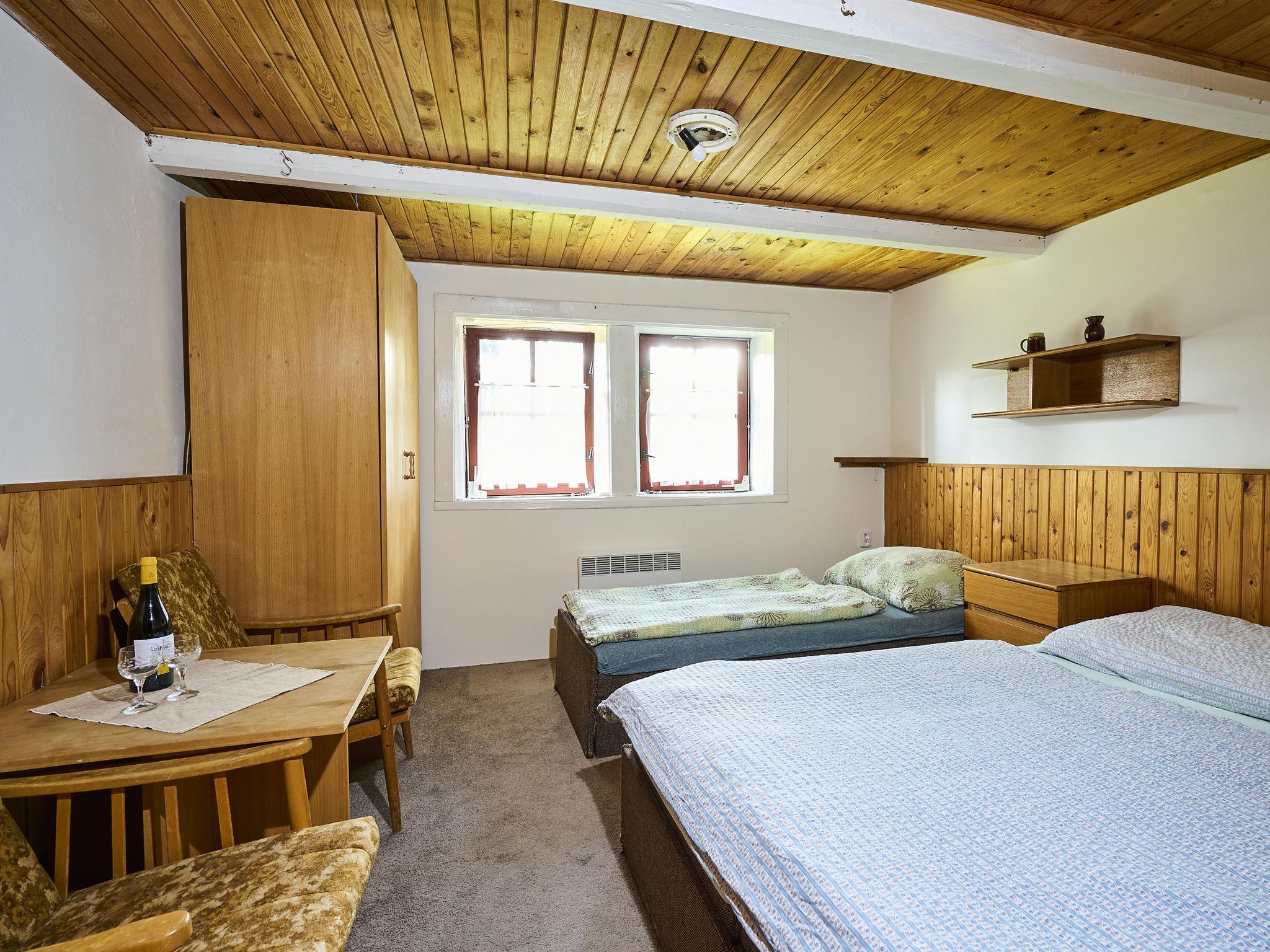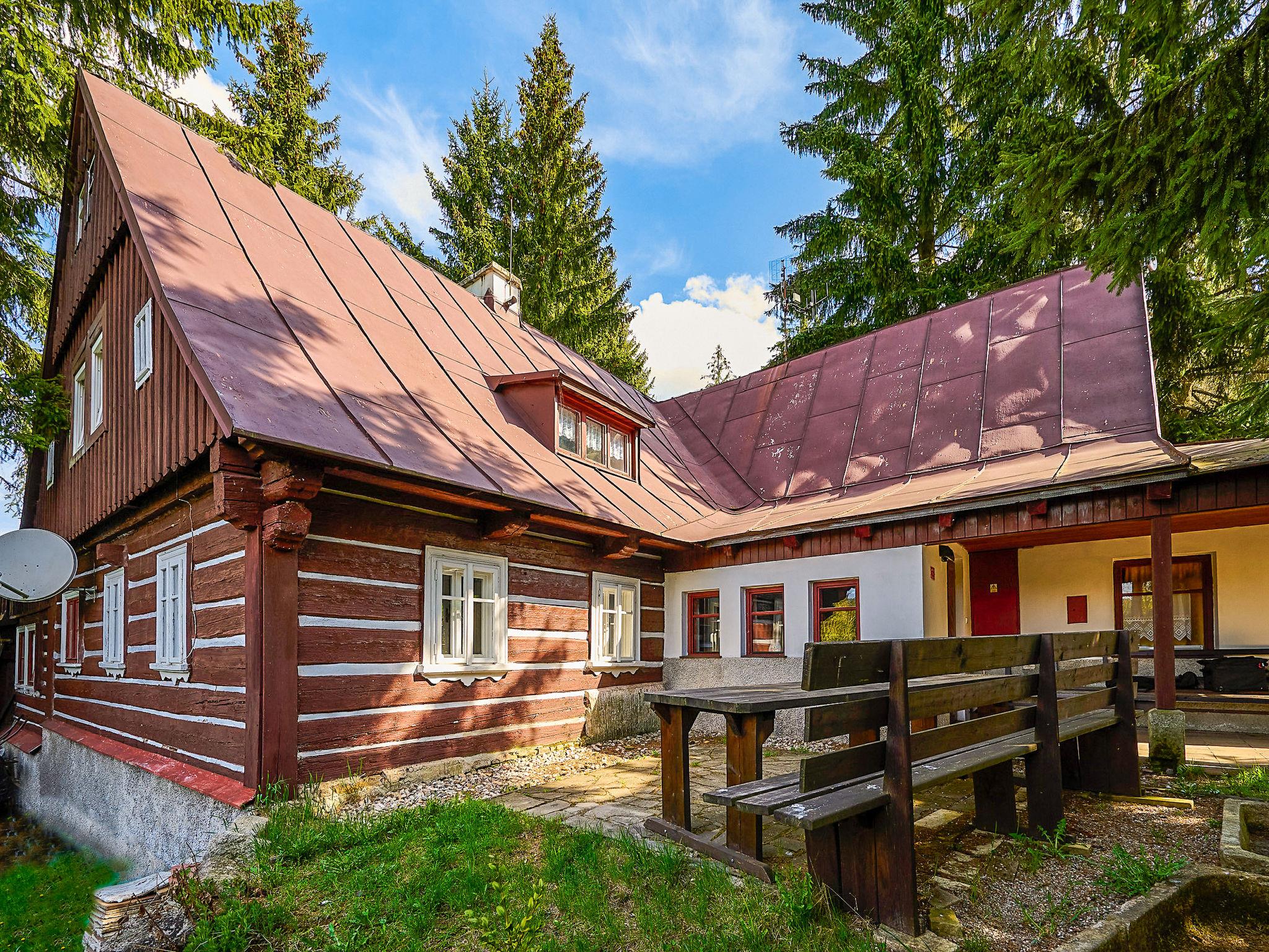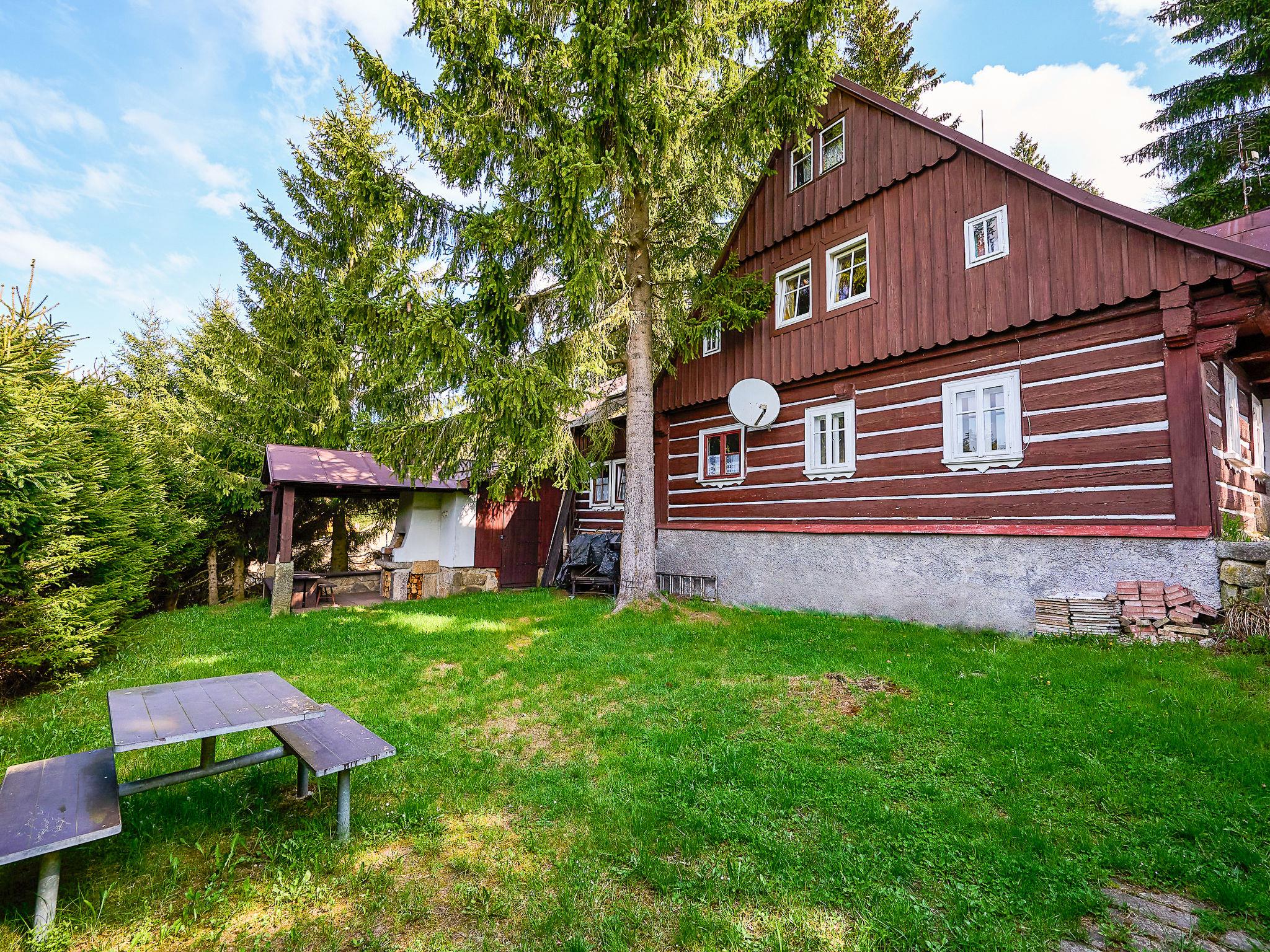 "rustico" cottage "Mountain Serenity & Sauna", detached, surrounded by trees. In a secluded, quiet position, 2 km from the skiing area. For shared use: natural garden. Terrace, garden furniture, barbecue, fireplace. In the house: sauna. (extra). Breakfast (extra). Parking at the house. Supermarket 1 km, restaurant 1 km, bakery 800 m, café 1 km, bus stop "Harrachov sklárna" 800 m, railway station "Harrachov" 3 km. Tennis 2.3 km, ski lift 2 km, ski rental, ski school 800 m, cross country ski track 100 m. Nearby attractions: Mumlavské vodopády 4 km, Skokanské mustky 3.5 km, Sklárna Novosad a syn 800 m, Ski muzeum 3 km, Šindelka lesnicko-myslivecká expozice 3 km, Kaplicka sv. Alžbety se skleneným zvonem 800 m. Well-known ski regions can easily be reached: Harrachov 2.5 km, Hilbert 1.5 km, U Beranu 1 km. Well-known lakes can easily be reached: Hutský rybník 500 m, Harrachovské rybnícky 1 km. Hiking paths: Dvoracky 10 km, Vosecká bouda 12 km, Pramen Labe 14 km.