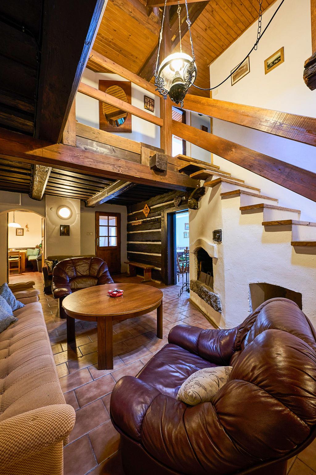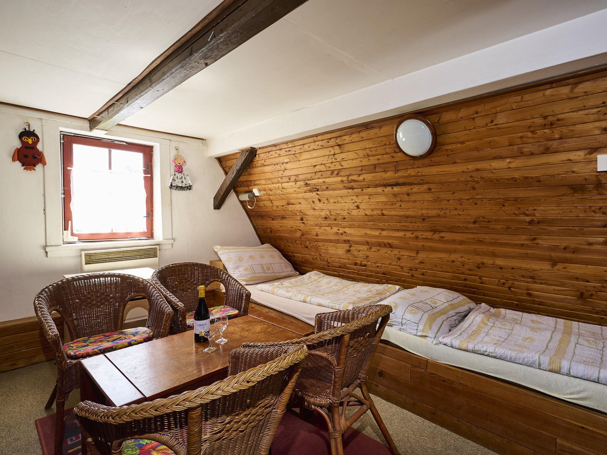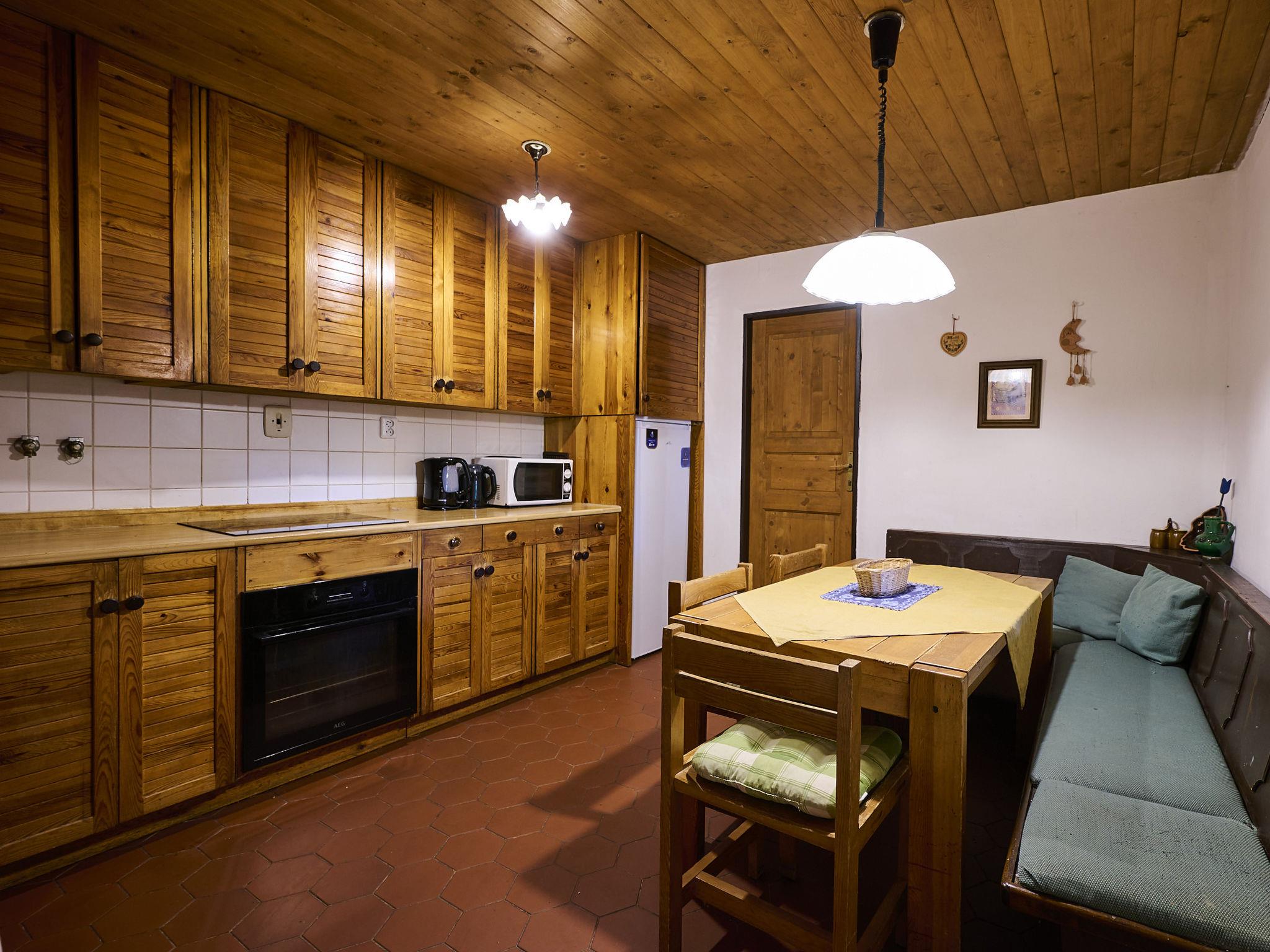 "rustico" cottage "Mountain Serenity & Sauna", detached, surrounded by trees. In a secluded, quiet position, 2 km from the skiing area. For shared use: natural garden. Terrace, garden furniture, barbecue, fireplace. In the house: sauna. (extra). Breakfast (extra). Parking at the house. Supermarket 1 km, restaurant 1 km, bakery 800 m, café 1 km, bus stop "Harrachov sklárna" 800 m, railway station "Harrachov" 3 km. Tennis 2.3 km, ski lift 2 km, ski rental, ski school 800 m, cross country ski track 100 m. Nearby attractions: Mumlavské vodopády 4 km, Skokanské mustky 3.5 km, Sklárna Novosad a syn 800 m, Ski muzeum 3 km, Šindelka lesnicko-myslivecká expozice 3 km, Kaplicka sv. Alžbety se skleneným zvonem 800 m. Well-known ski regions can easily be reached: Harrachov 2.5 km, Hilbert 1.5 km, U Beranu 1 km. Well-known lakes can easily be reached: Hutský rybník 500 m, Harrachovské rybnícky 1 km. Hiking paths: Dvoracky 10 km, Vosecká bouda 12 km, Pramen Labe 14 km.