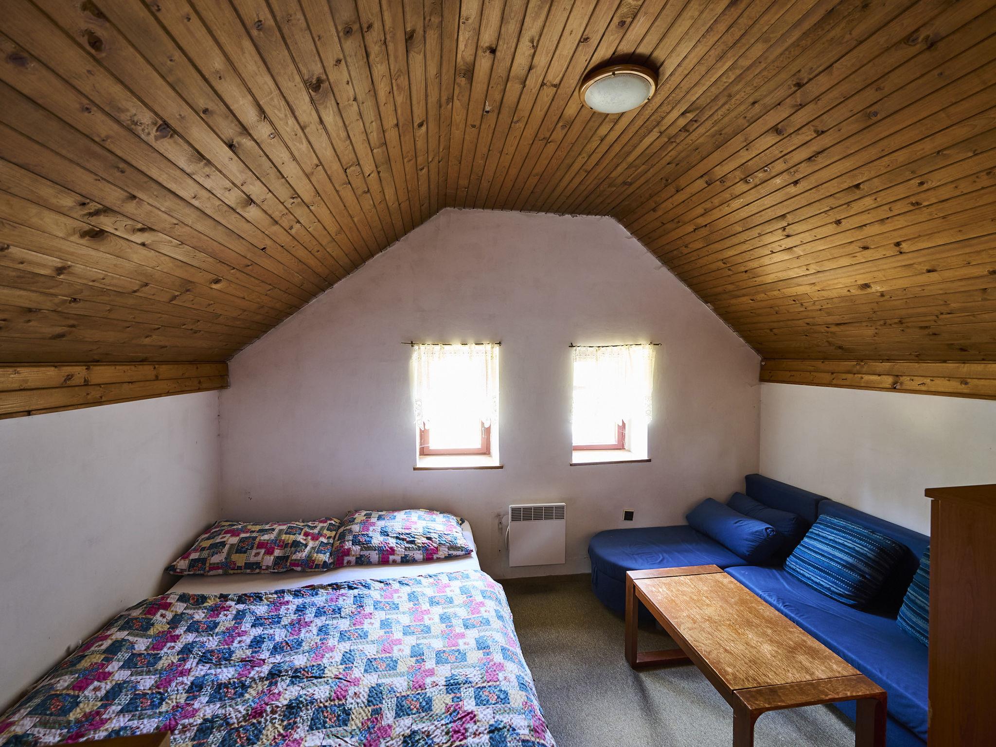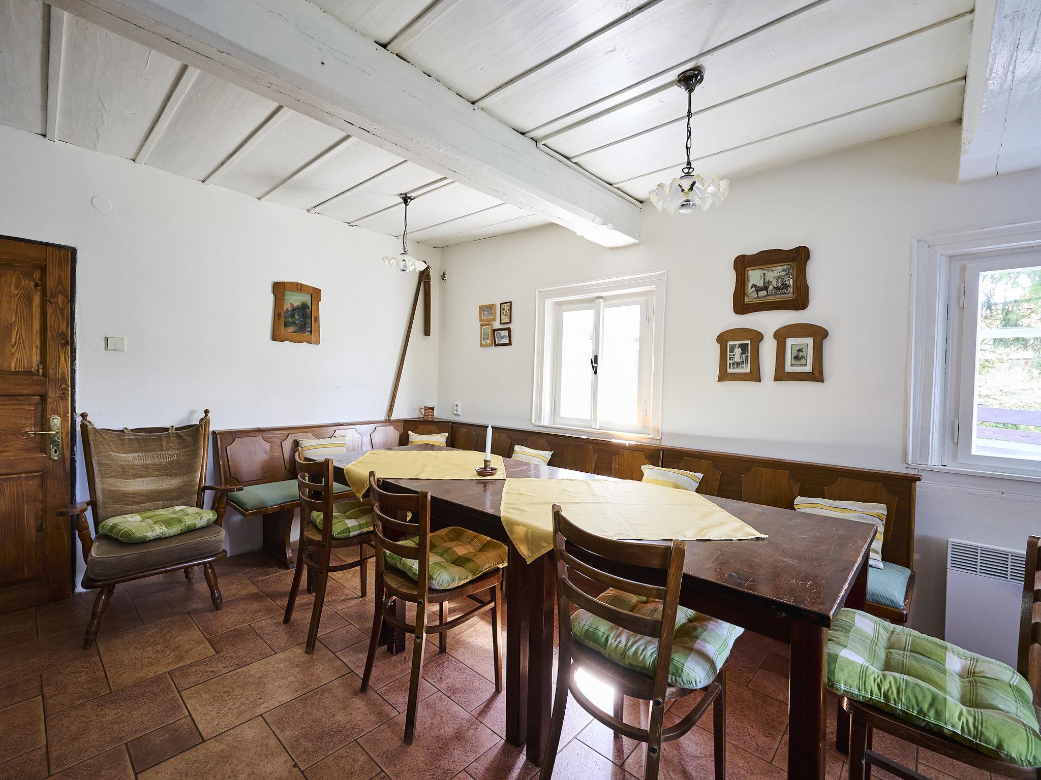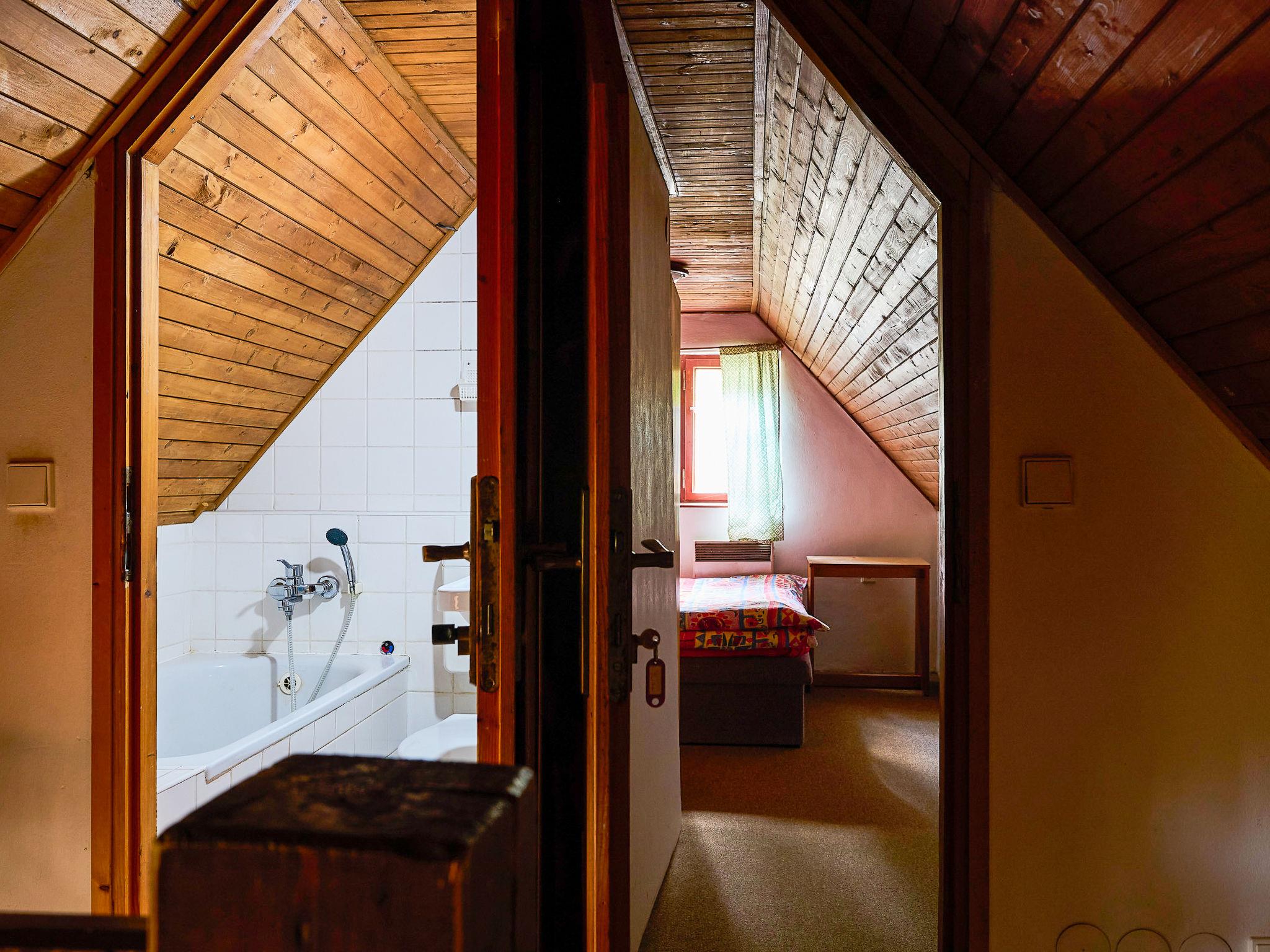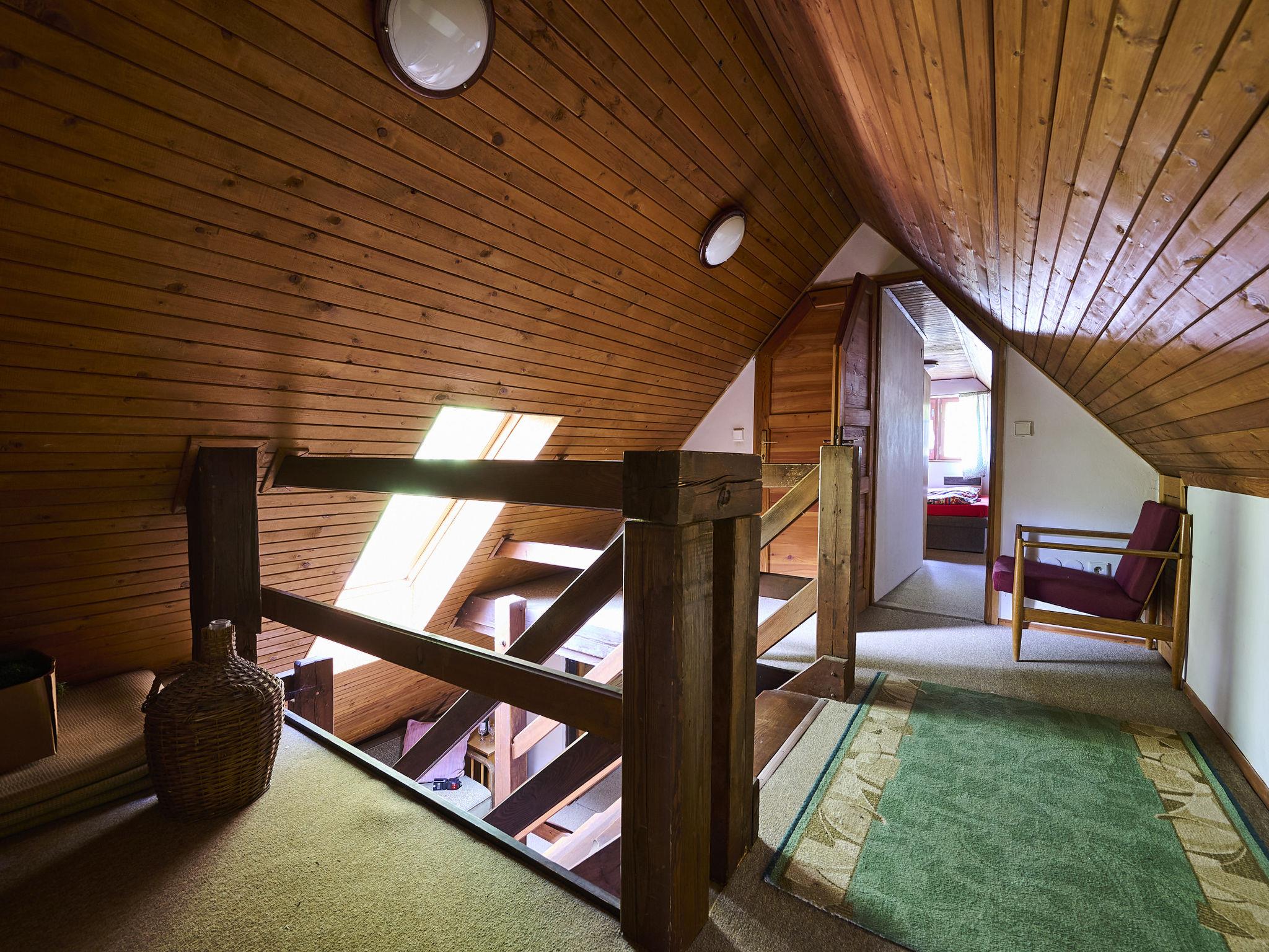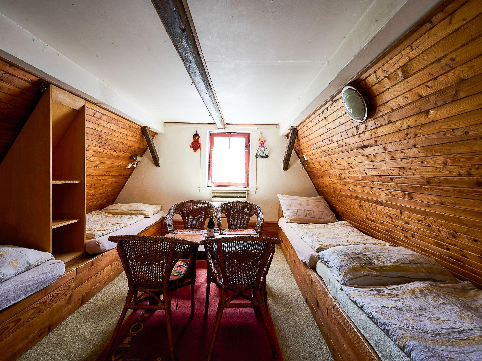 10-room cottage. With veranda. Entrance hall with 2 sofabeds and open-hearth fireplace. Dining room with satellite TV. Kitchen (oven, 4 ceramic glass hob hotplates, toaster, kettle, microwave, electric coffee machine) with dining table. Sep. WC, Sauna. Electric heating, boiler. On the lower ground floor: 2 rooms, each room with 2 double beds and shower/WC. Upper floor: with sloping ceilings. 1 room with 4 beds, shower/WC and electric heating. 3 rooms, each room with 1 bed, 1 double bed, shower/WC and electric heating. 1 room with 6 beds, 2 double sofabeds, shower/WC and electric heating. 3nd upper floor: (steep stair), 1 room with 1 double bed and electric heating. 1 room with 1 bed, 1 double bed and electric heating. Bath/WC. Electric heating. Suitable for families.